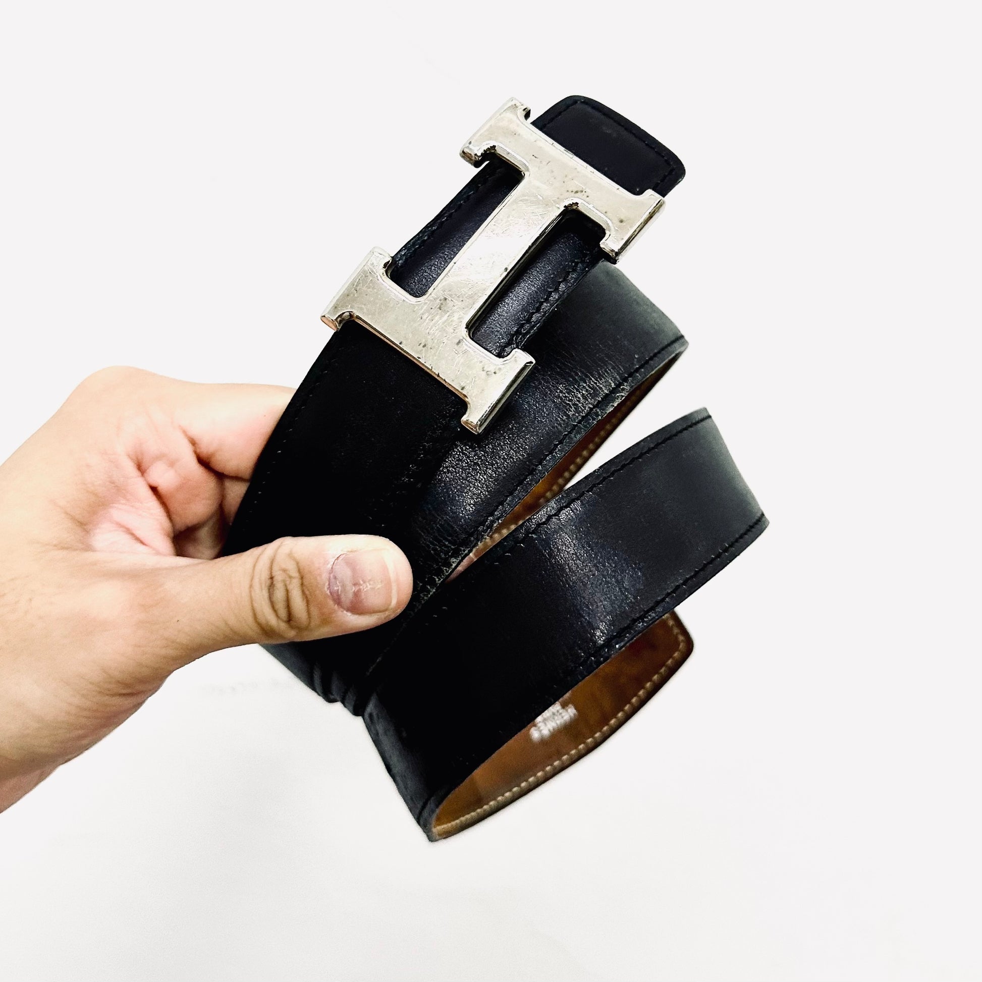 Hermes Black / Brown Constance Monogram Logo H Reversible 32MM Smooth Leather Iconic Belt
