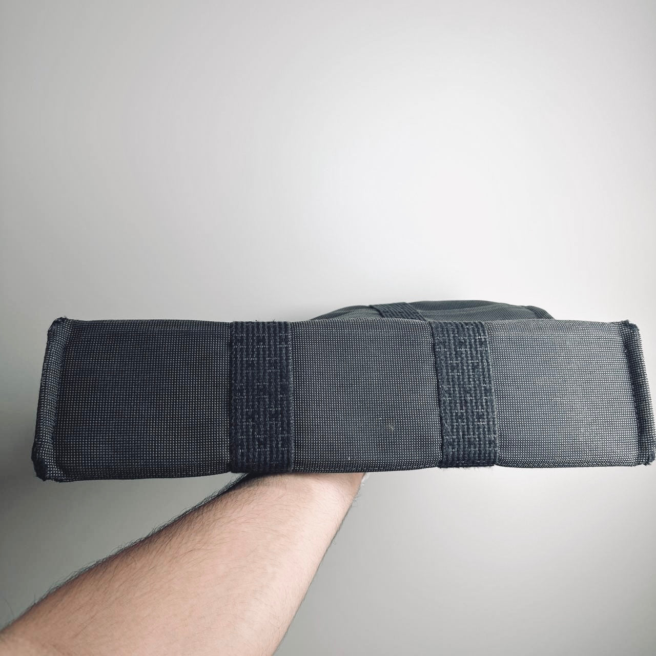 Preloved. This has front and back slip pockets, button closures, zip closure central compartment and slip pocket. This measures 42x31x10cm.