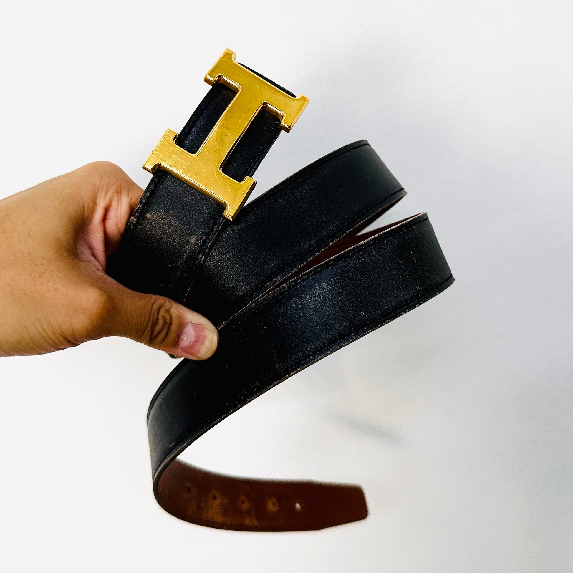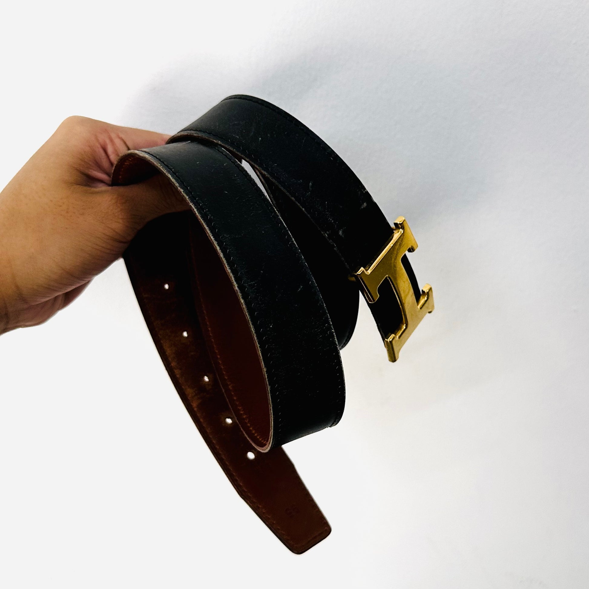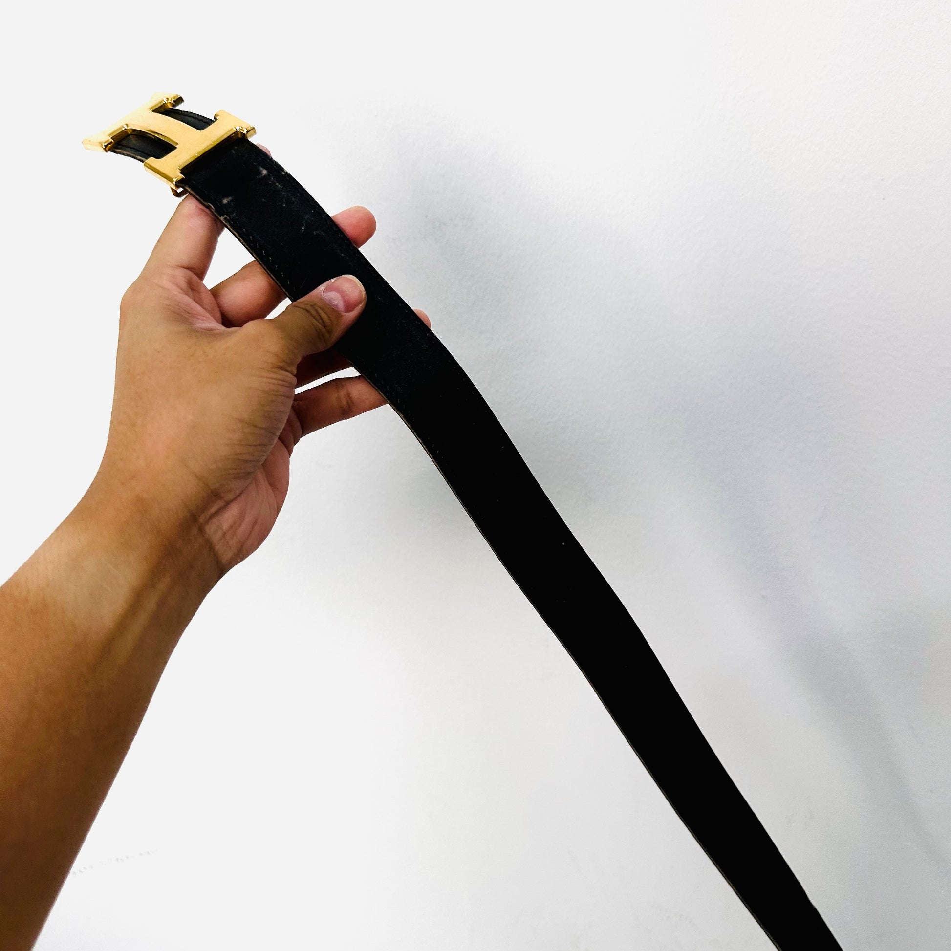 Hermes Black / Gold Constance Monogram Logo H Reversible 32MM Smooth Leather Iconic Belt