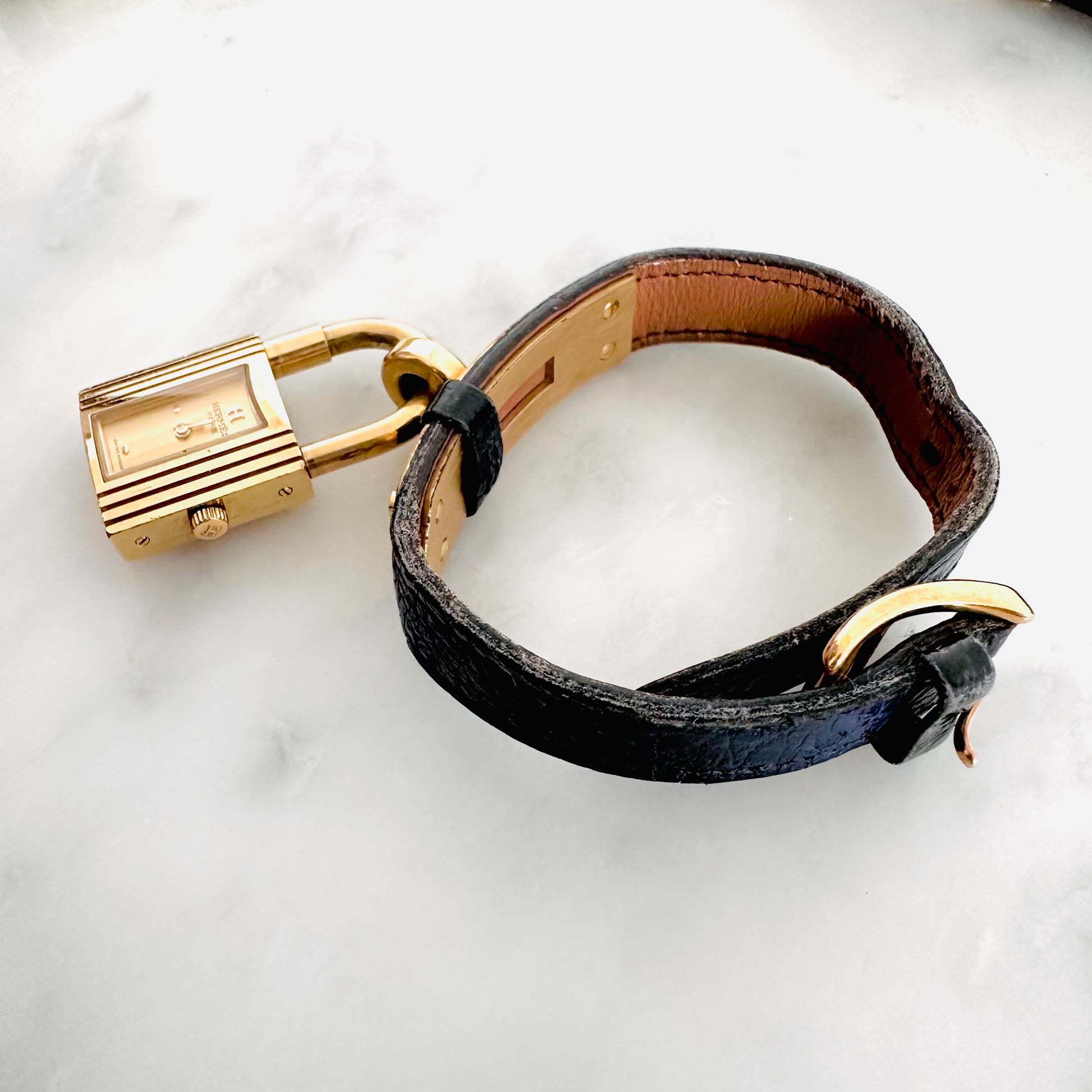 Hermes Black Gold Hardware Kelly Lock 20mm Stainless Steel Quartz Watch