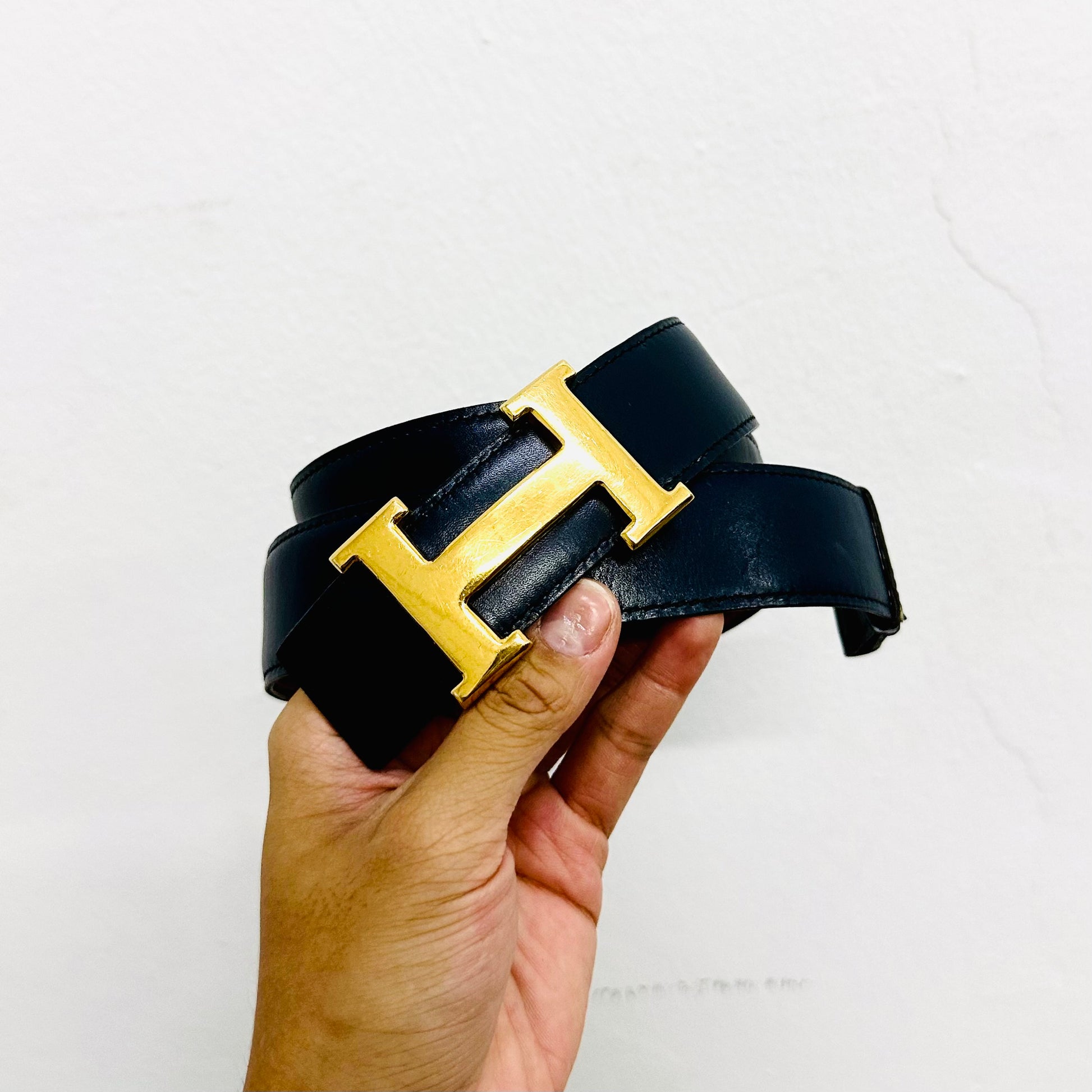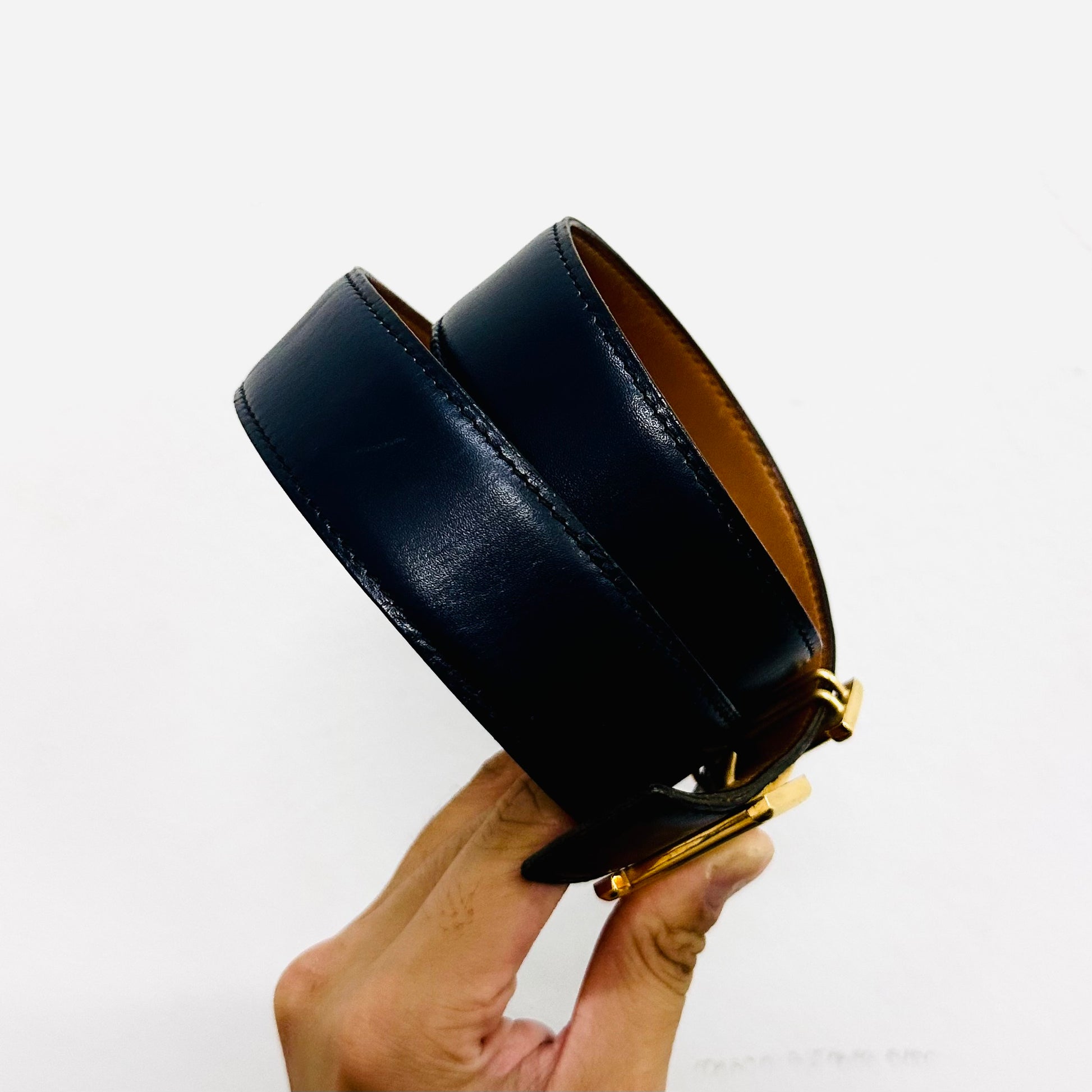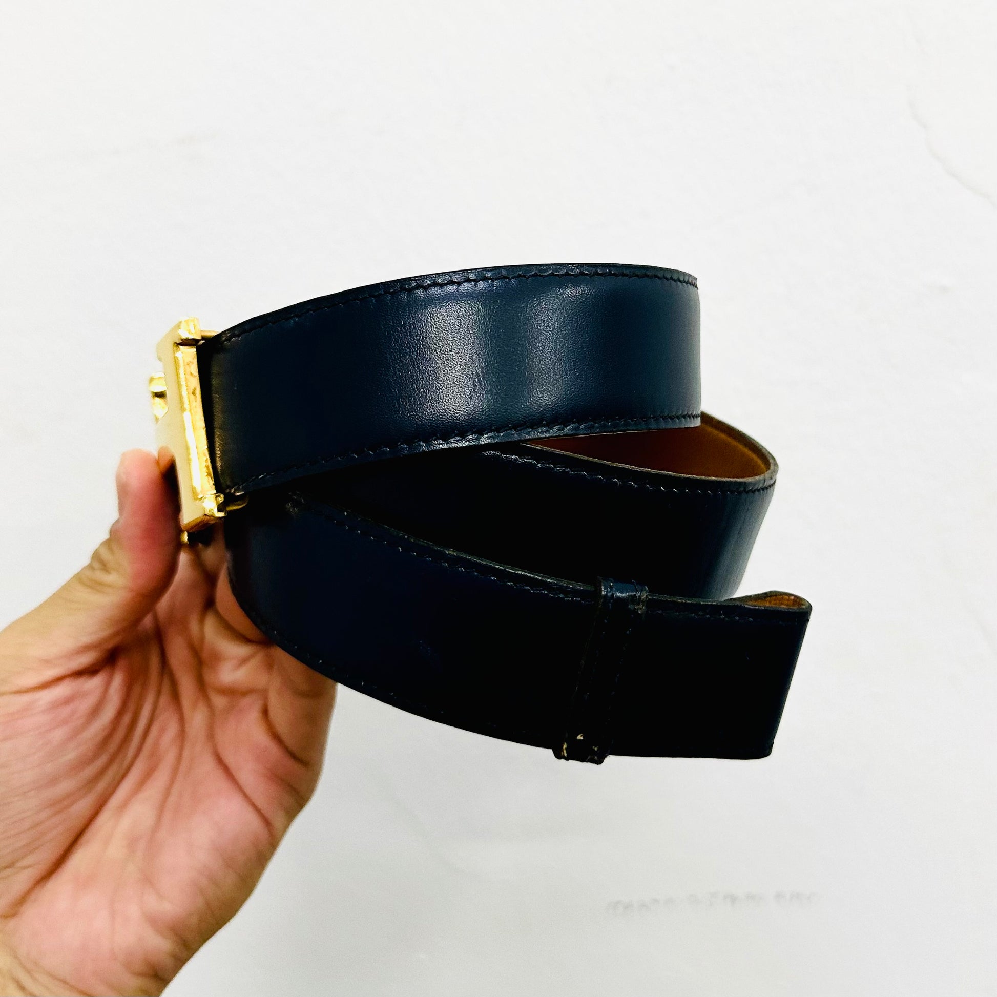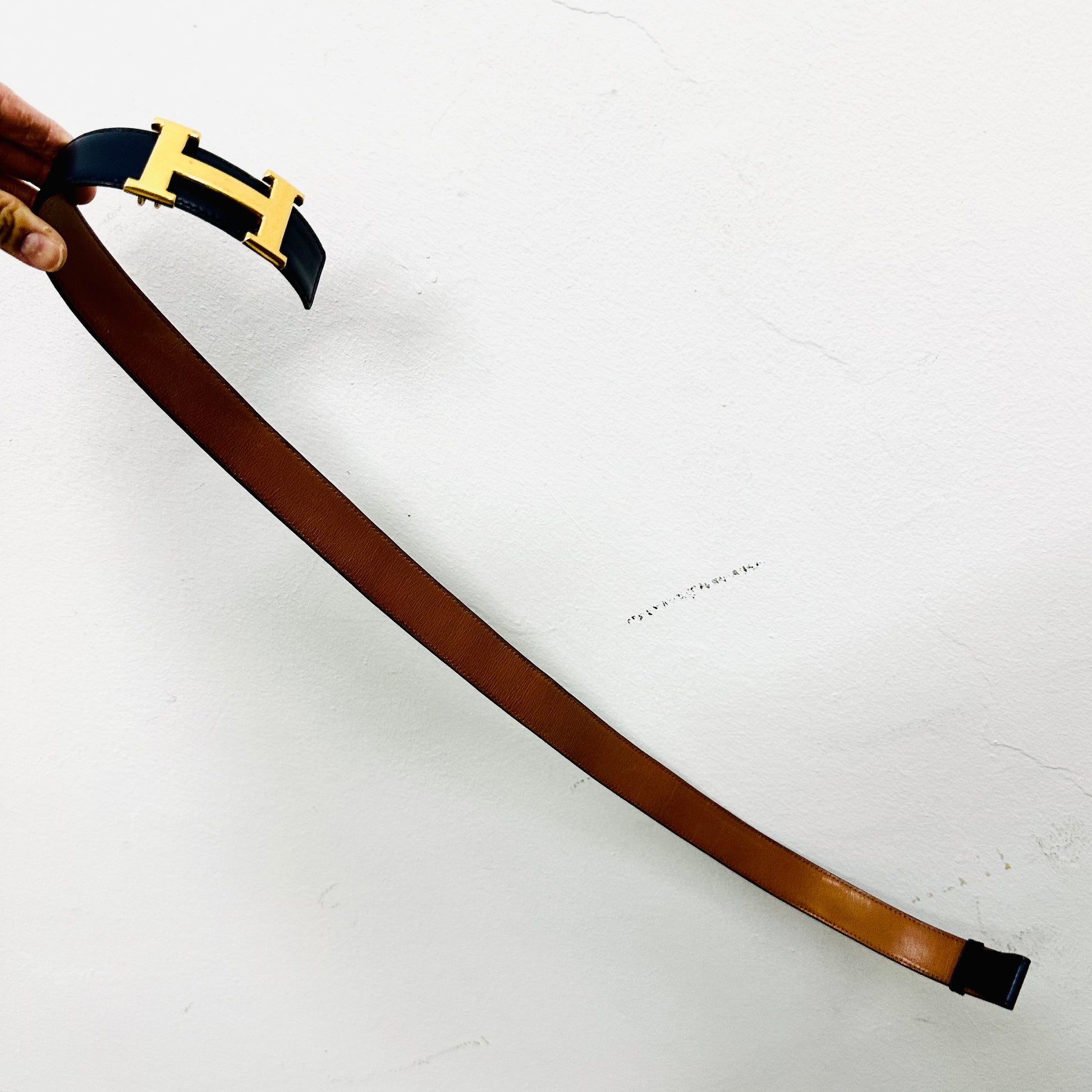 Hermes Constance Monogram Logo H Navy Blue / Gold GHW Reversible 32MM Smooth Box Calfskin Iconic Belt