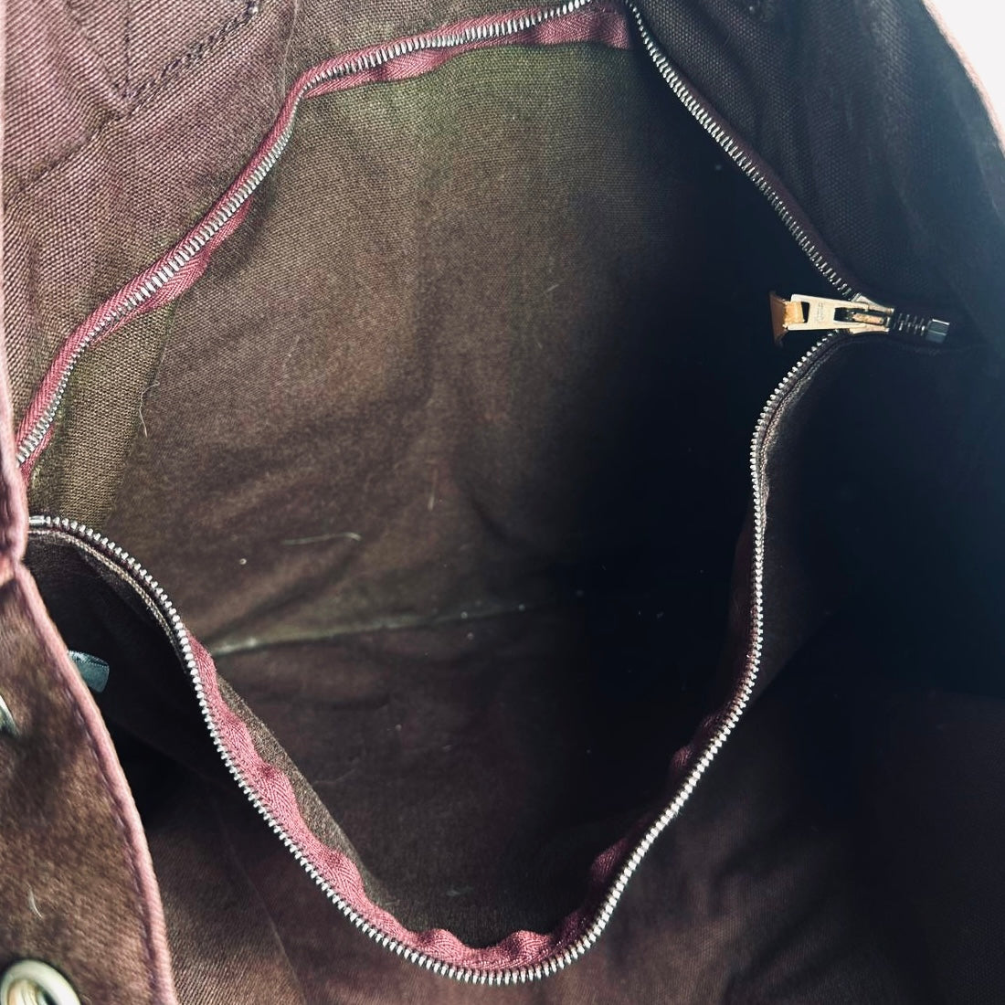 Preloved 9.4/10. This has front and back slip pockets, button closures, central compartment and zip pocket. This measures 42x31x10cm.
