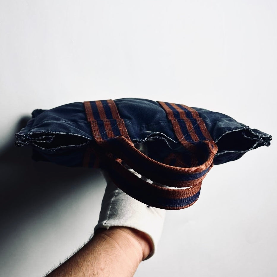 Hermes Herline Navy Blue / Maroon Fourre Fool Toile PM Structured Shopper Tote Bag