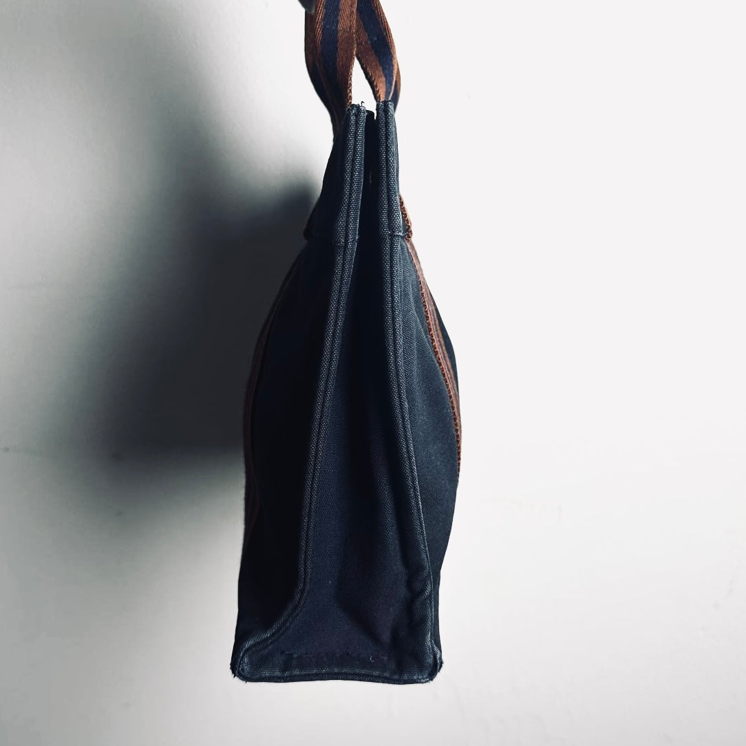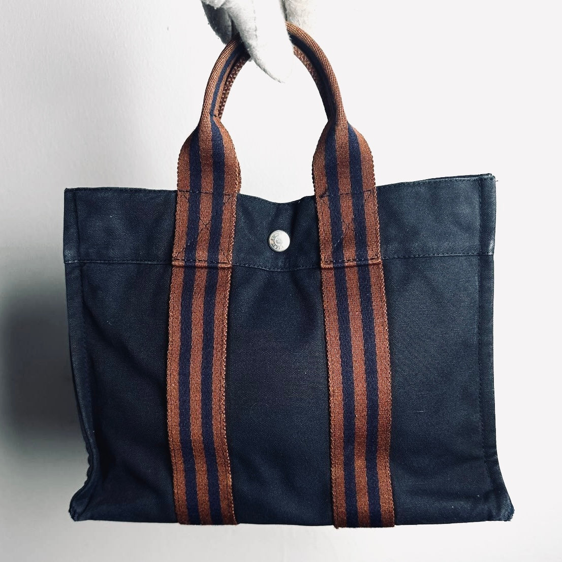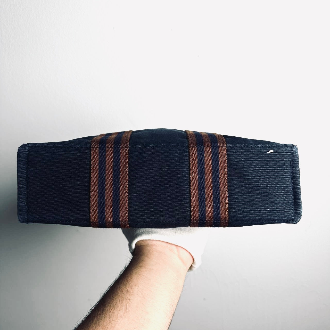 Hermes Herline PM Navy Blue / Maroon Fourre Fool Toile Structured Shopper Tote Bag