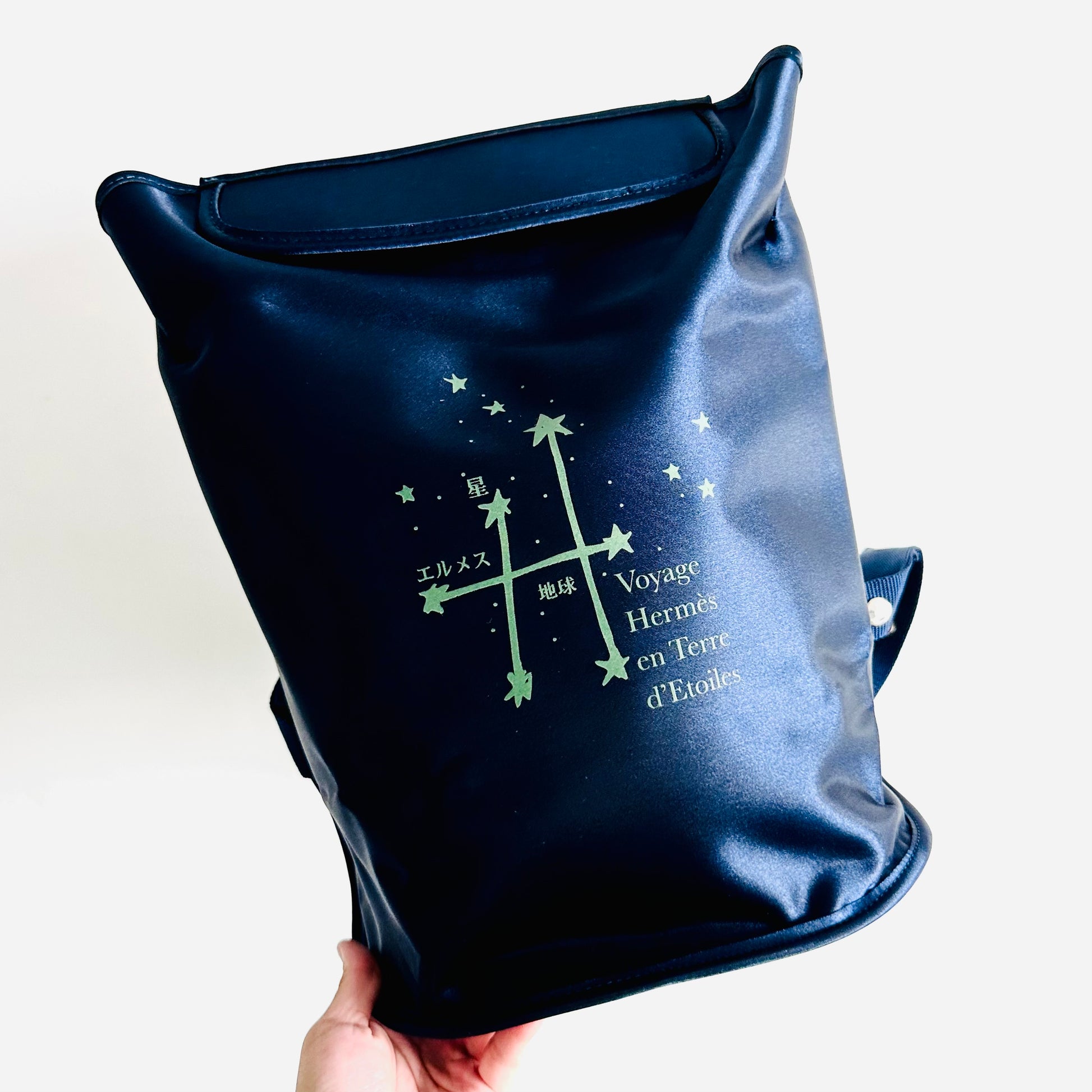 Hermes Navy Blue Sherpa Voyage Limited Edition Monogram Logo Drawstring Backpack Bag