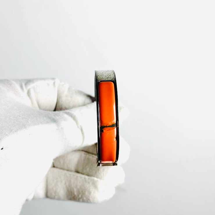 Hermes Orange Palladium Clic Clac PM H Logo Bracelet Bangle