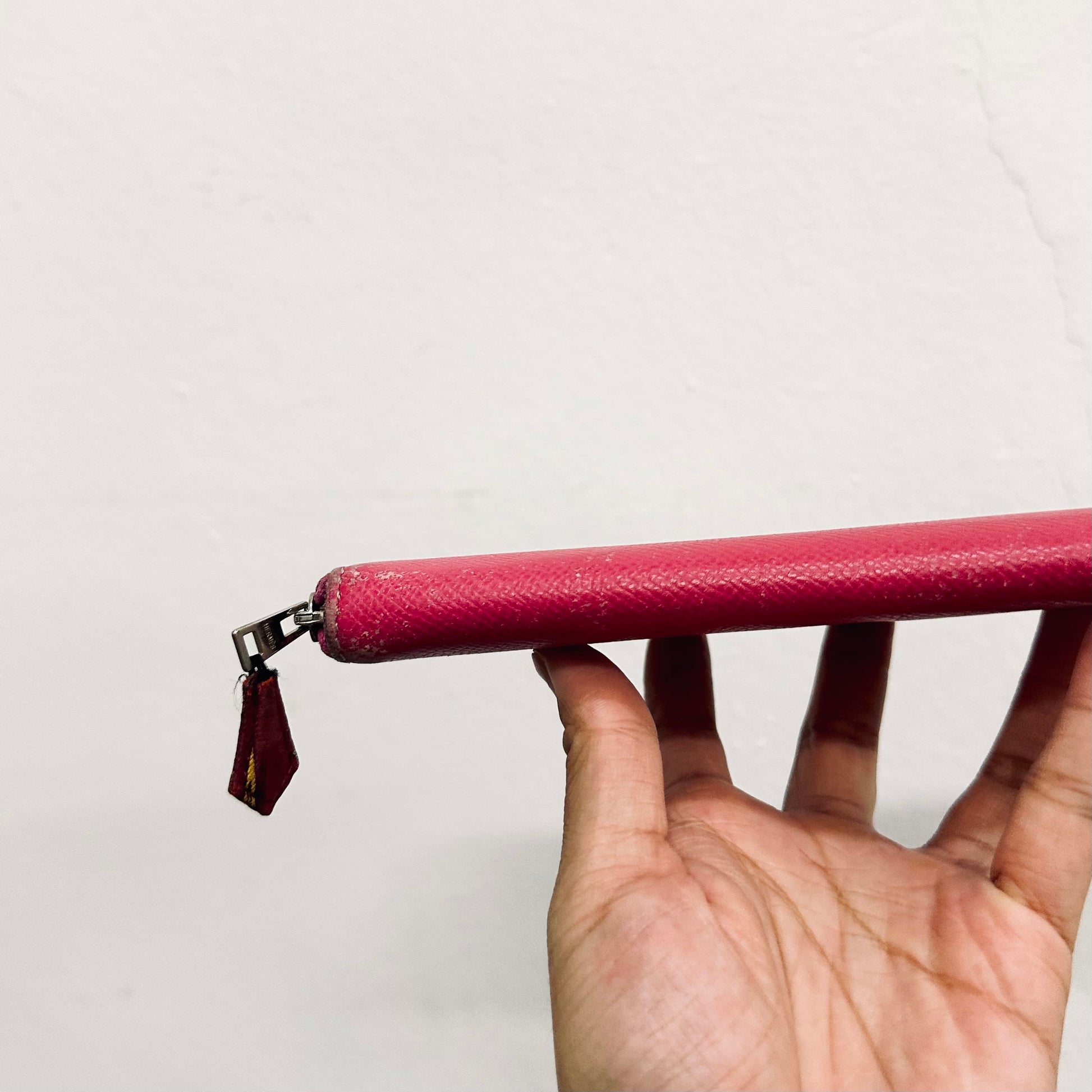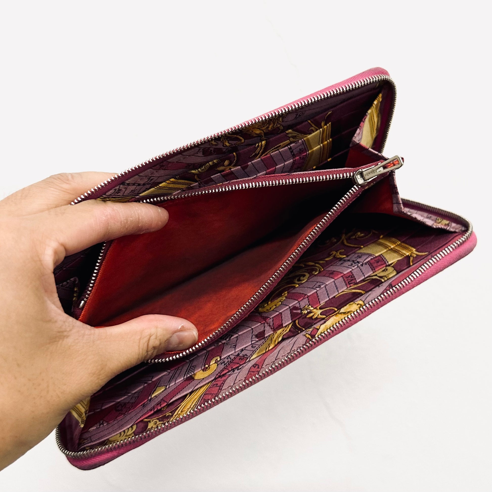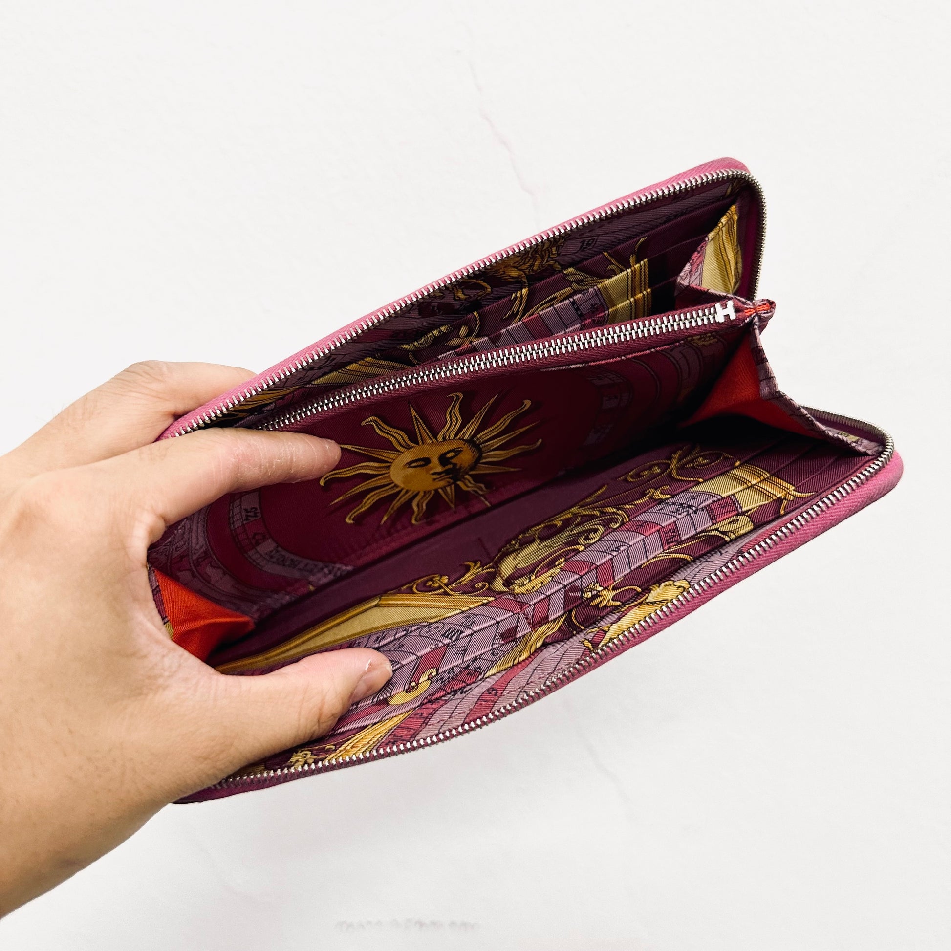 Hermes Rose Pink Azap Silk In Classic Classique Long Zippy Zip Around Epsom Leather Wallet