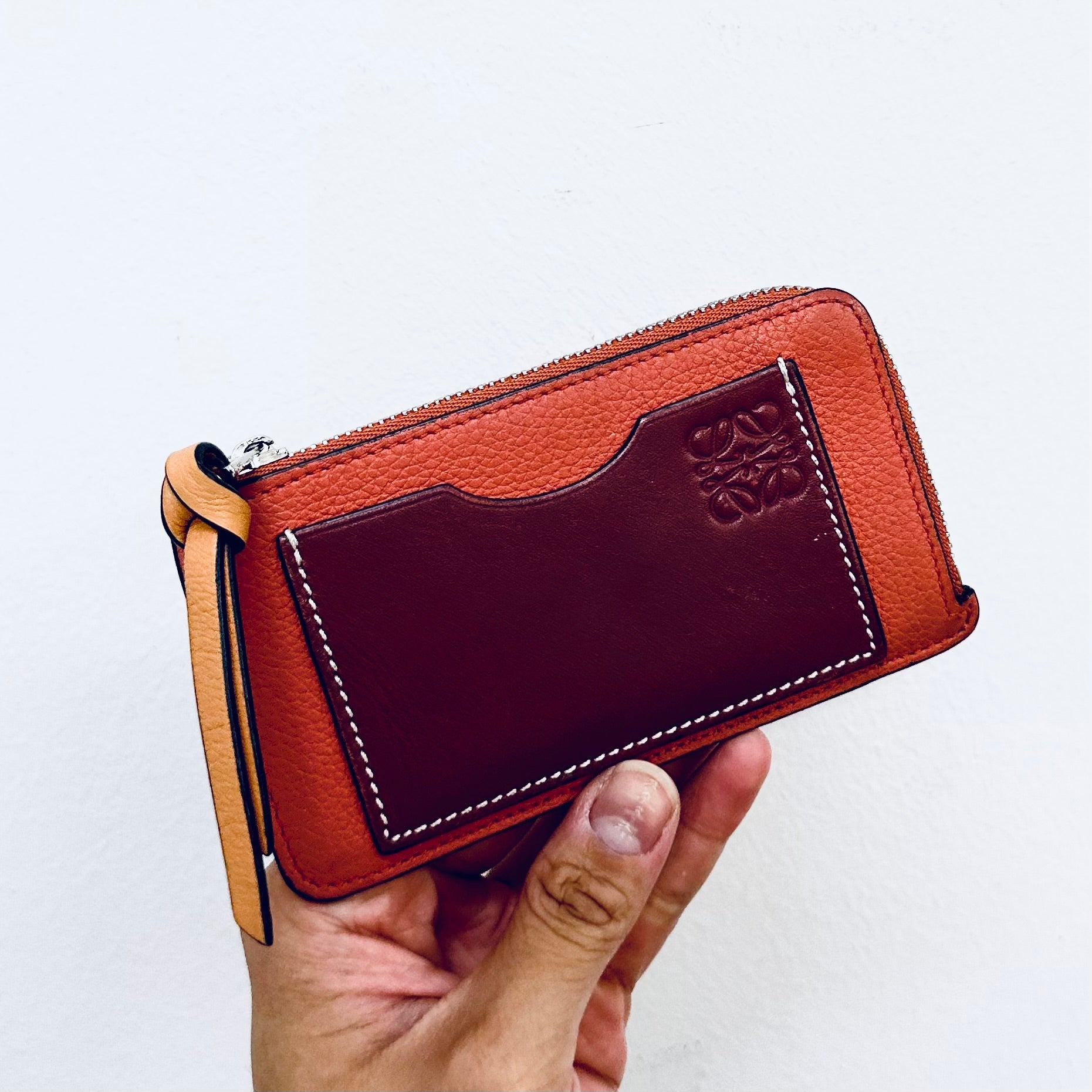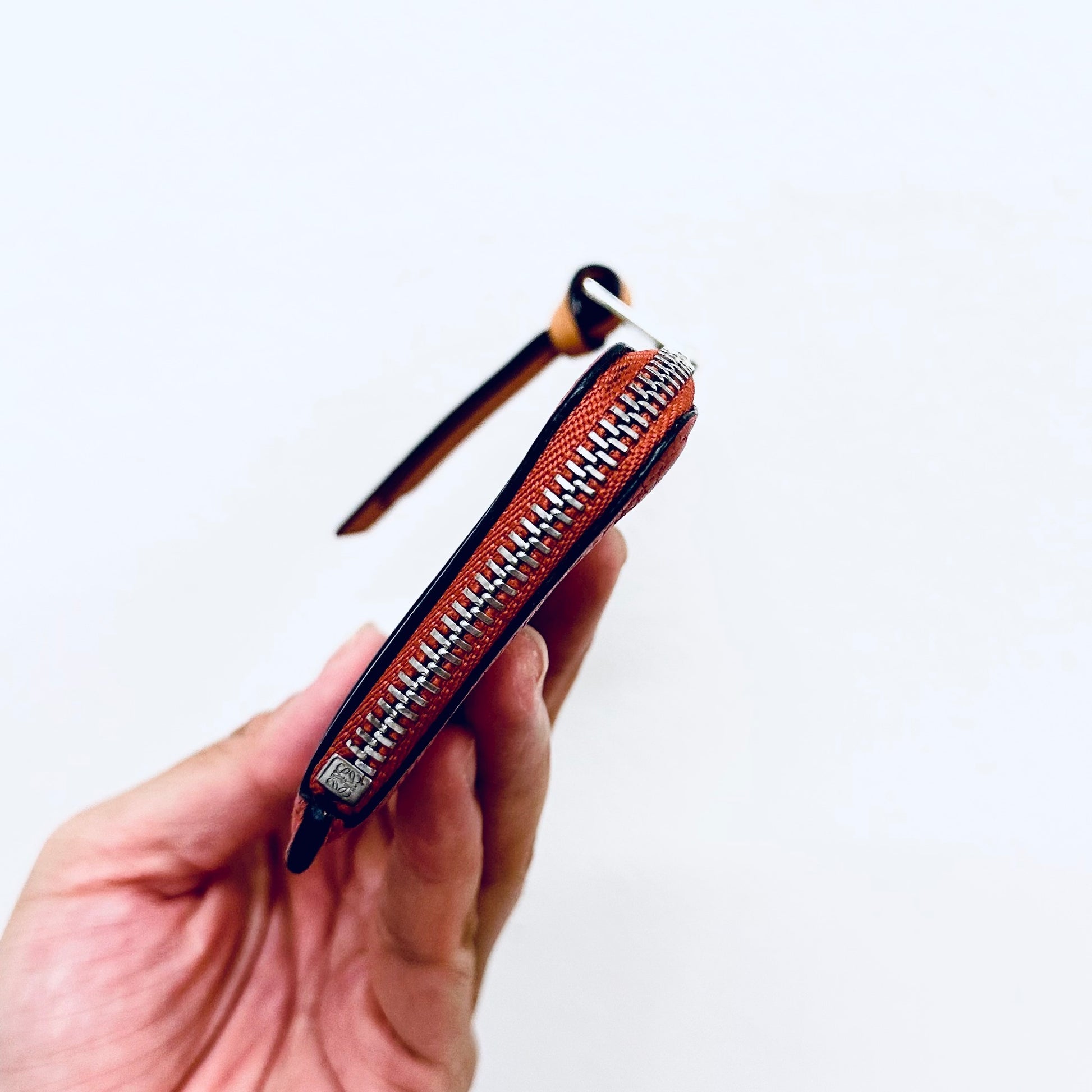 Loewe Burnt Orange / Brown / Maroon Soft Grained Calfskin Anagram Logo Monogram Zip Cardholder Card Holder Case Flat Compact Wallet