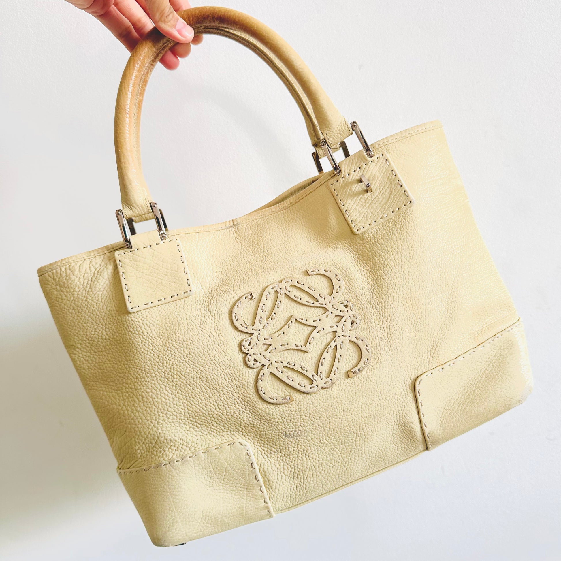 Loewe Cream White Giant Anagram Logo Monogram Nappa Leather Shopper Shoulder Tote Bag