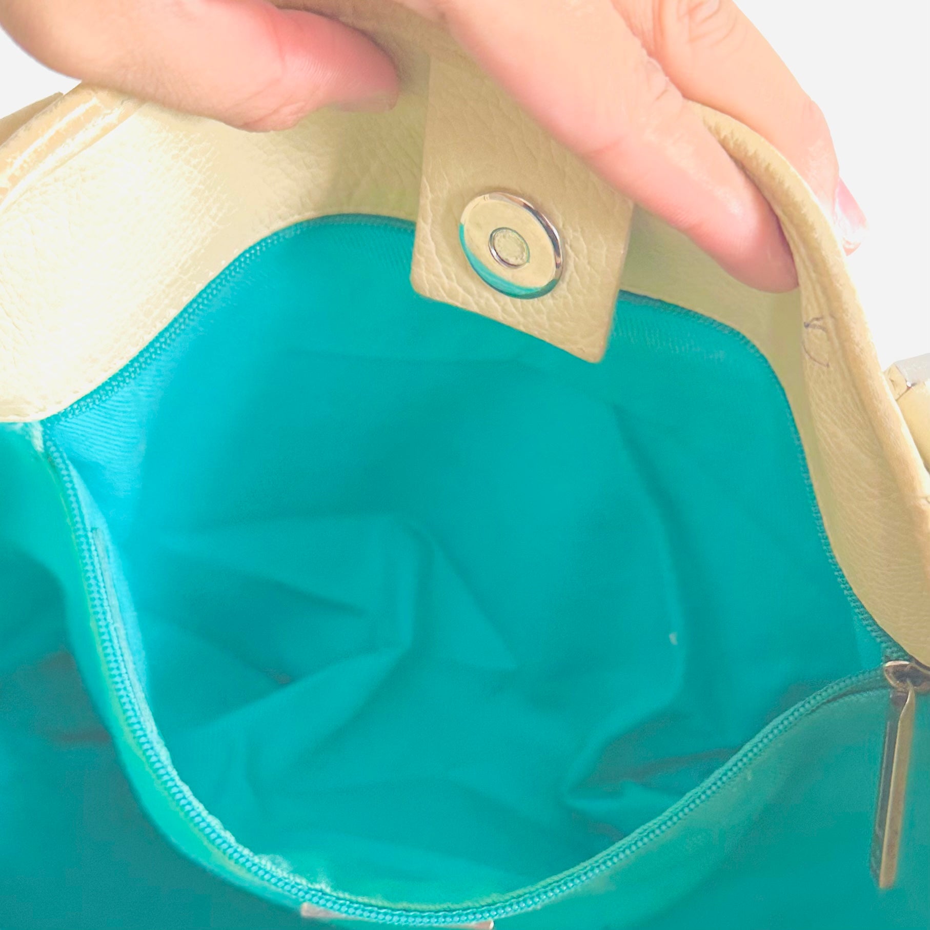 Preloved 9.3/10. This has a magnetic button closure, central compartment, slip pocket and zip pocket. This measures 34x22x13cm.
