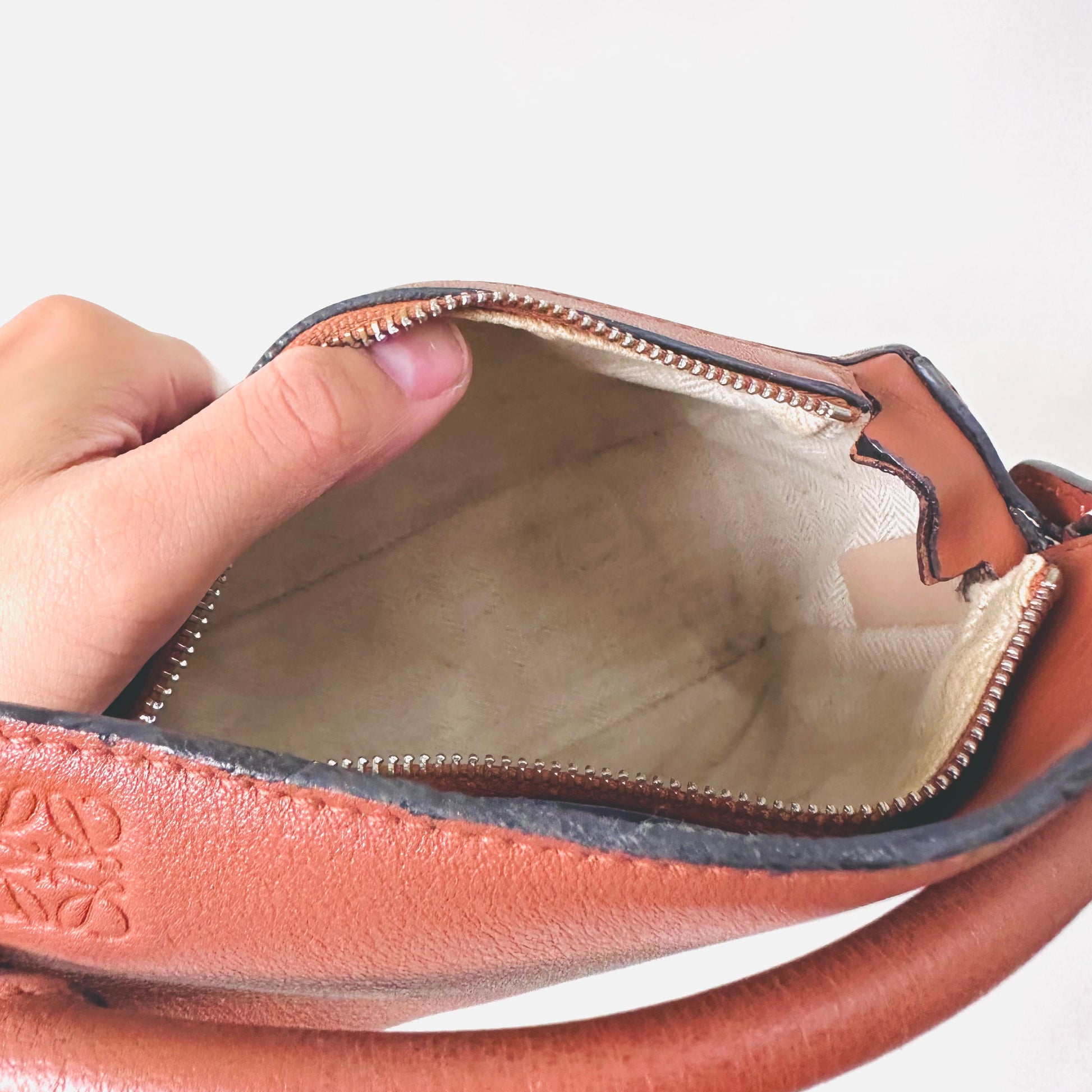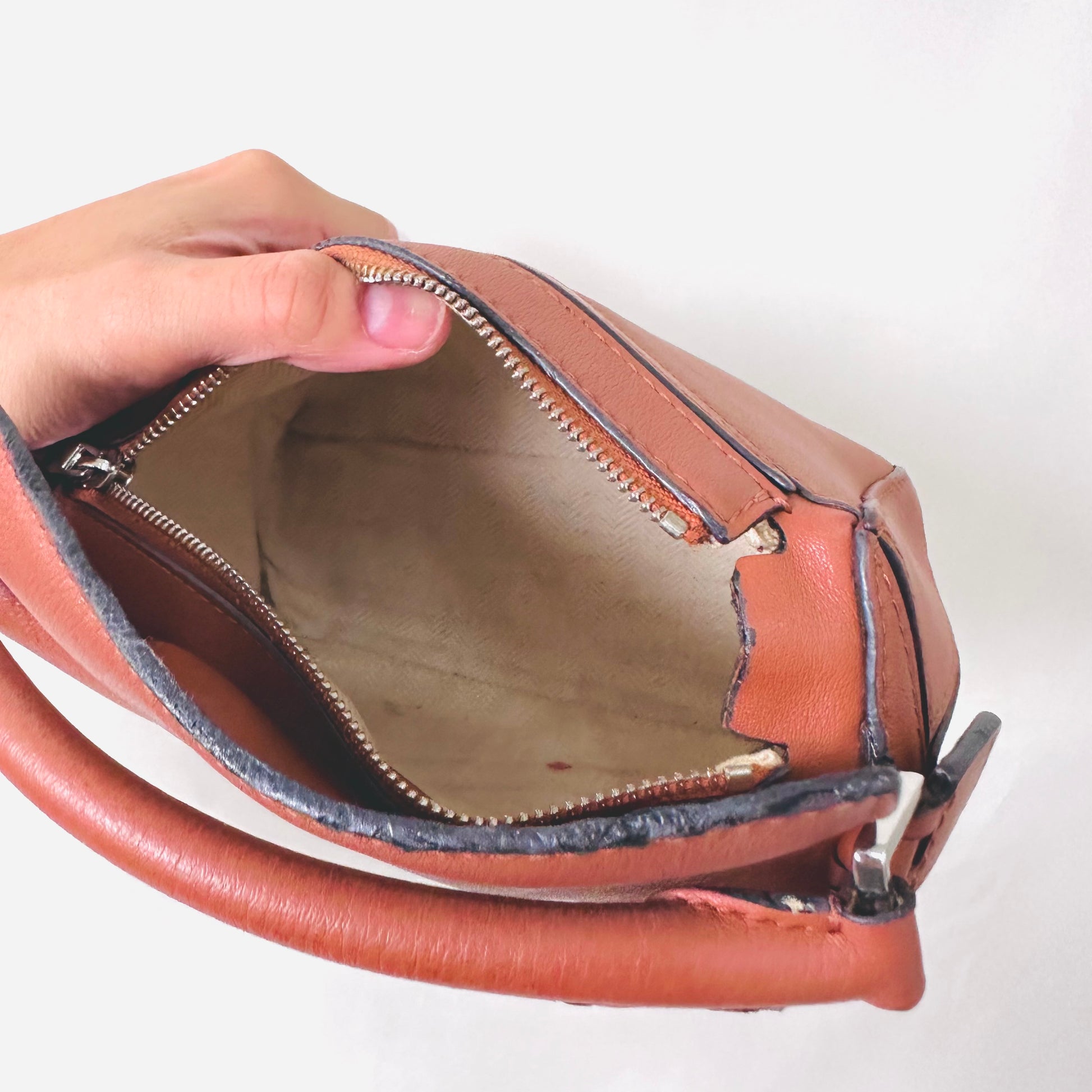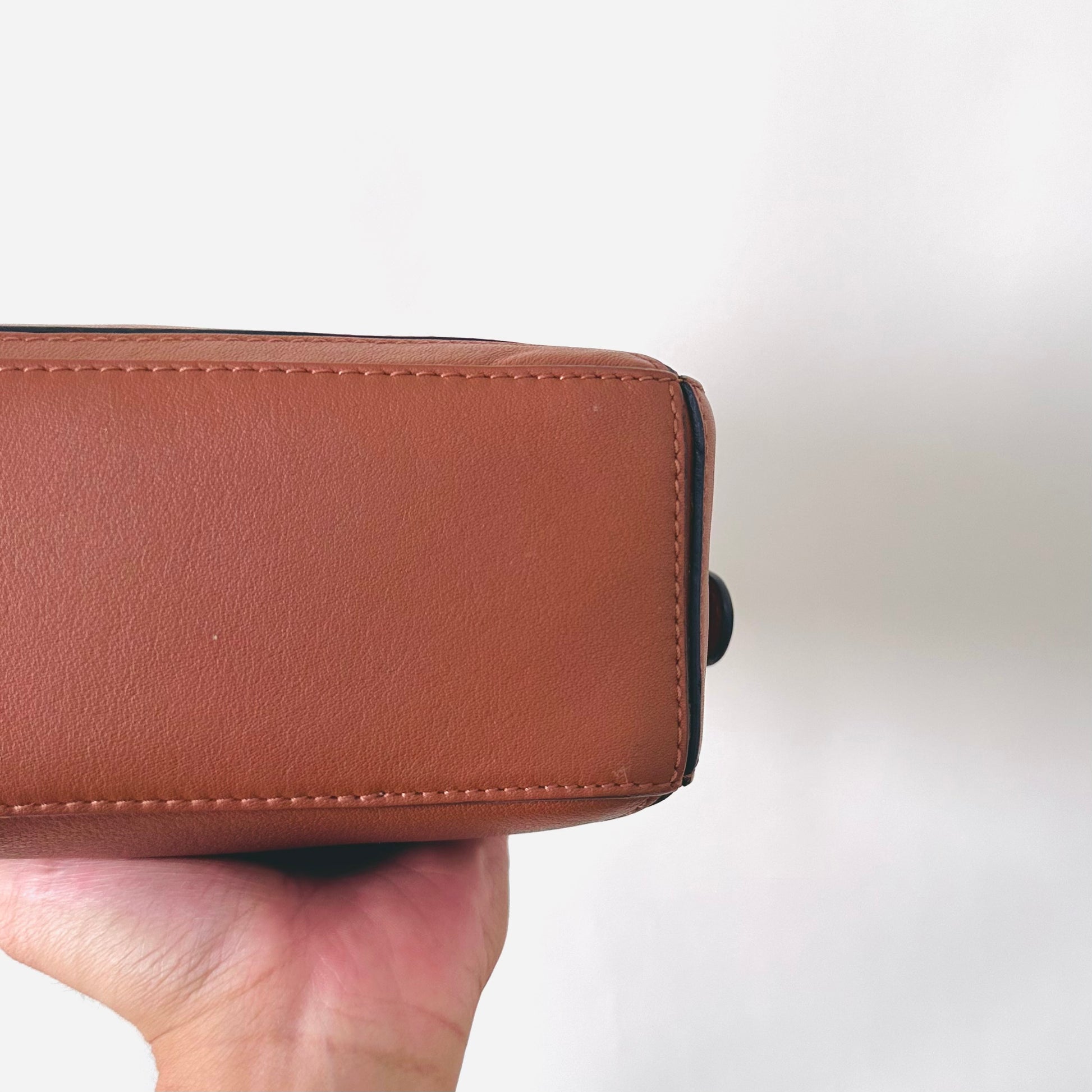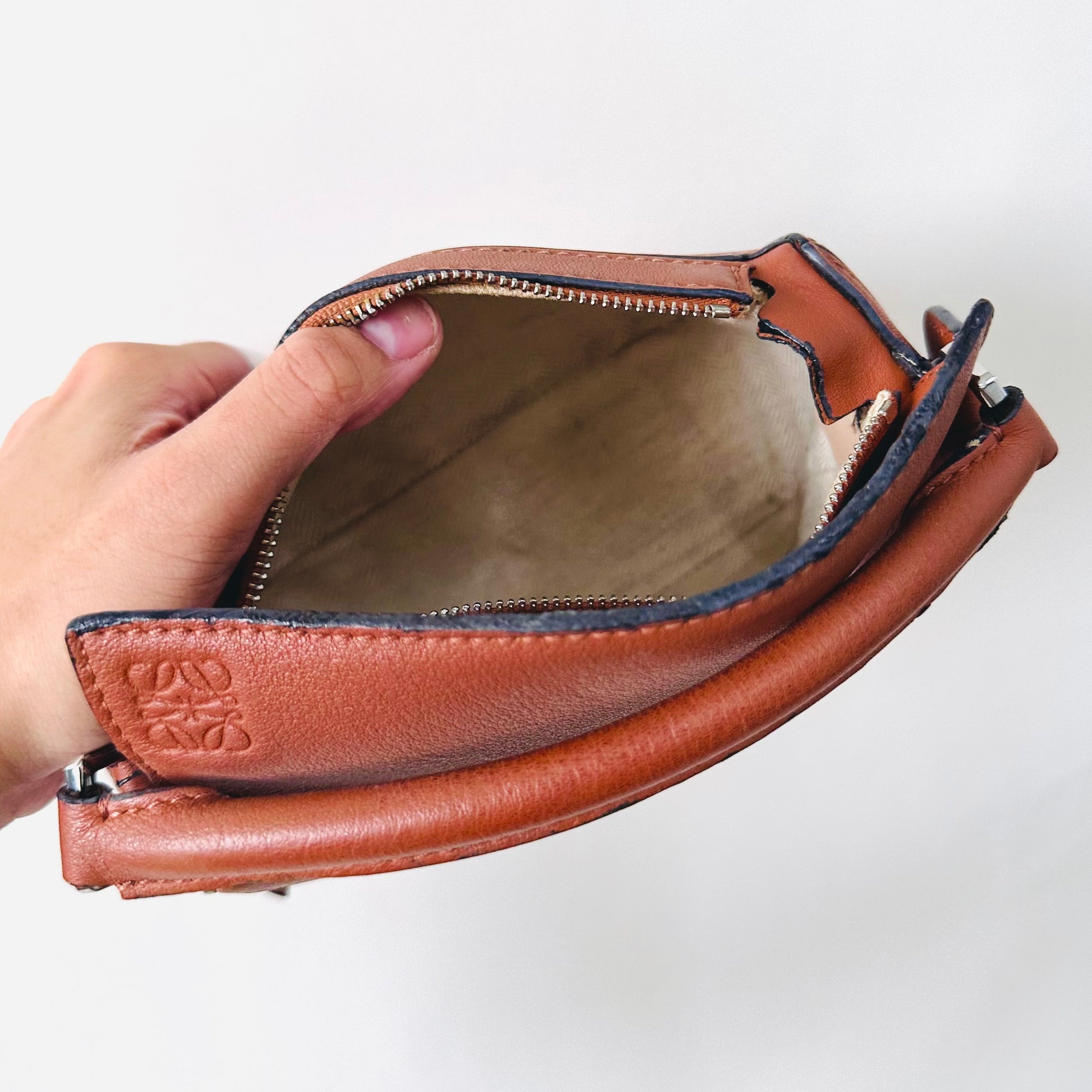 Loewe Tan Brown Mini Puzzle Classic Calfskin Leather Anagram Logo Monogram 2-Way Top Handle Shoulder Sling Bag
