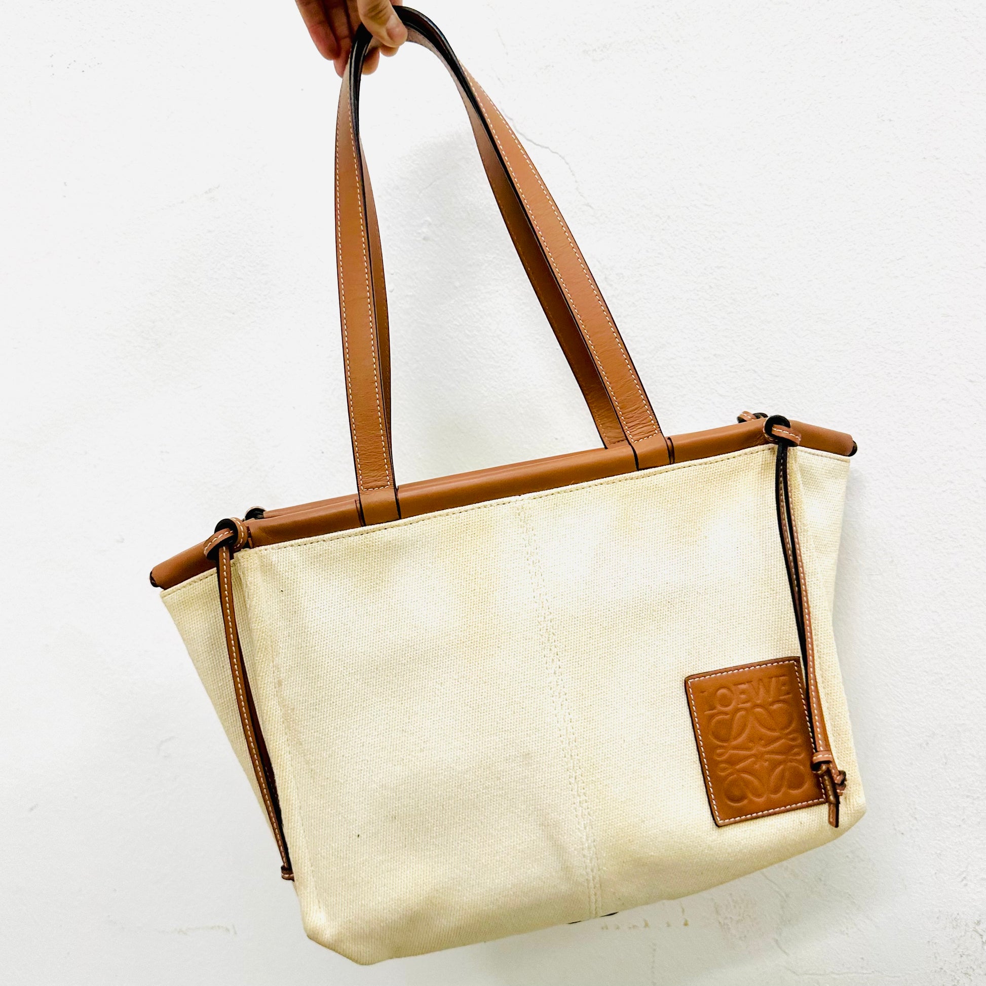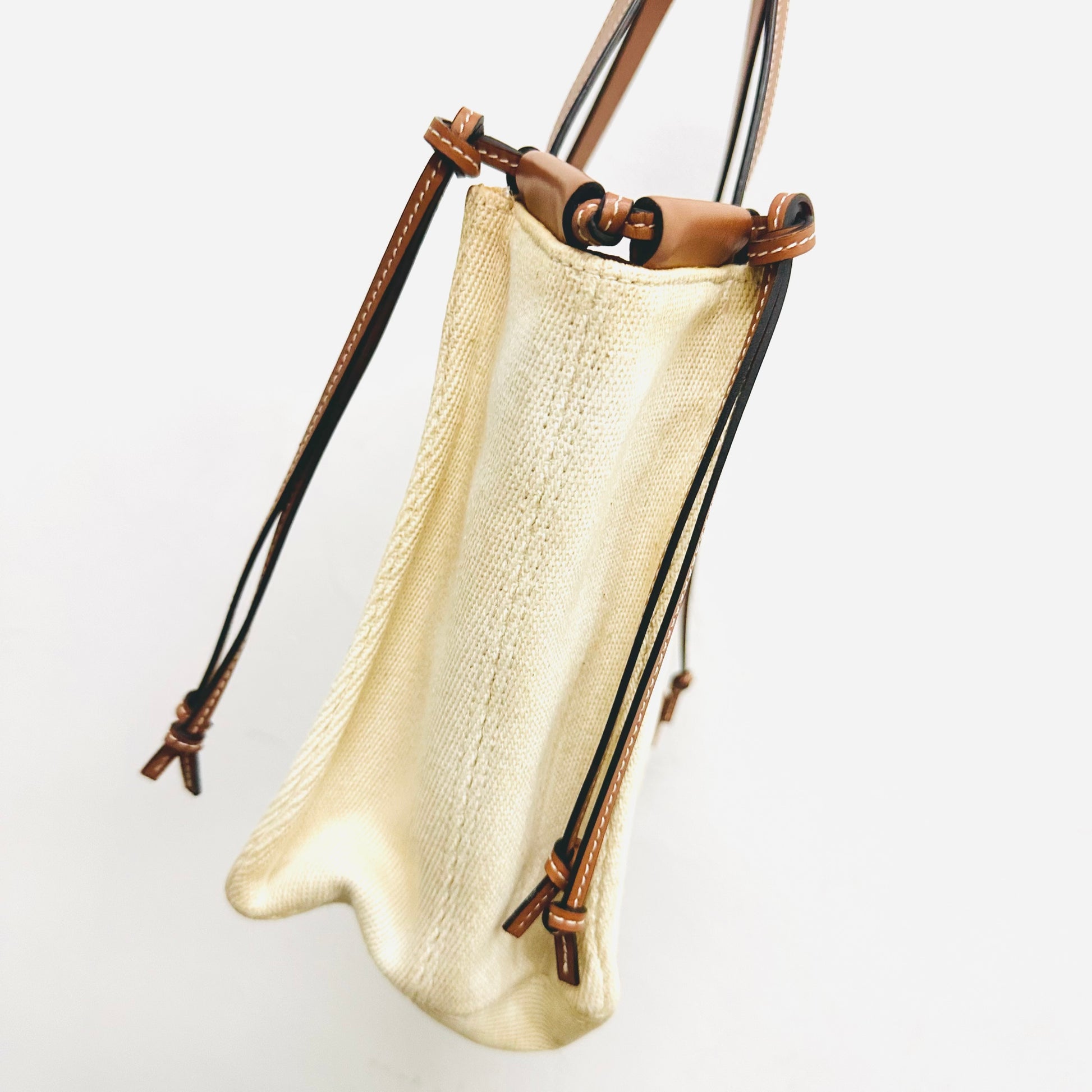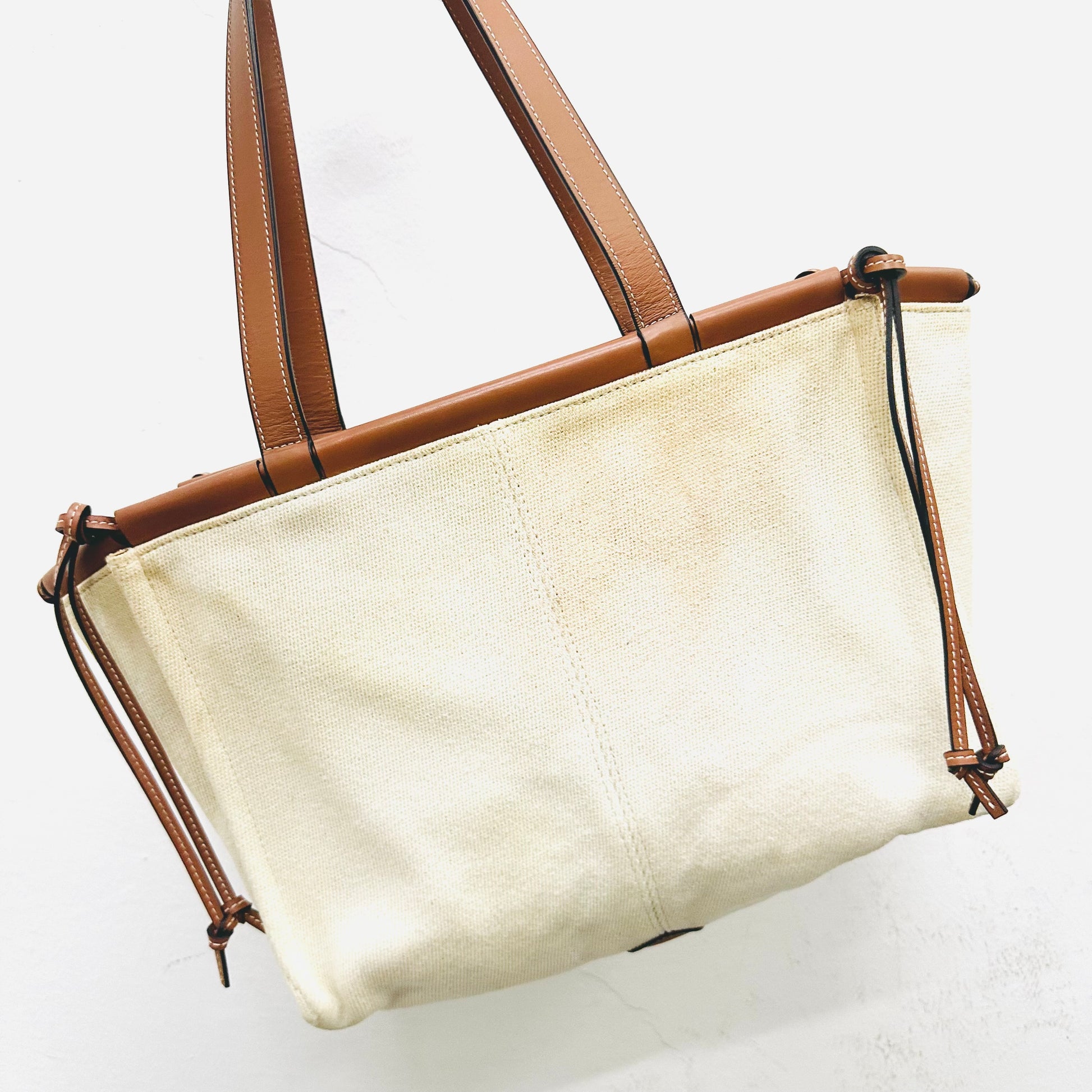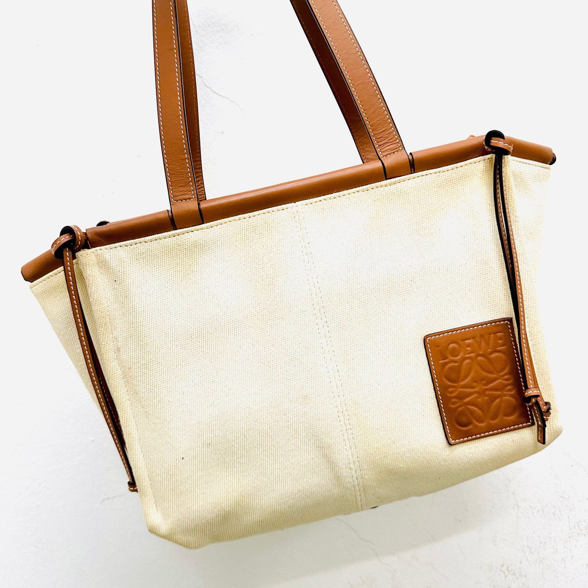 Loewe Tan / White Cushion Giant Monogram Logo Toile Canvas / Leather Shopper Shoulder Tote Bag