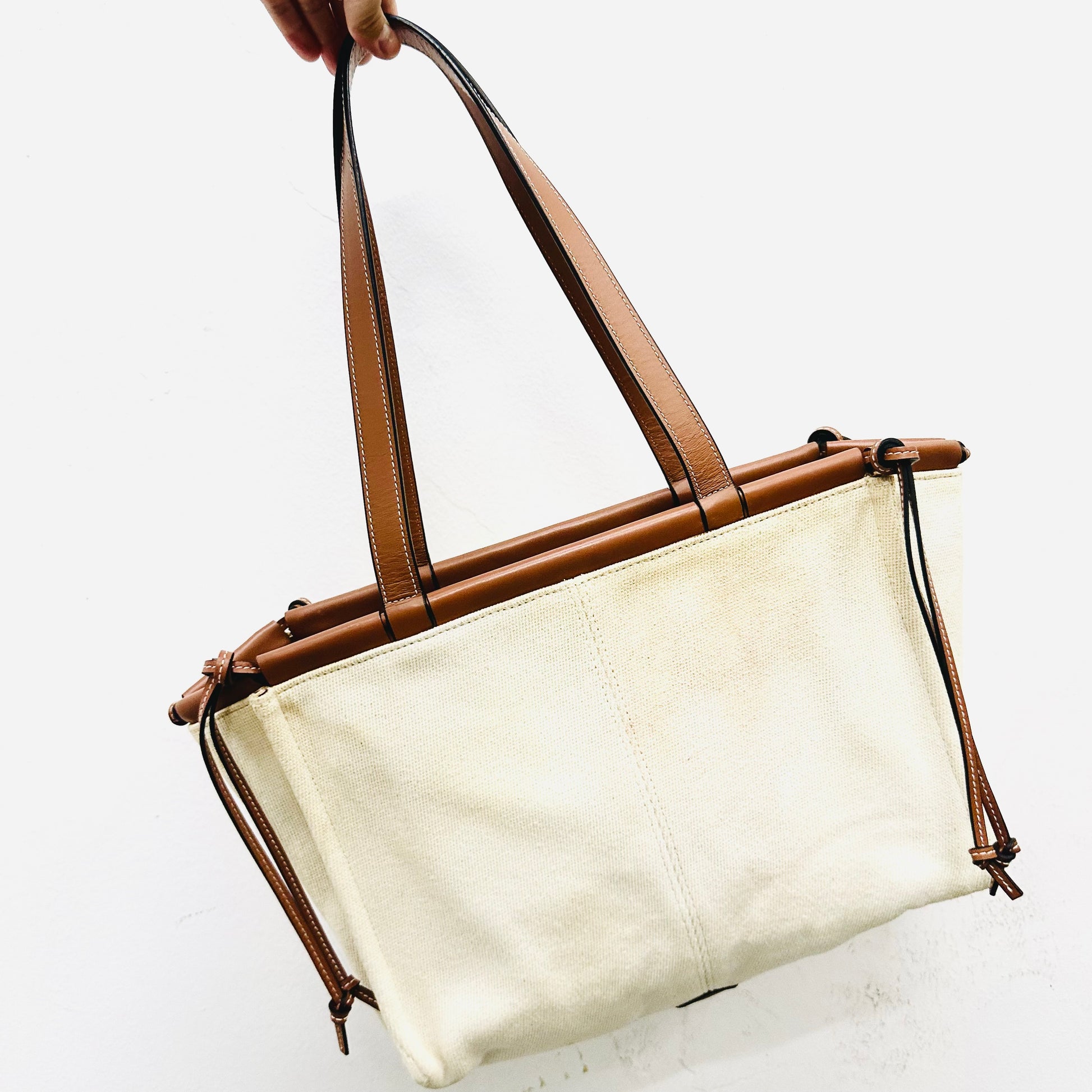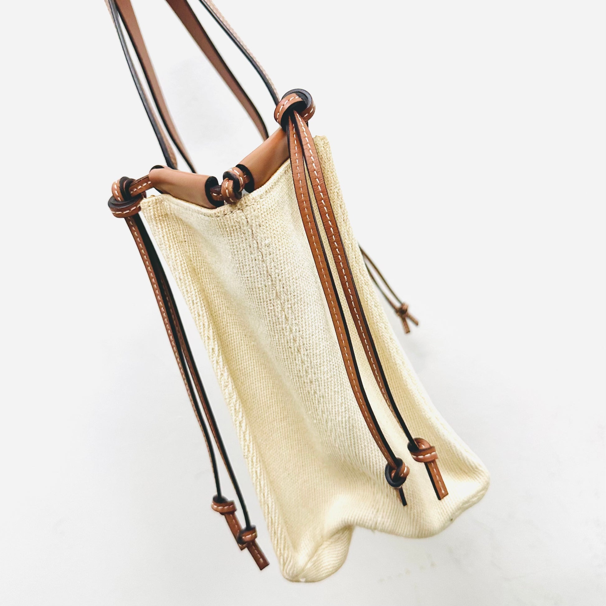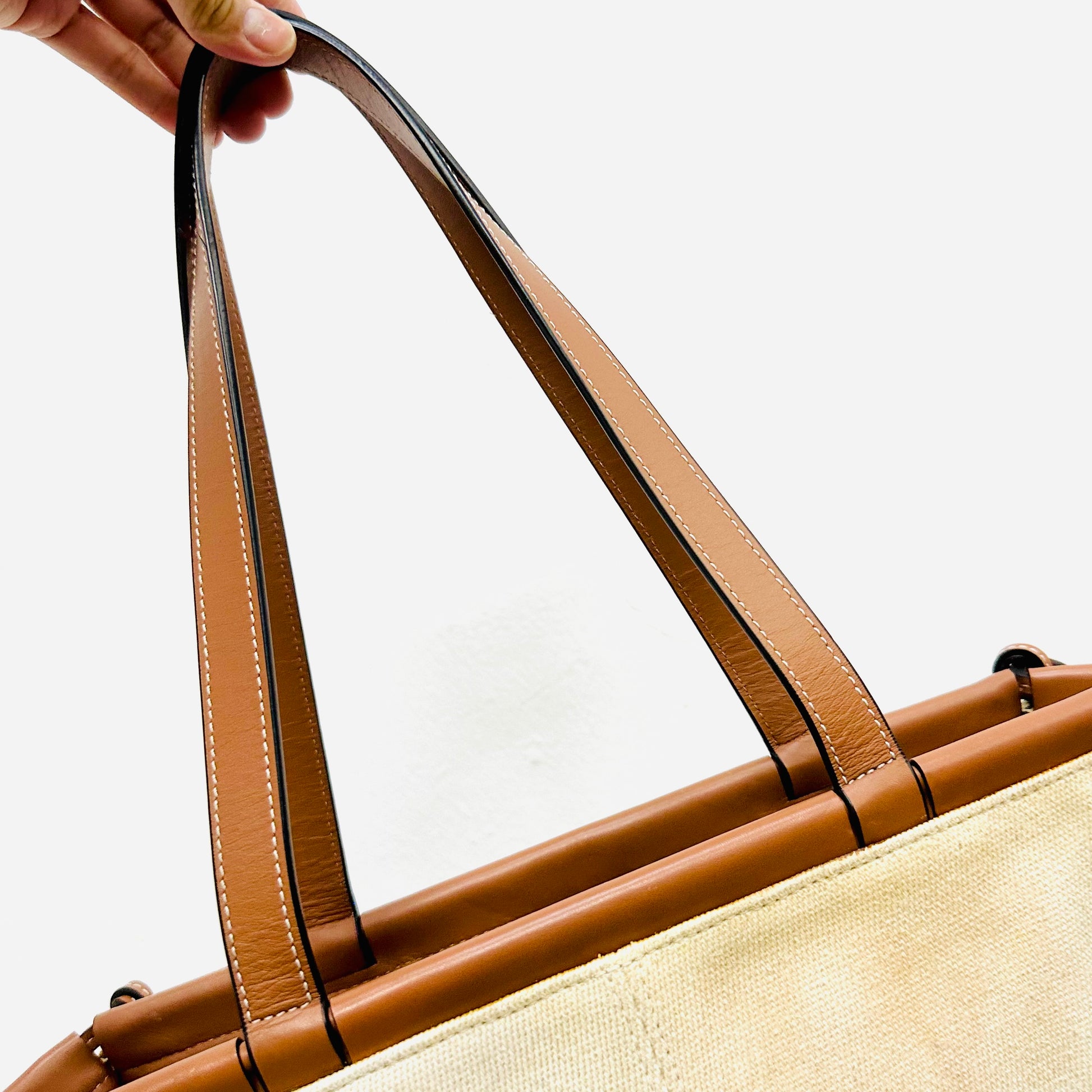 Loewe Tan / White Cushion Giant Monogram Logo Toile Canvas / Leather Shopper Shoulder Tote Bag