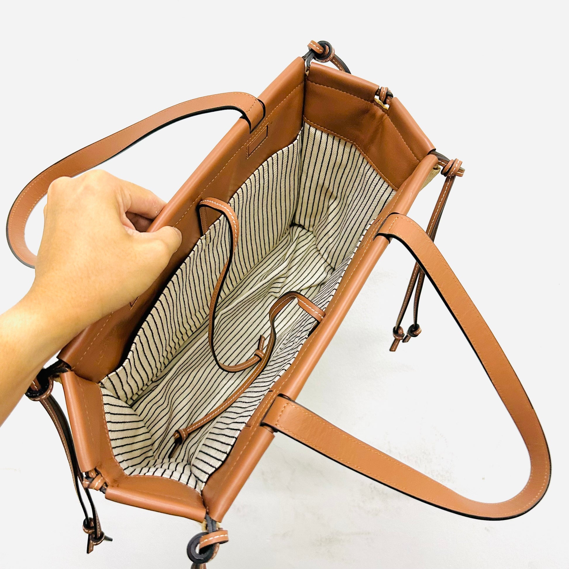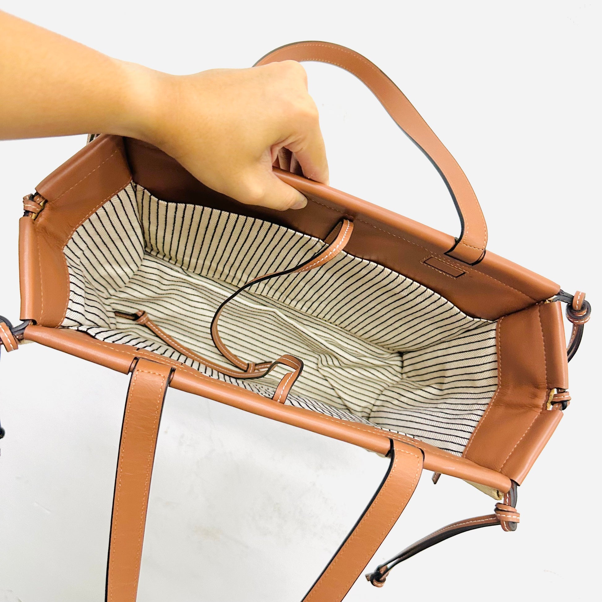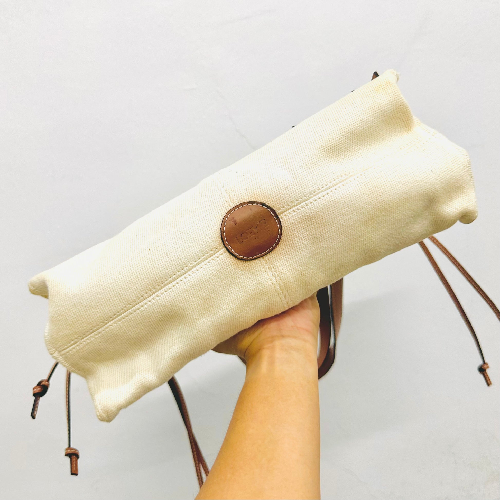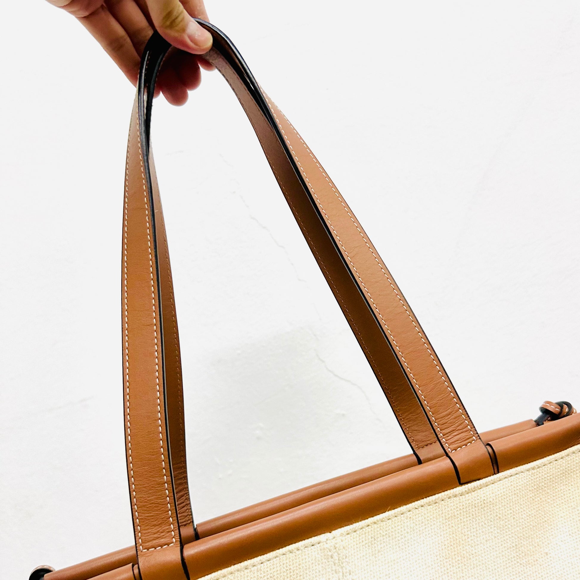 Loewe Tan / White Cushion Giant Monogram Logo Toile Canvas / Leather Shopper Shoulder Tote Bag