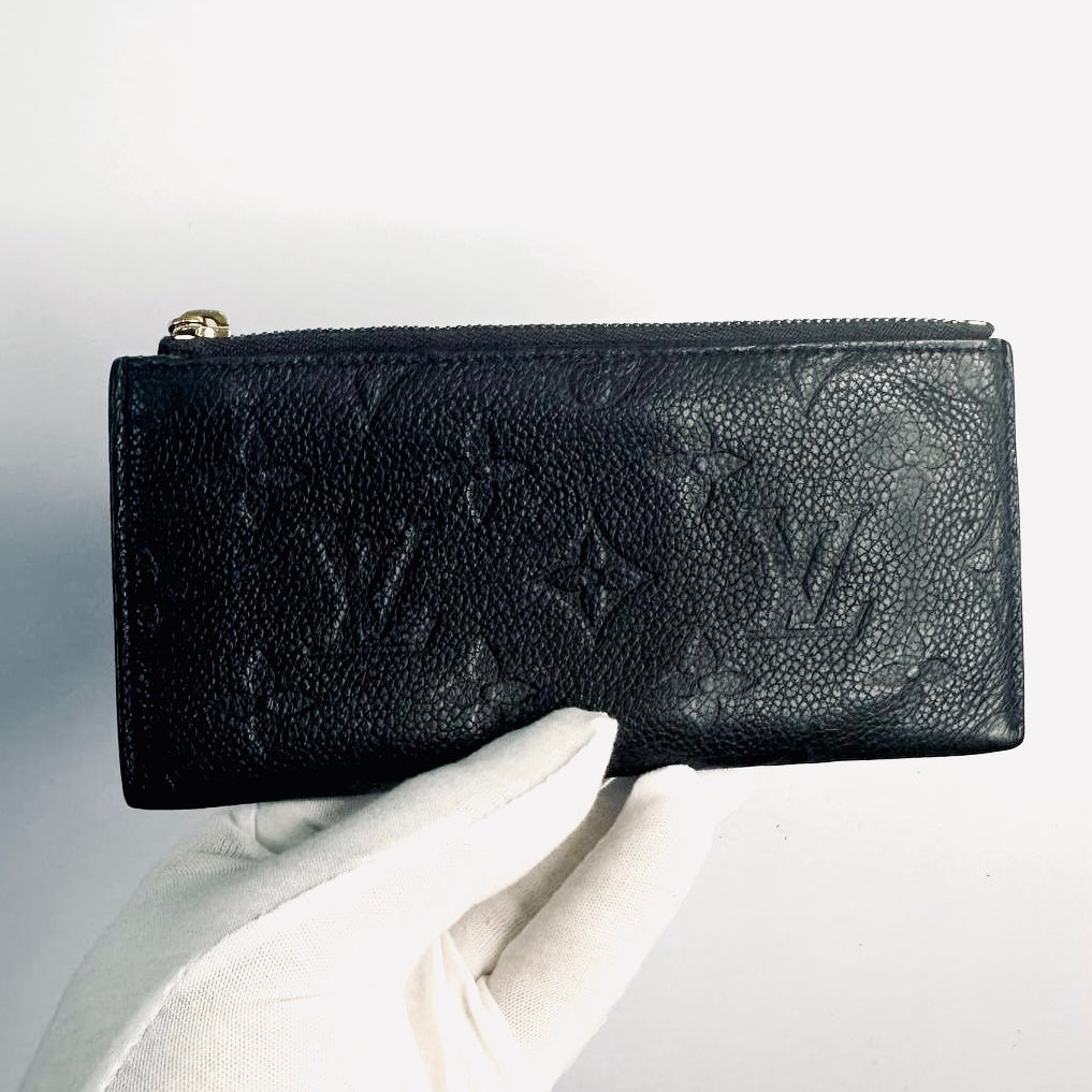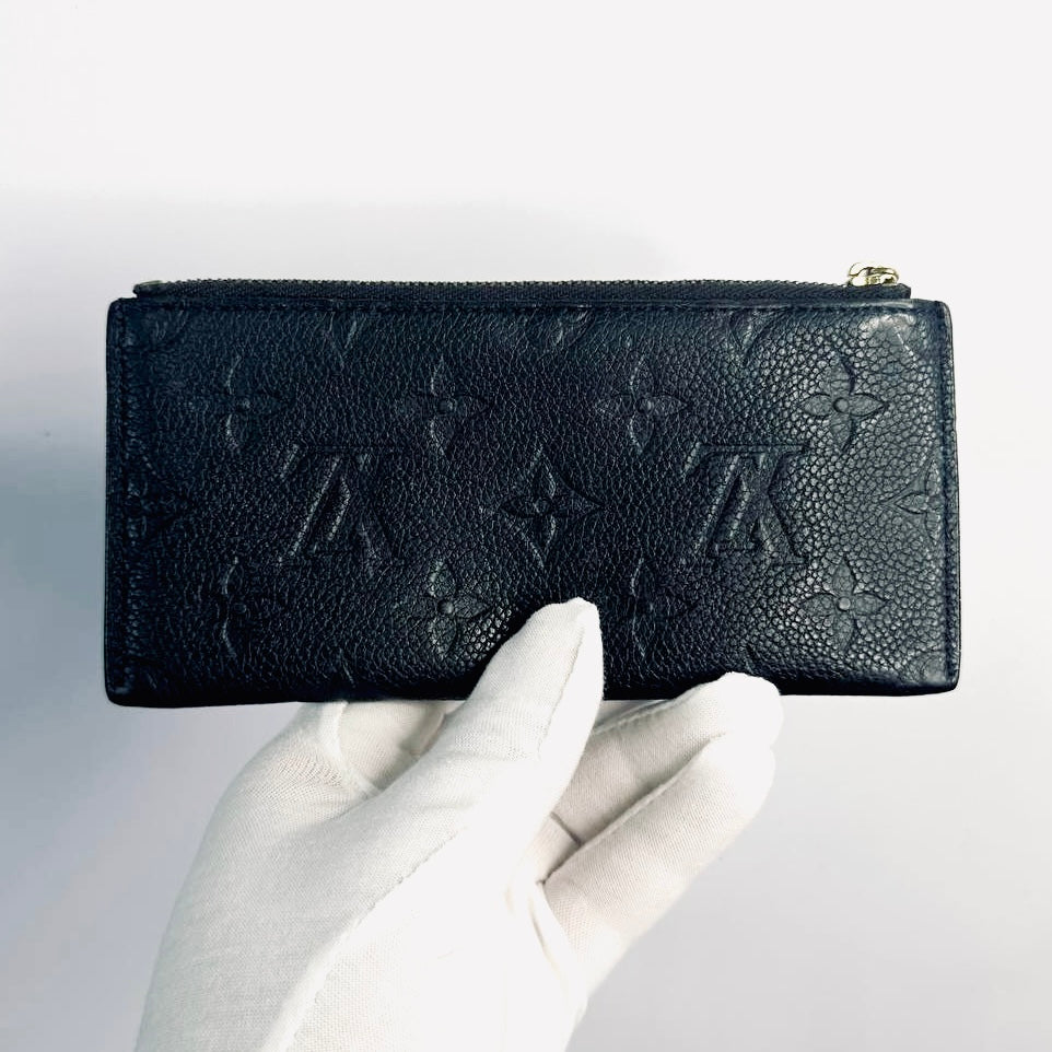 Louis Vuitton LV Black GHW Monogram Empreinte Leather Monogram Logo Zip Long Wallet Pouch Clutch Case