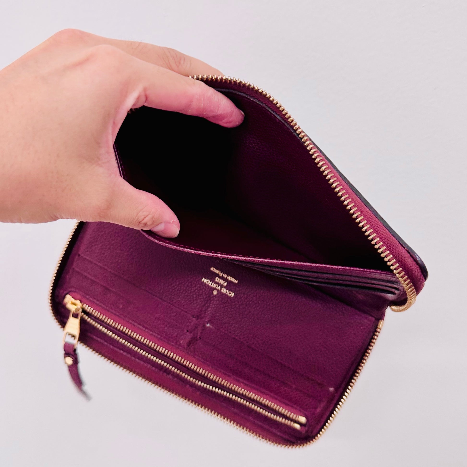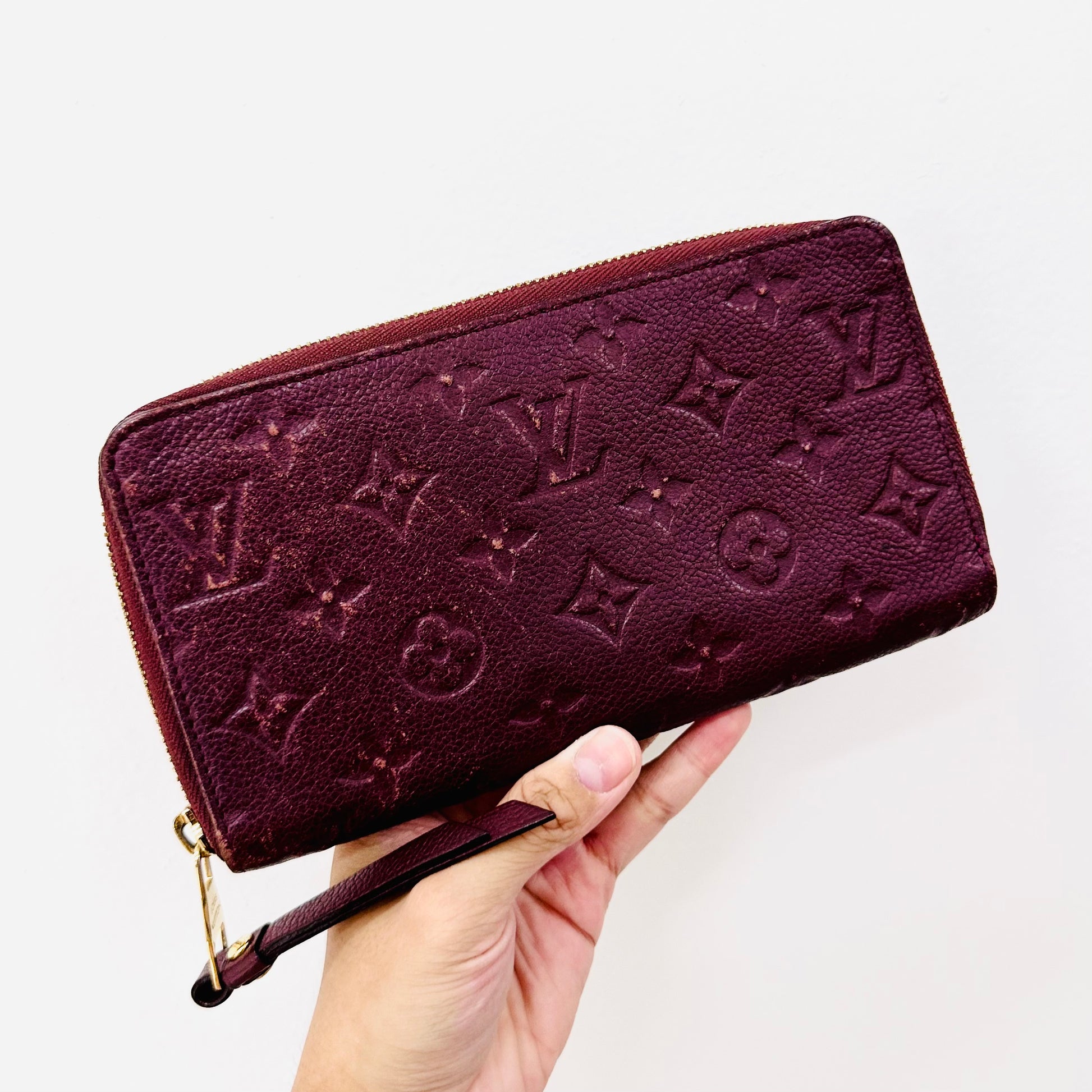 Louis Vuitton LV Burgundy Maroon GHW Monogram Empreinte Leather Classic Logo Zip Around Zippy Long Wallet