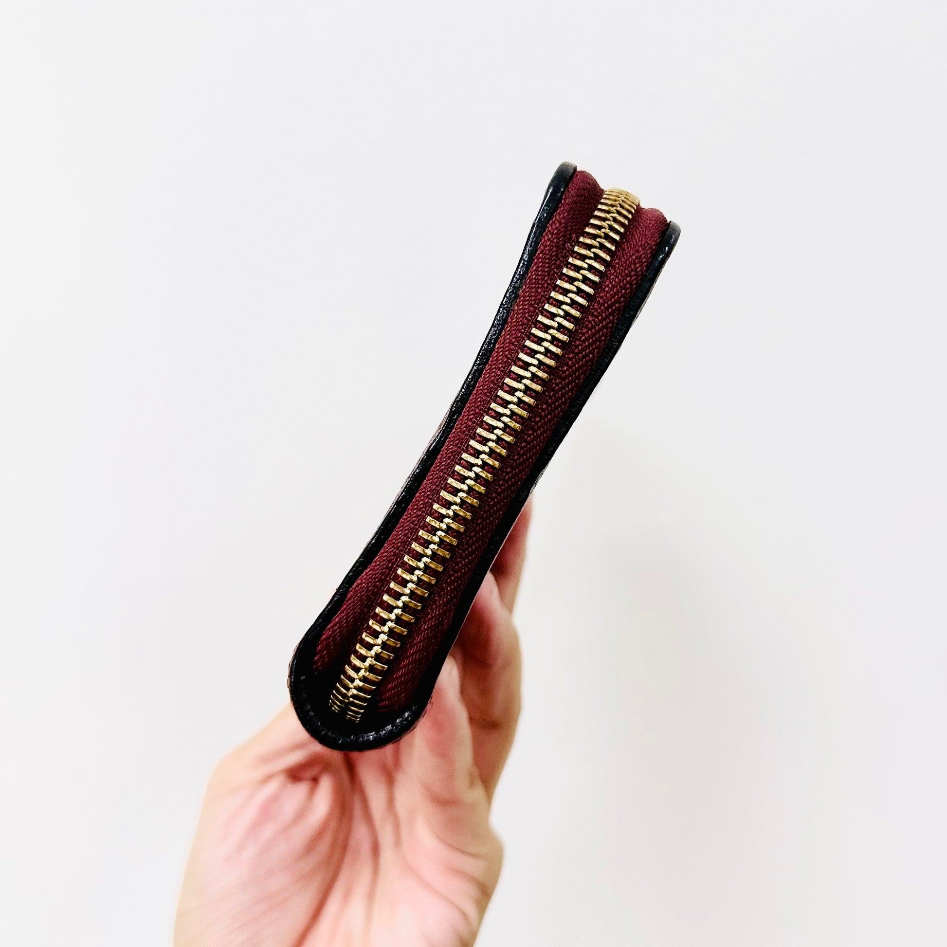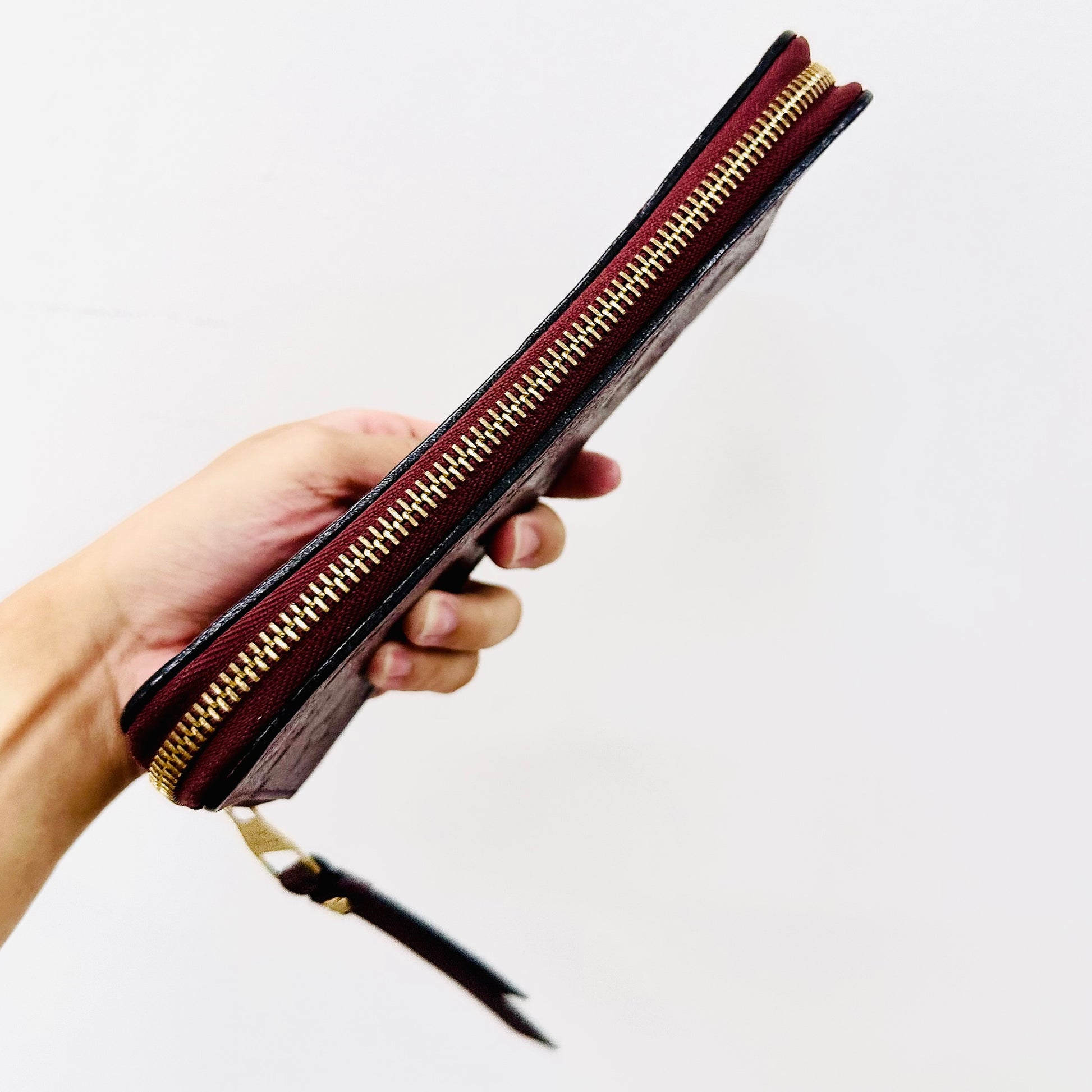 This has a zip around closure, zip pocket, card slots and slip pockets. This measures 19.5x10.5x2.5cm. This comes with clearly engraved hardware, interior stamping and date code.