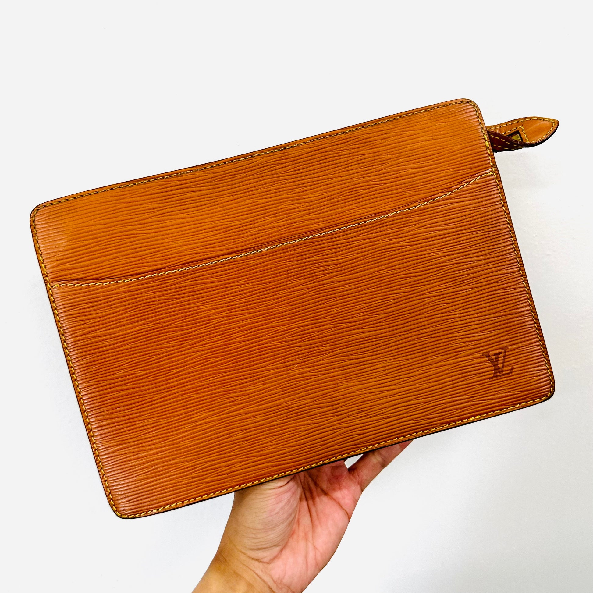 Louis Vuitton LV Caramel Brown GHW Monogram Logo Epi Leather Toiletry 26 Pouch Clutch Case