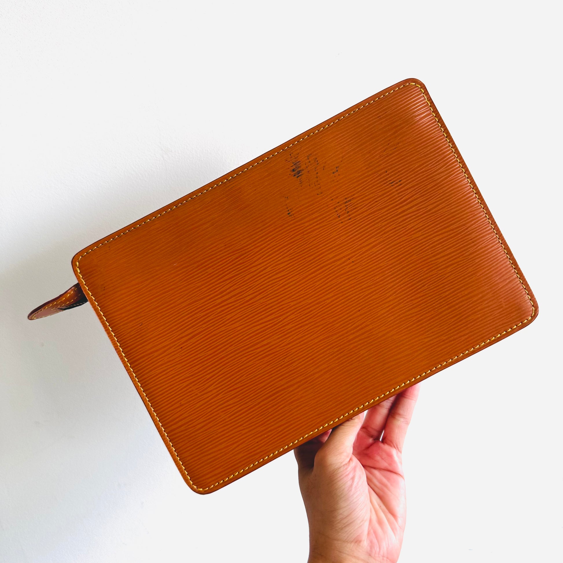 Louis Vuitton LV Caramel Brown Monogram Logo GHW Epi Leather Toiletry 26 Pouch Clutch Case