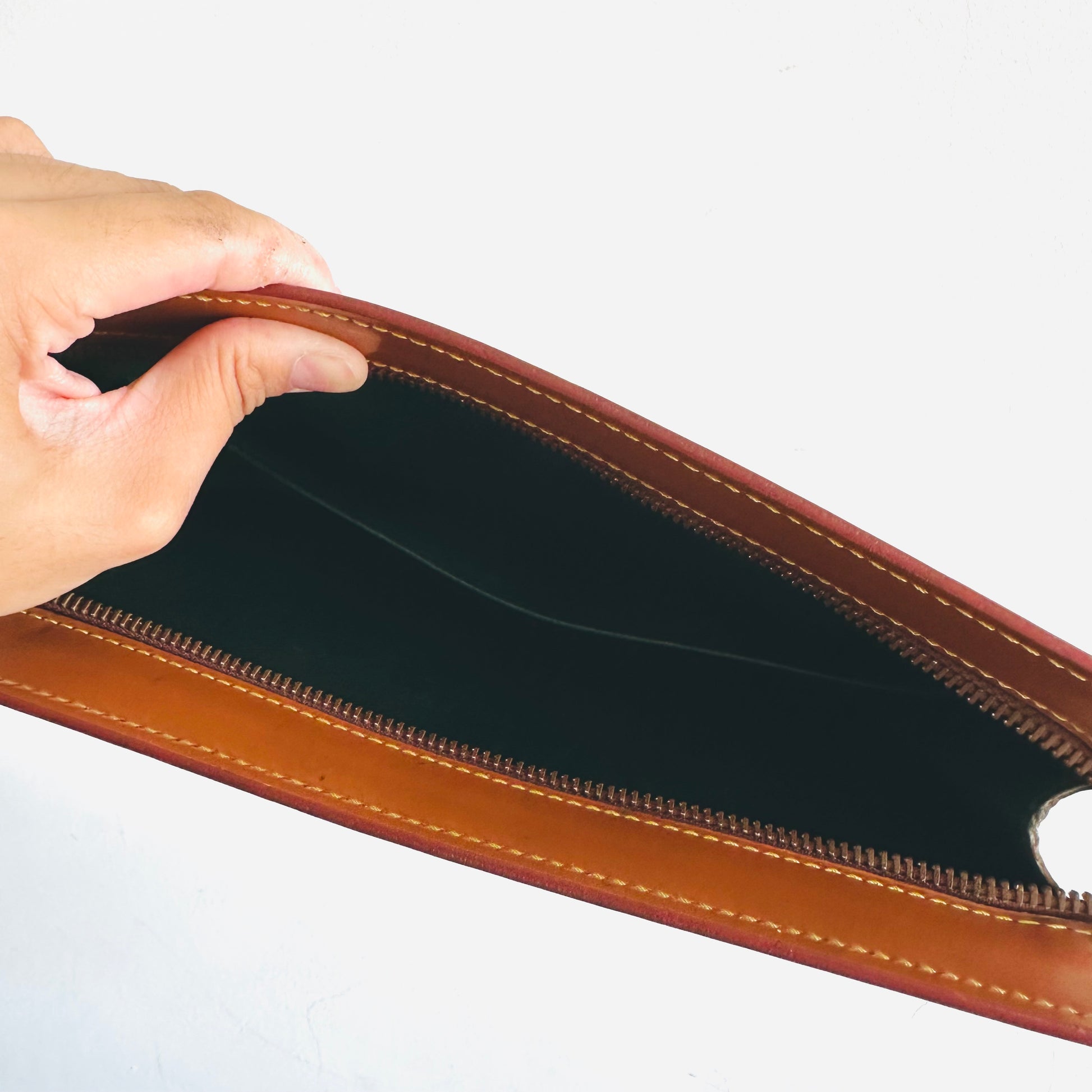 Preloved 9.3/10. This has a front slip pocket, zip closure, central compartment and slip pocket. This measures 26x17.5x5cm.