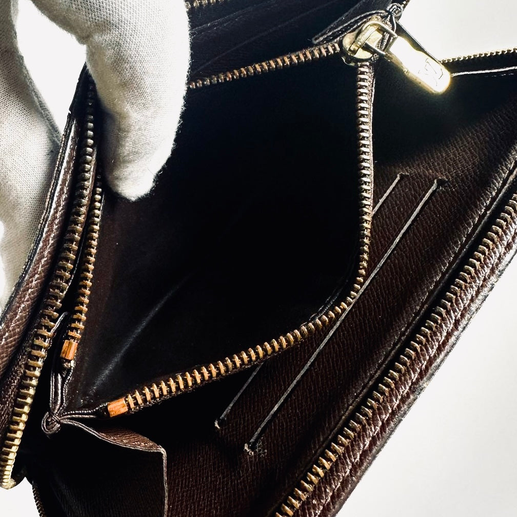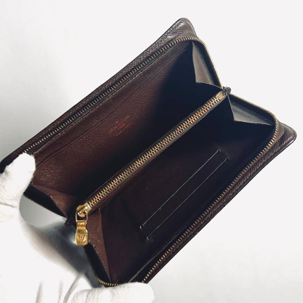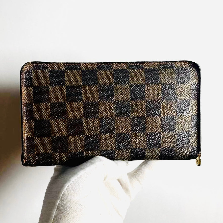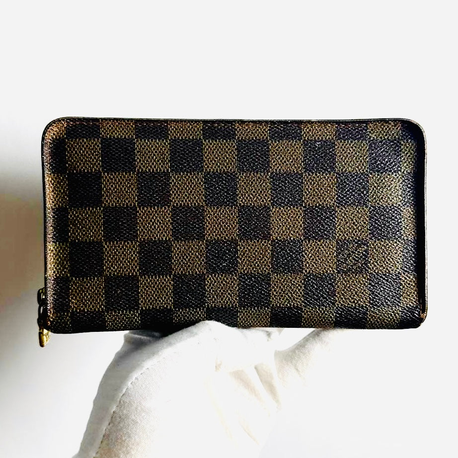 Louis Vuitton LV Damier Ebene DE Monogram Logo GHW Zippy Zip Around Long Wallet