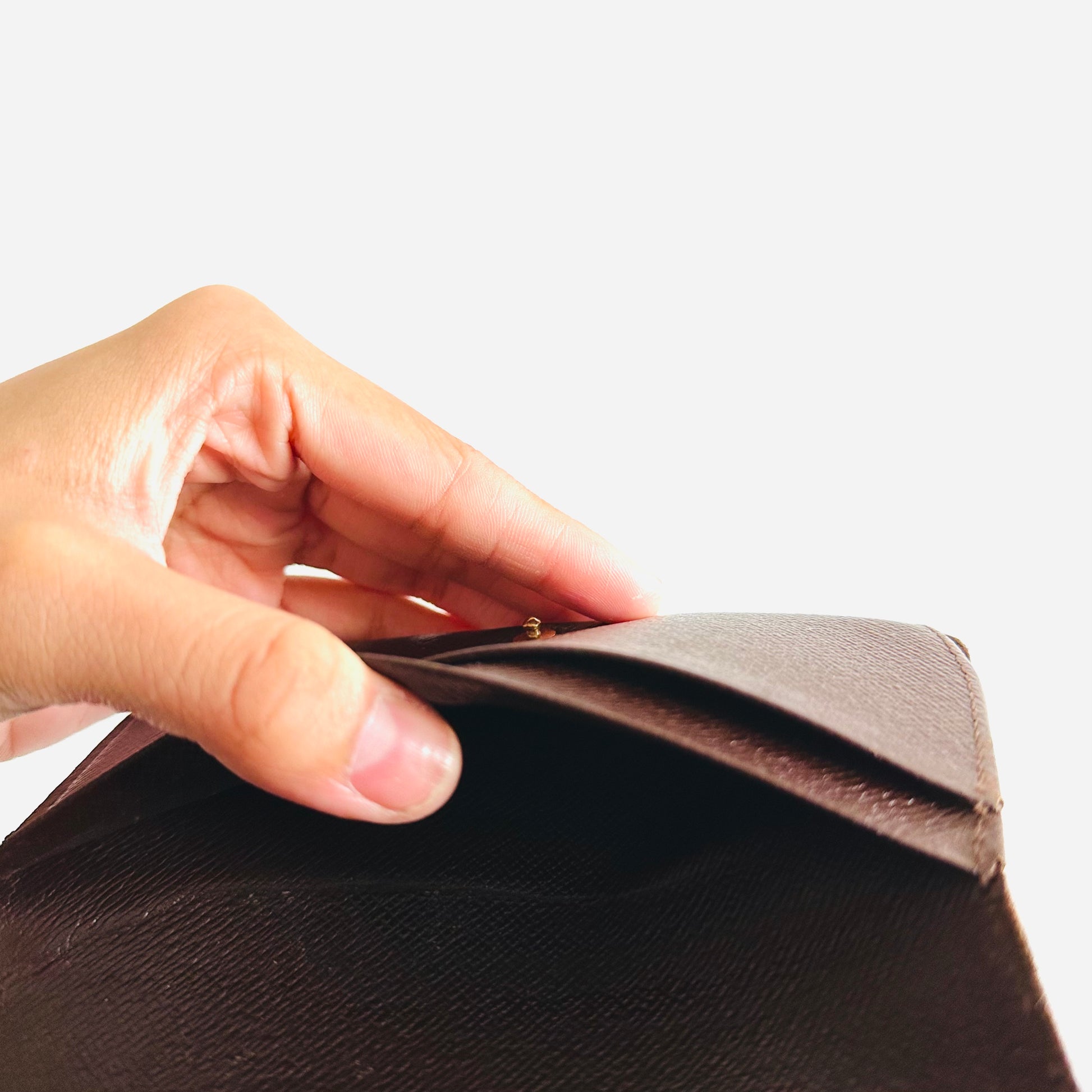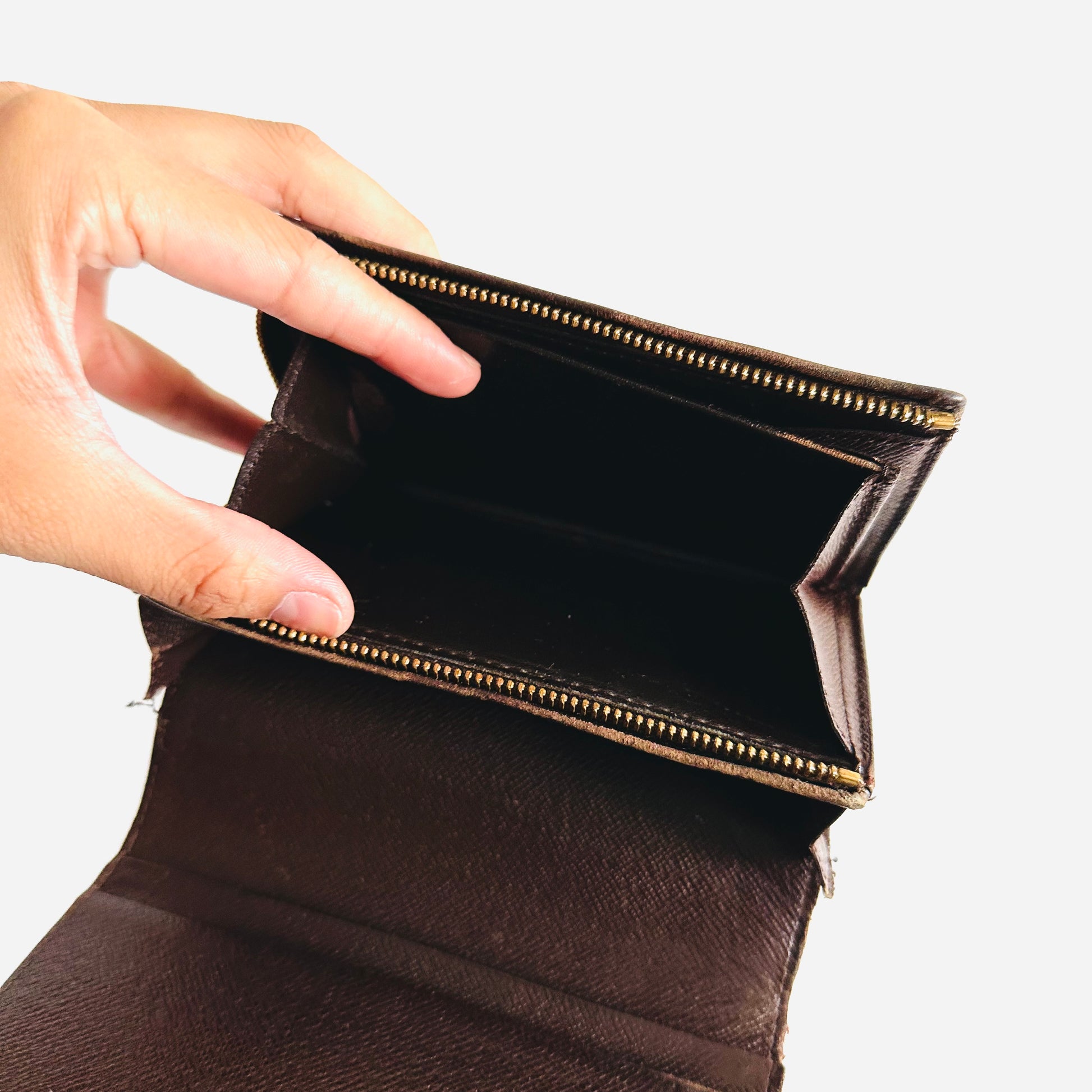 Louis Vuitton LV Damier Ebene Elise Classic Damier Ebene GHW Monogram Logo Bifold Compact Wallet