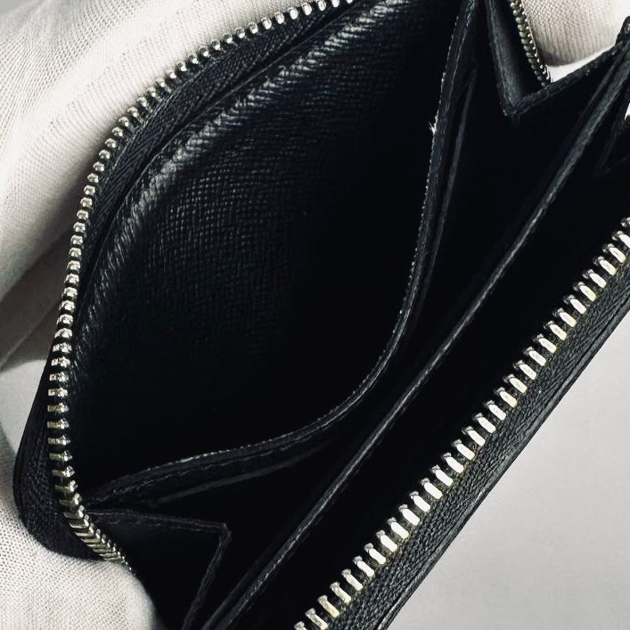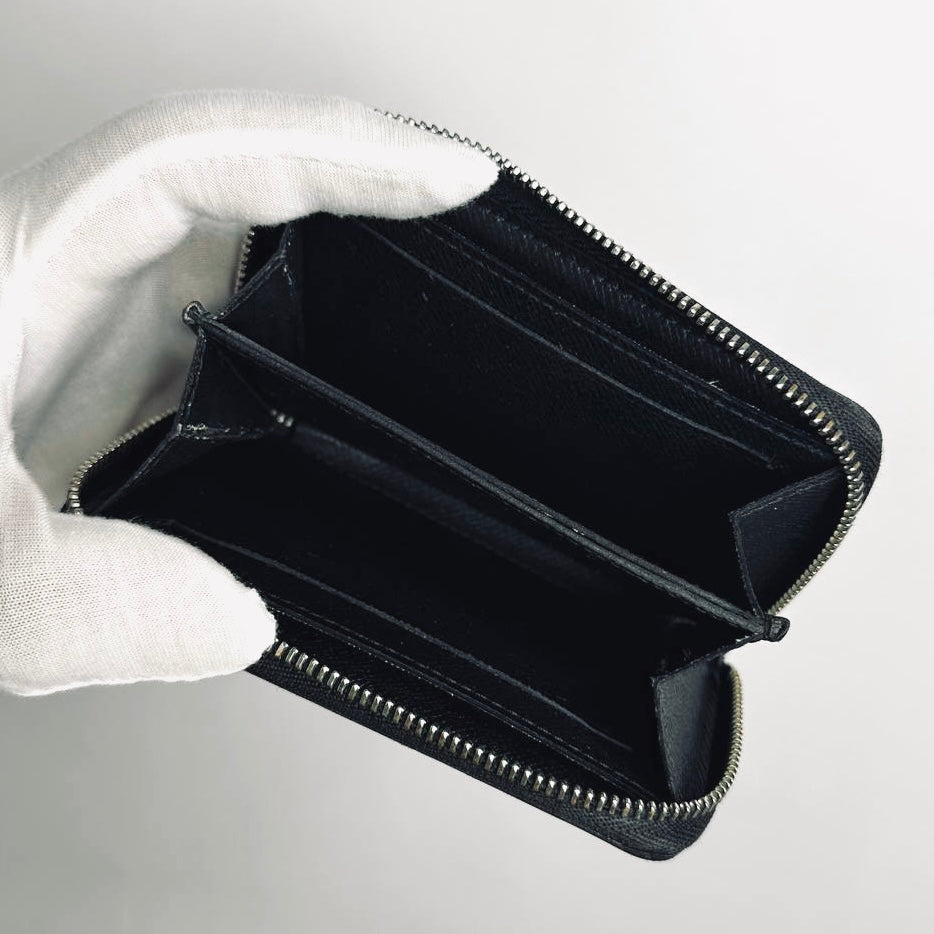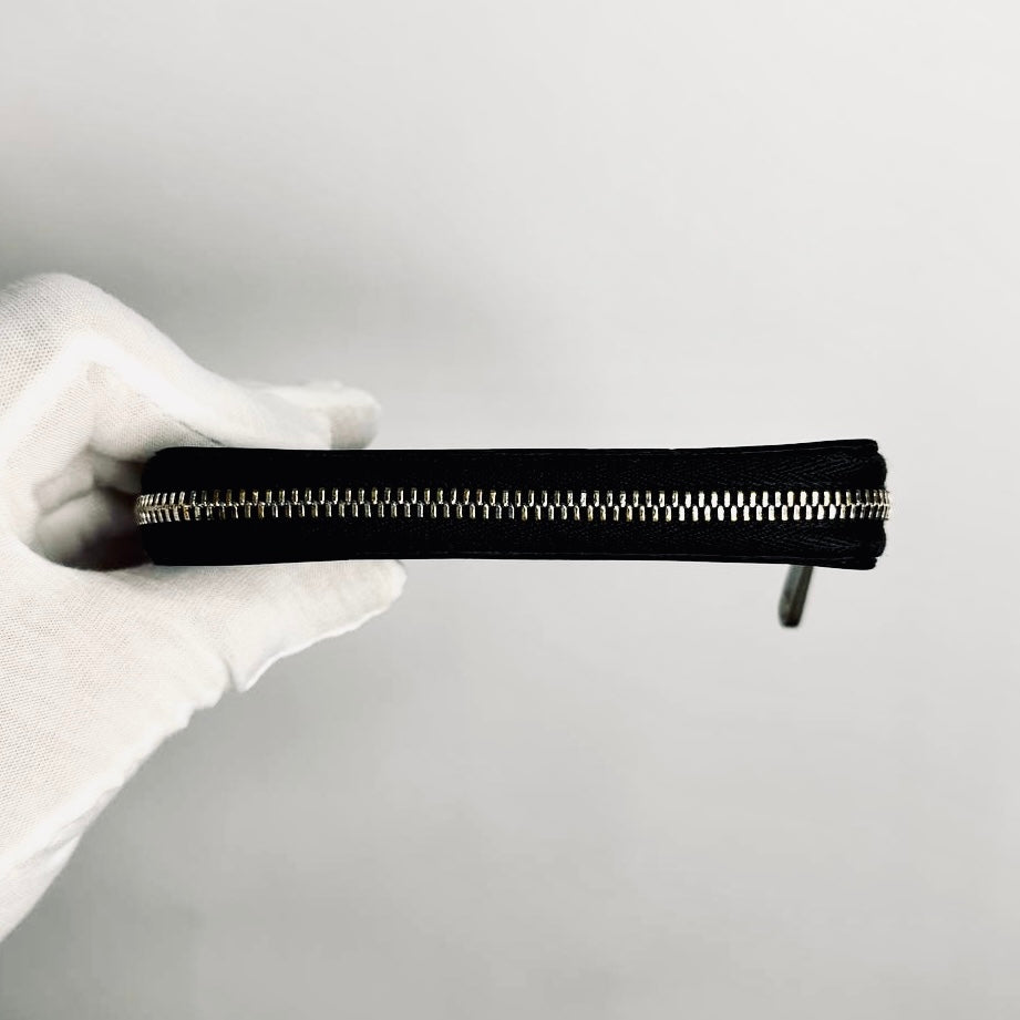 This has a zip around closure, notes compartments, slip pockets and card slots. This measures 11.5x7x2cm. This comes with clearly engraved hardware, interior stamping and date code.