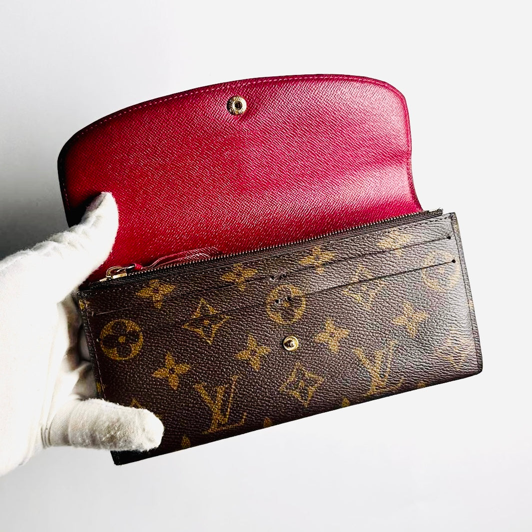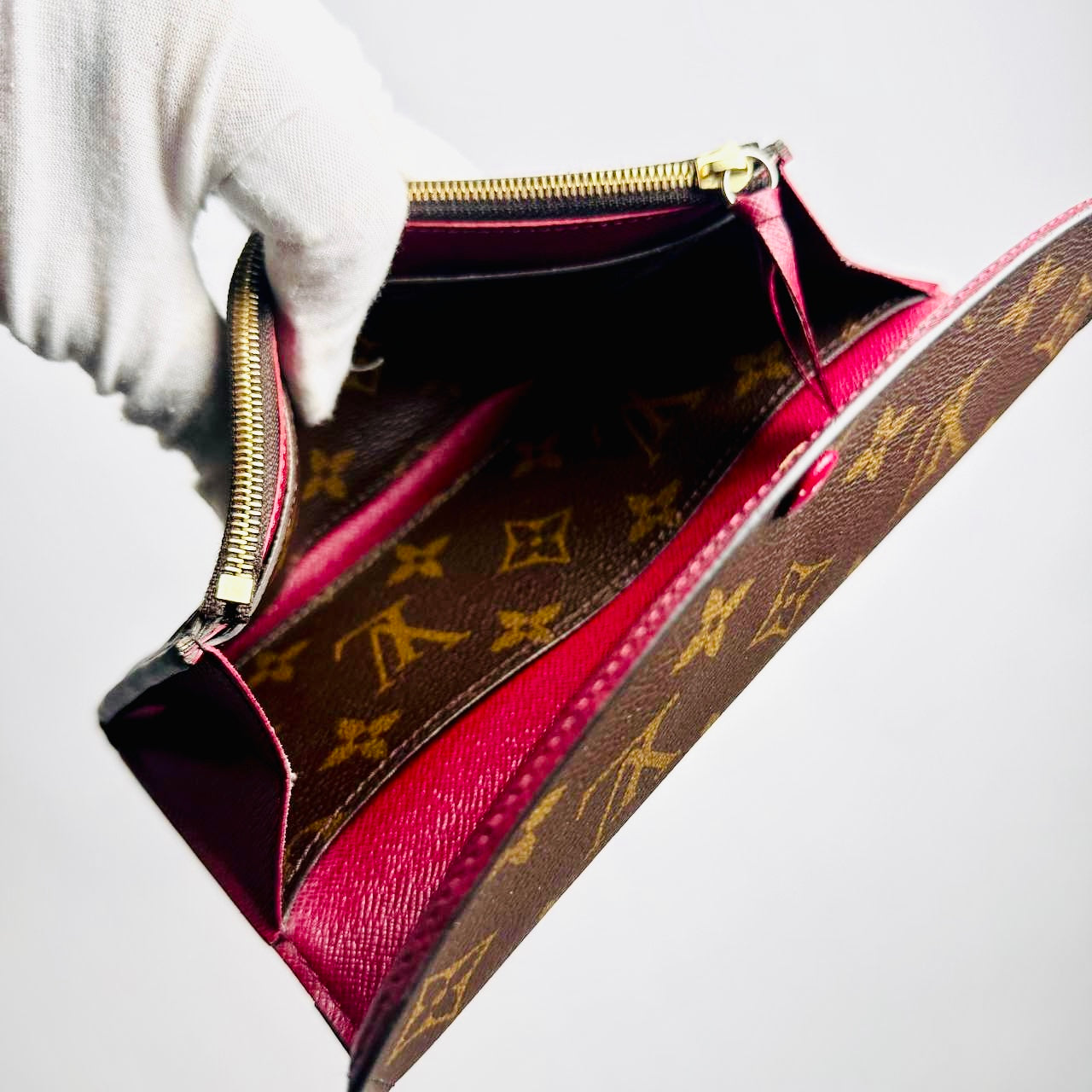 Louis Vuitton LV Emilie Monogram Logo / Fuchsia Pink GHW Flap Long Wallet