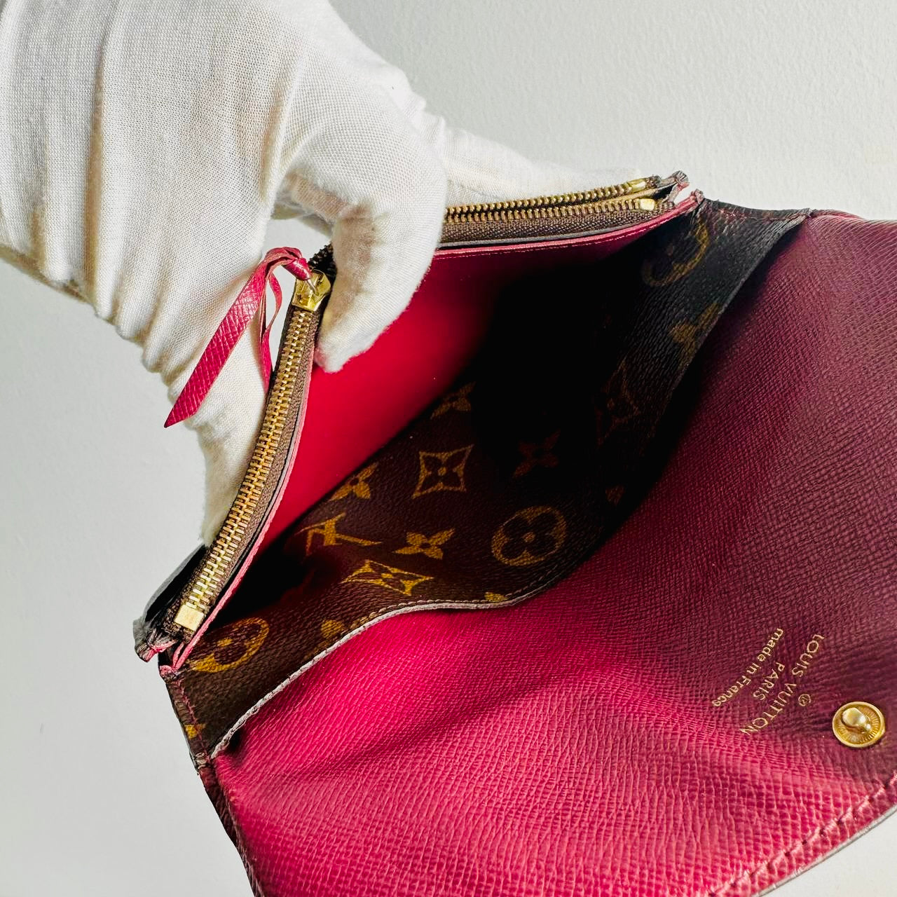 Louis Vuitton LV Emilie Monogram Logo / Fuchsia Pink GHW Long Flap Wallet