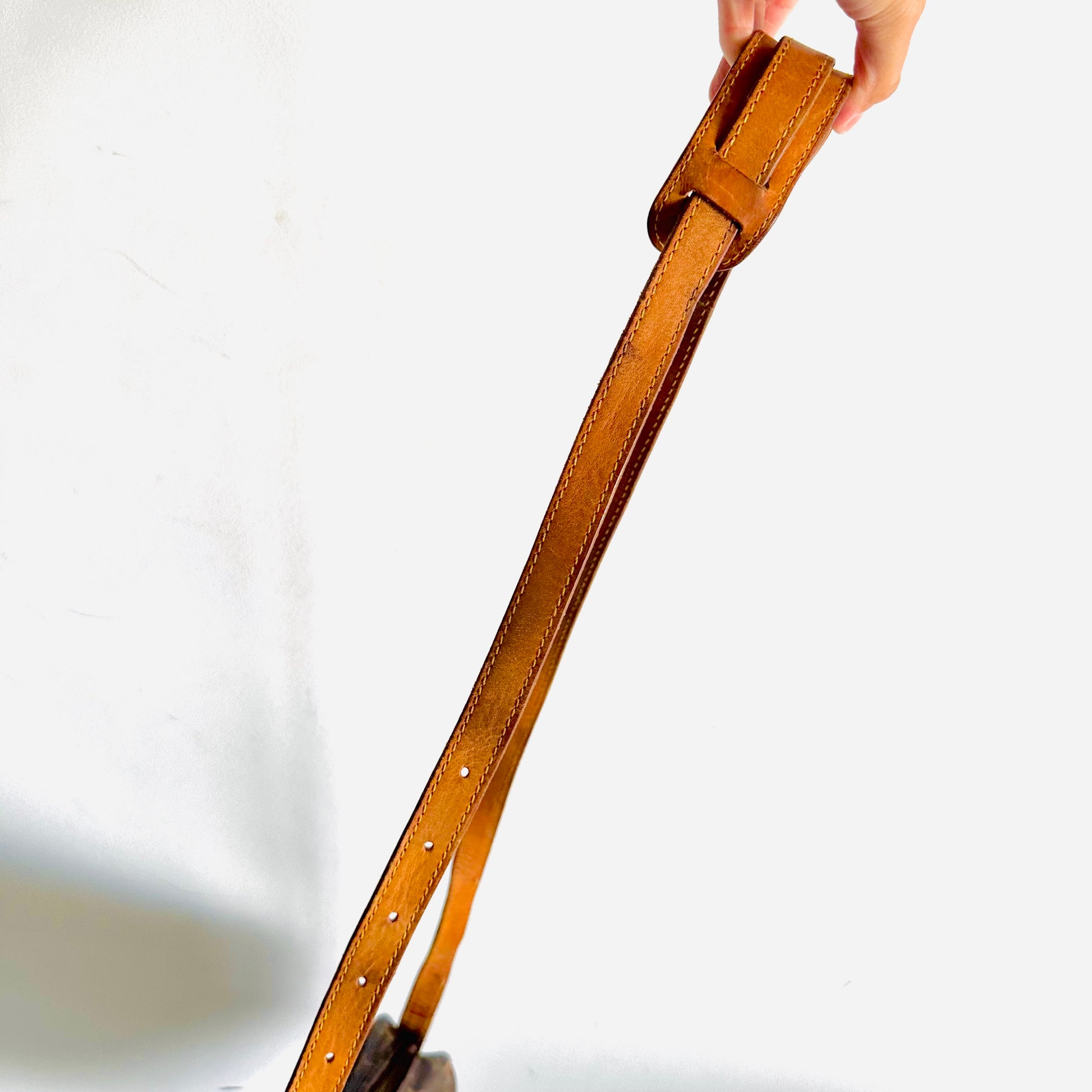 Preloved 9.4/10. This has an adjustable strap with shoulder pad, adjustable front flap closure pocket, zip closure and central compartment. This measures 24x17x7cm.