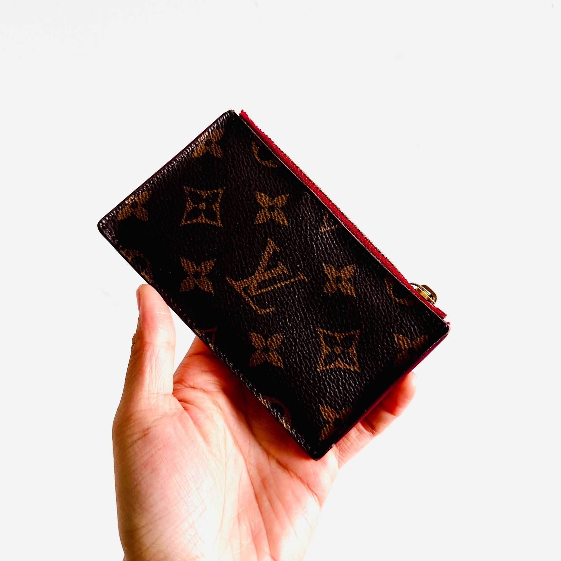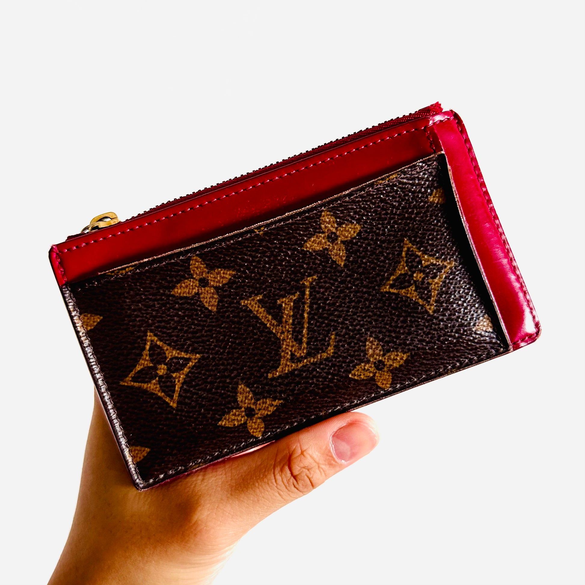 Louis Vuitton LV Monogram Logo / Fuchsia Zip Compact Zipped Card Case Cardholder Wallet