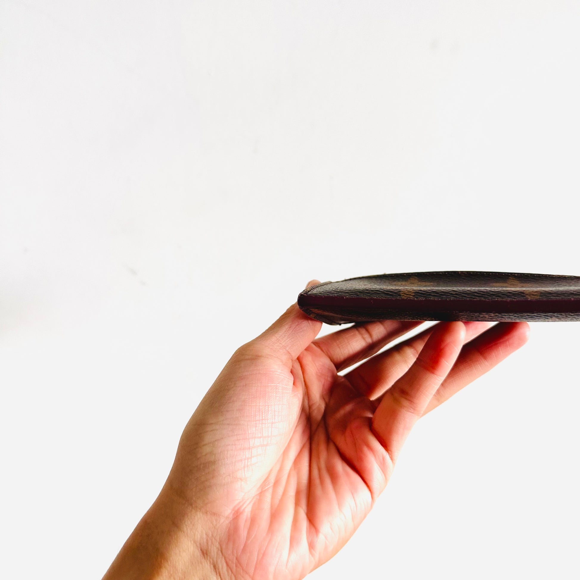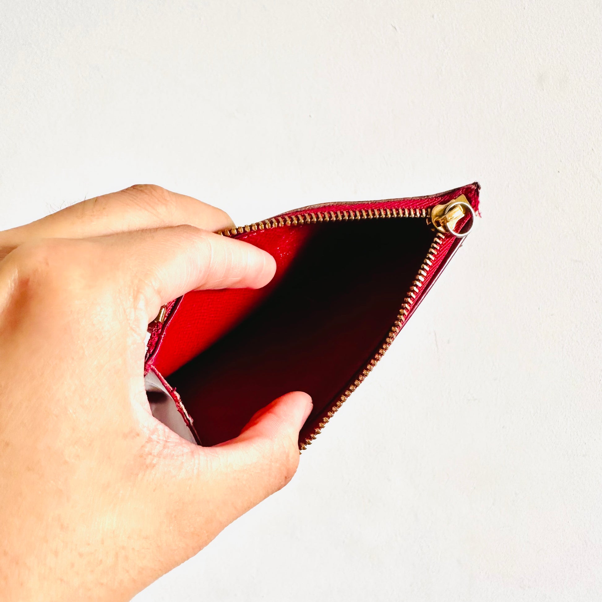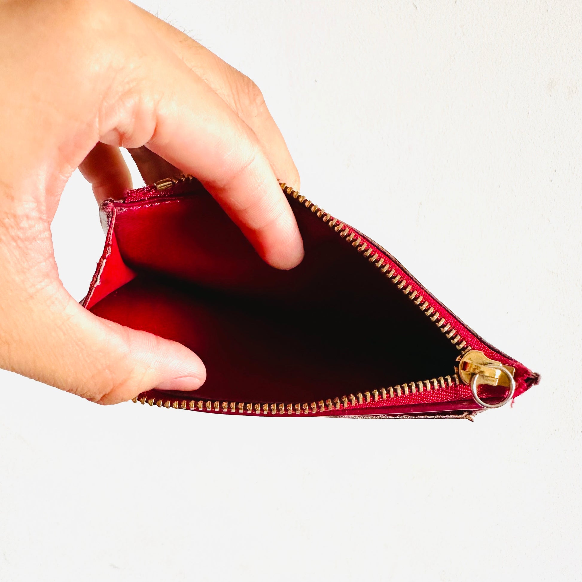 Preloved 9.4/10. This has a zip compartment and slip pockets. This measures 13x8x1cm.
