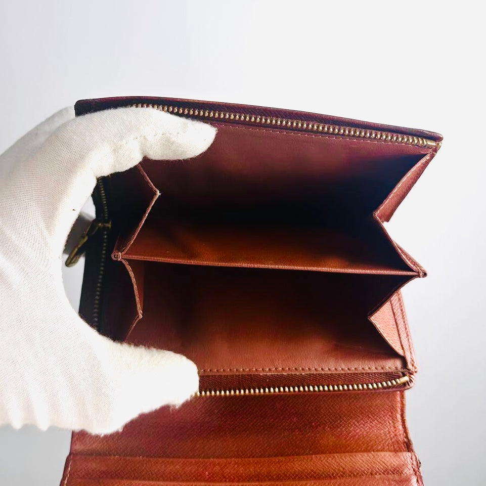 Louis Vuitton LV Monogram Logo GHW Porte Monnaie Tresor Flap Compact Bifold Wallet
