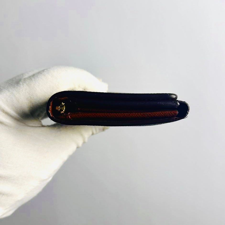 This has a flap button closure, slip pockets, zip coin pocket and central compartment. This measures 15x10x2cm. This comes with clearly engraved hardware, interior stamping and date code.