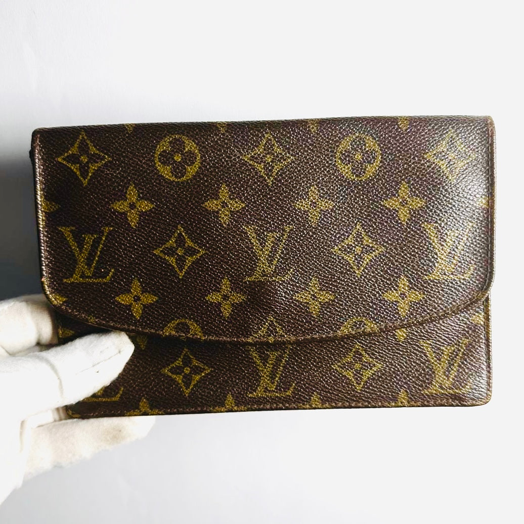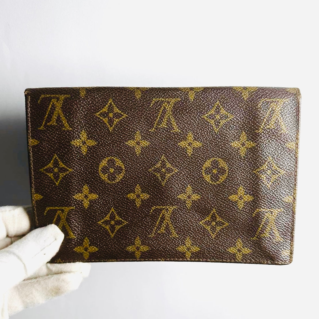 Louis Vuitton LV Monogram Logo GHW Vintage Toiletry Pouch Flap Clutch Case
