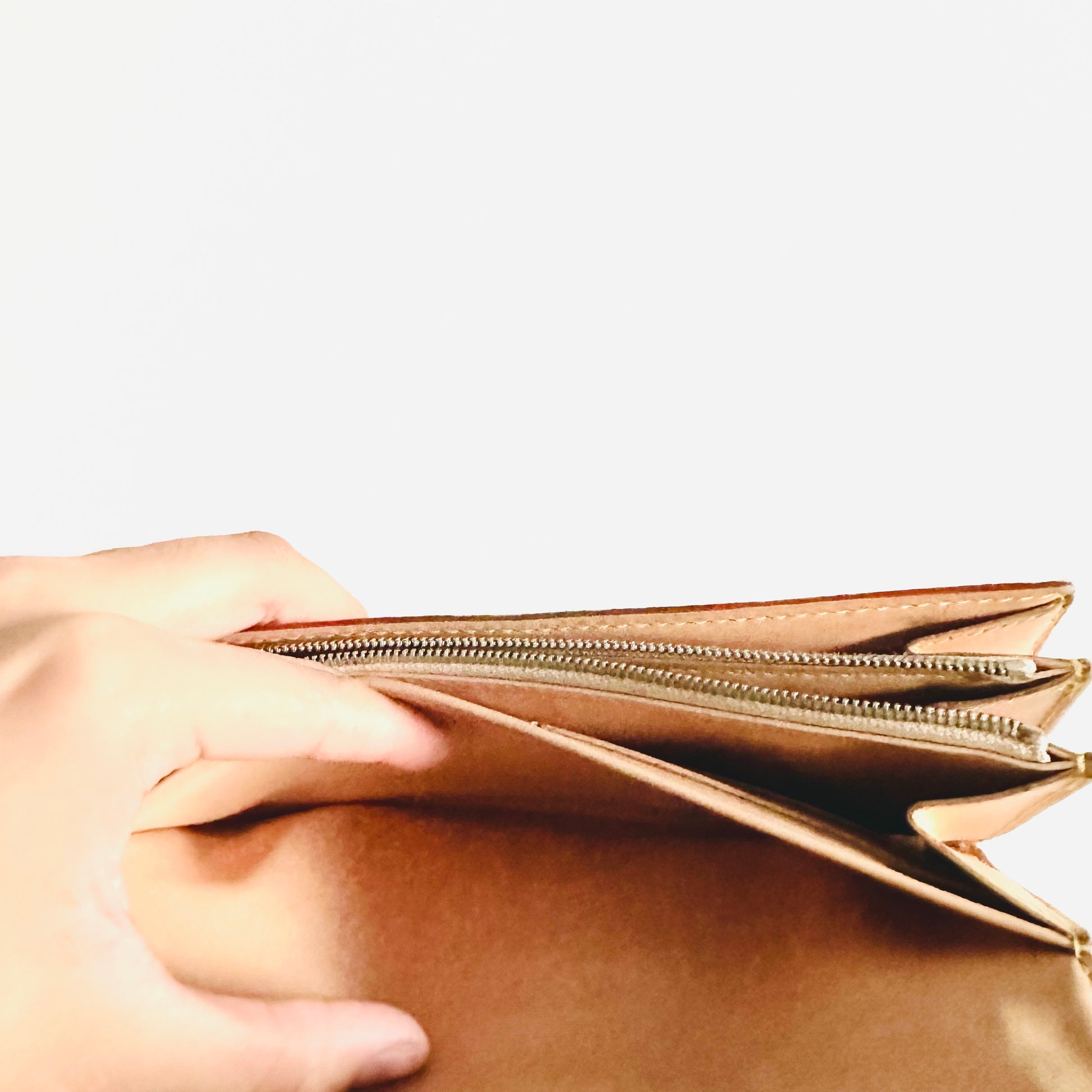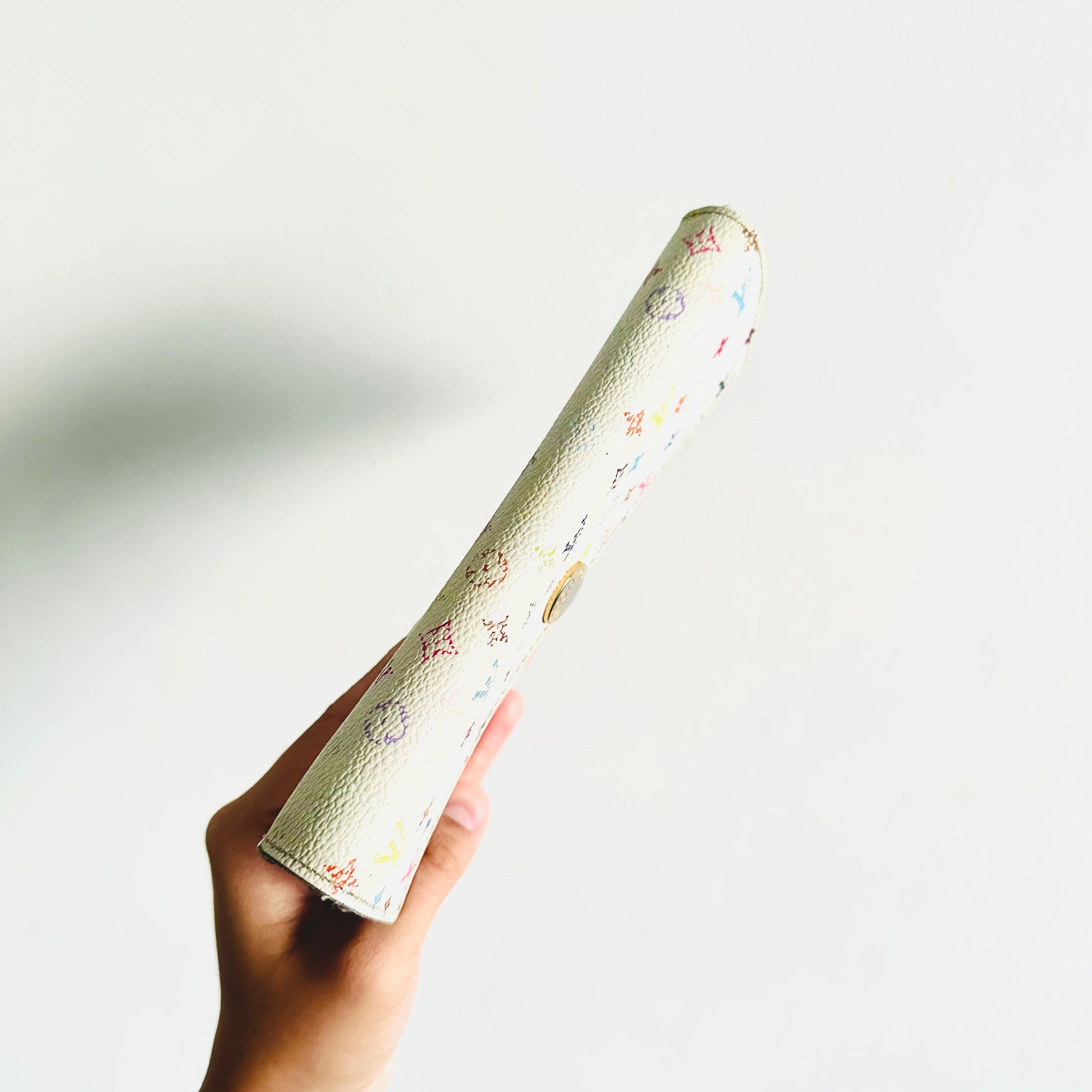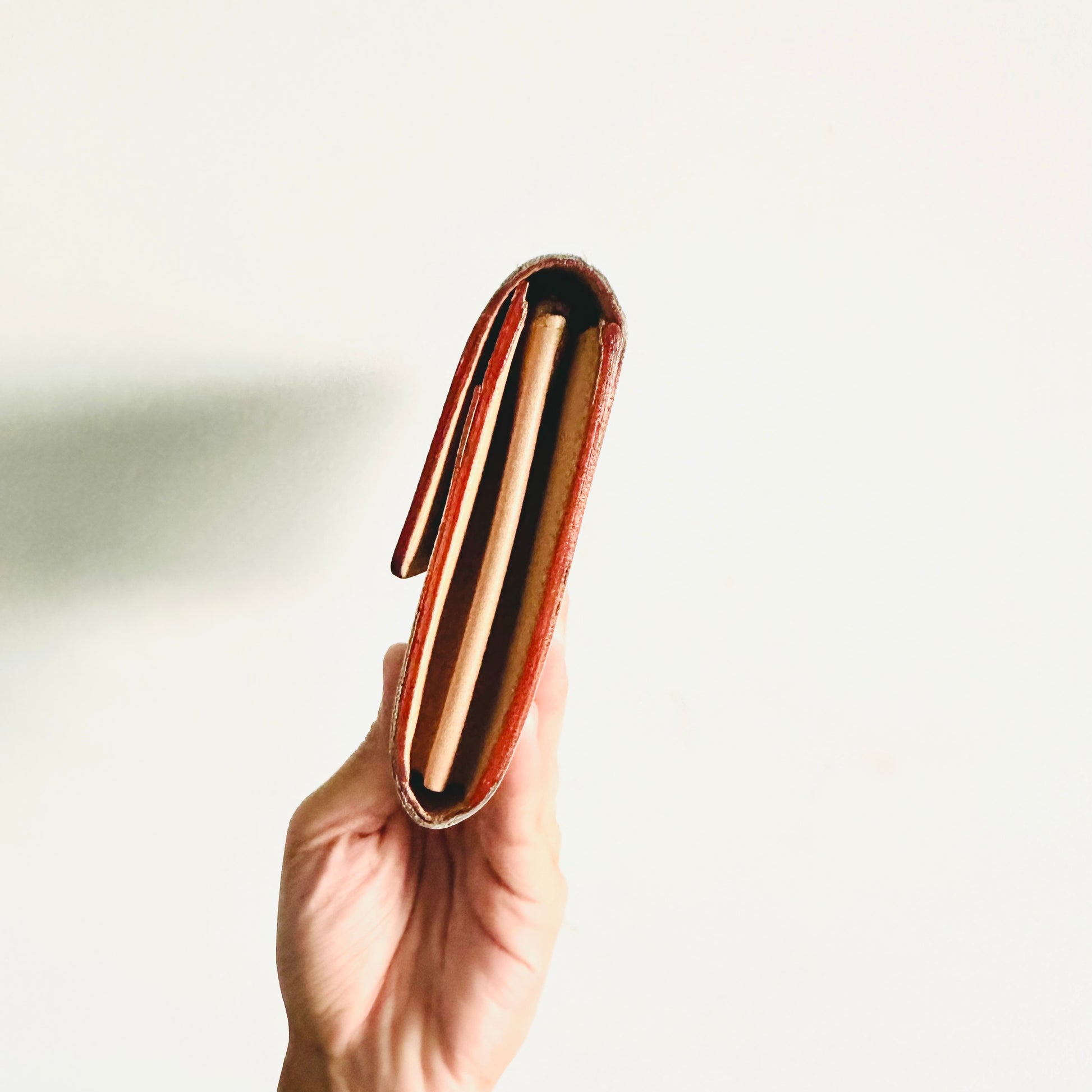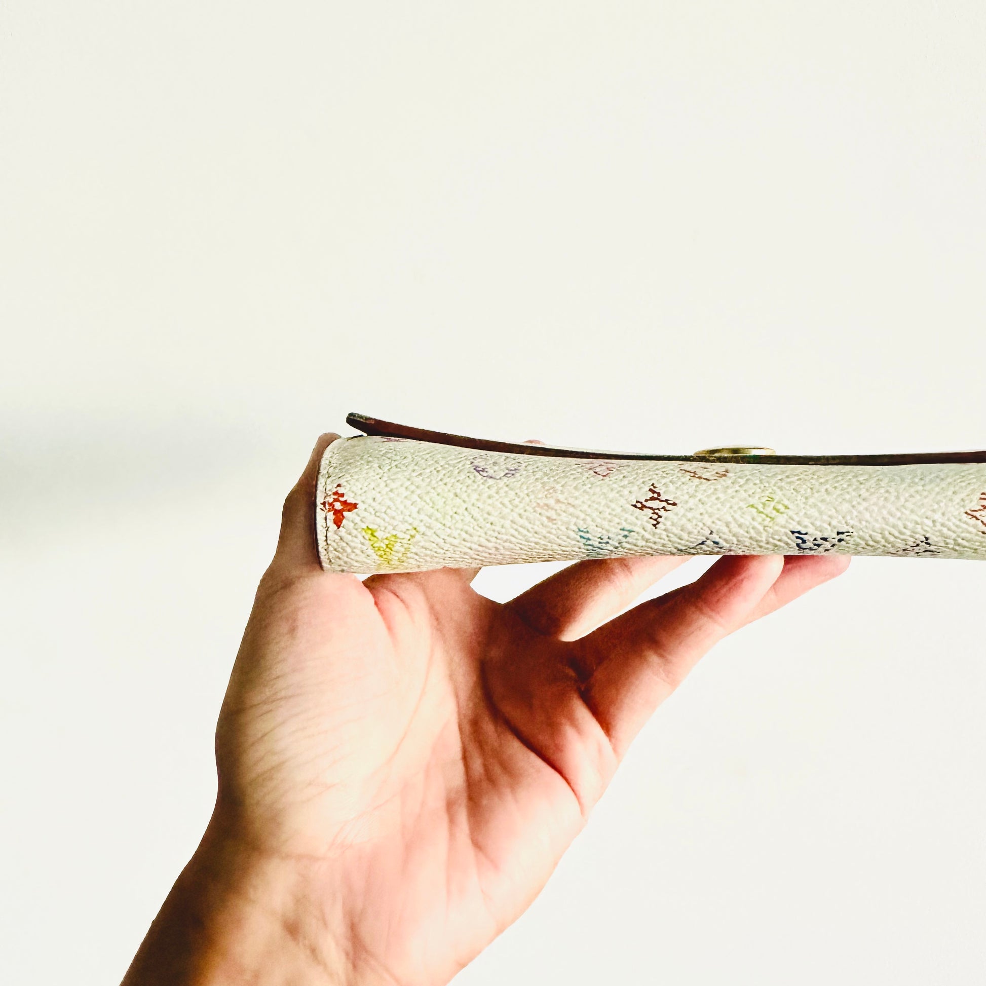 Preloved 9.2/10. This has a flap button closure, zip pocket, notes compartment, slip pockets and card slots. This measures 19x10.5x2.5cm.