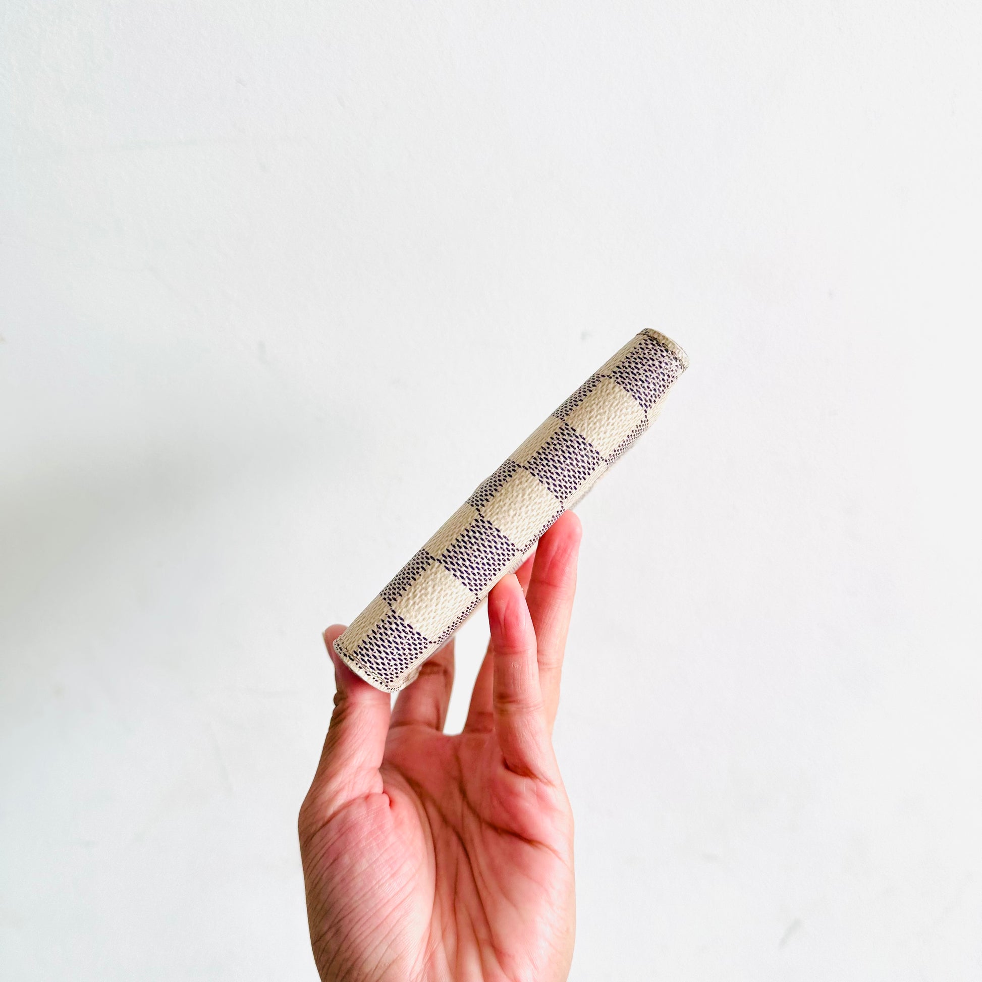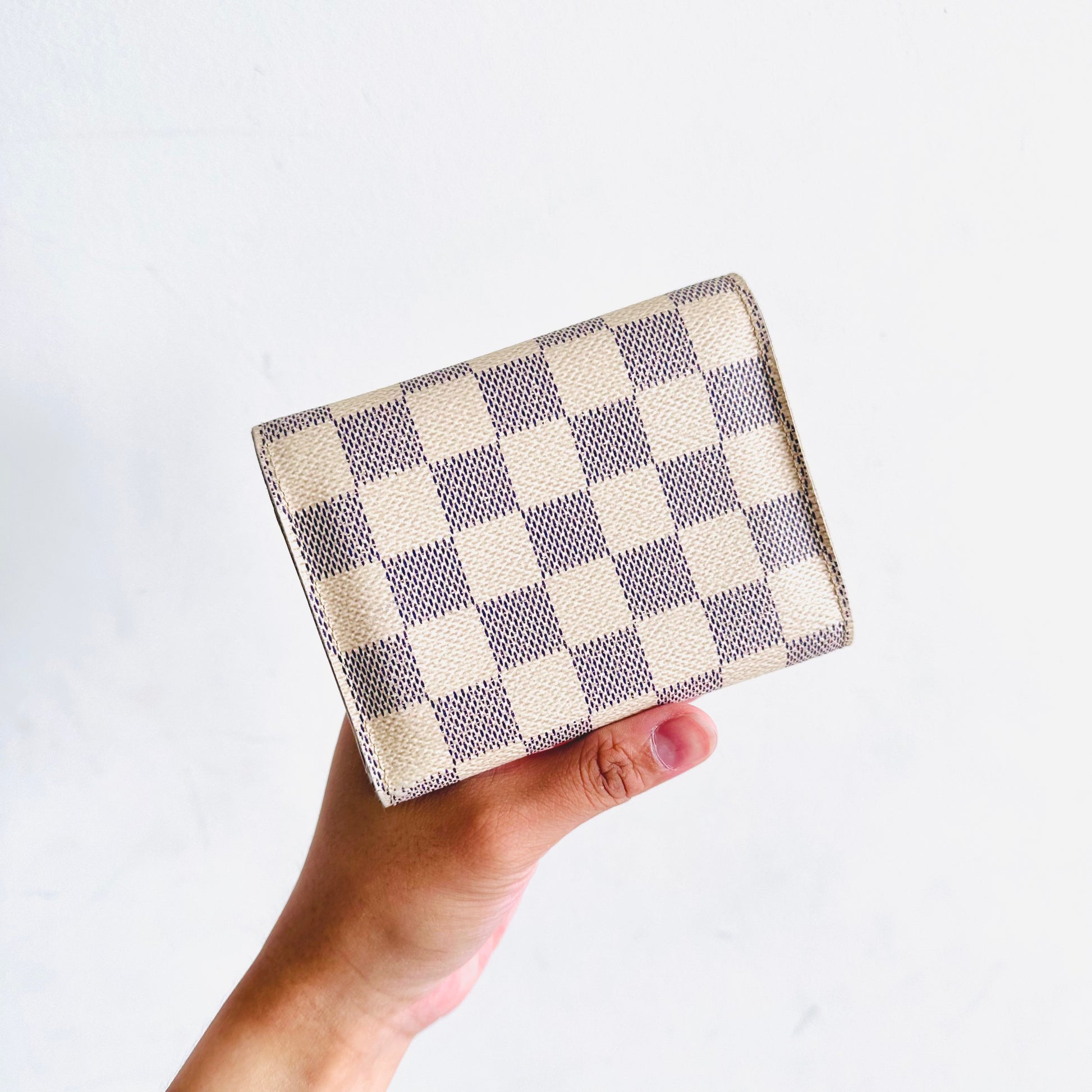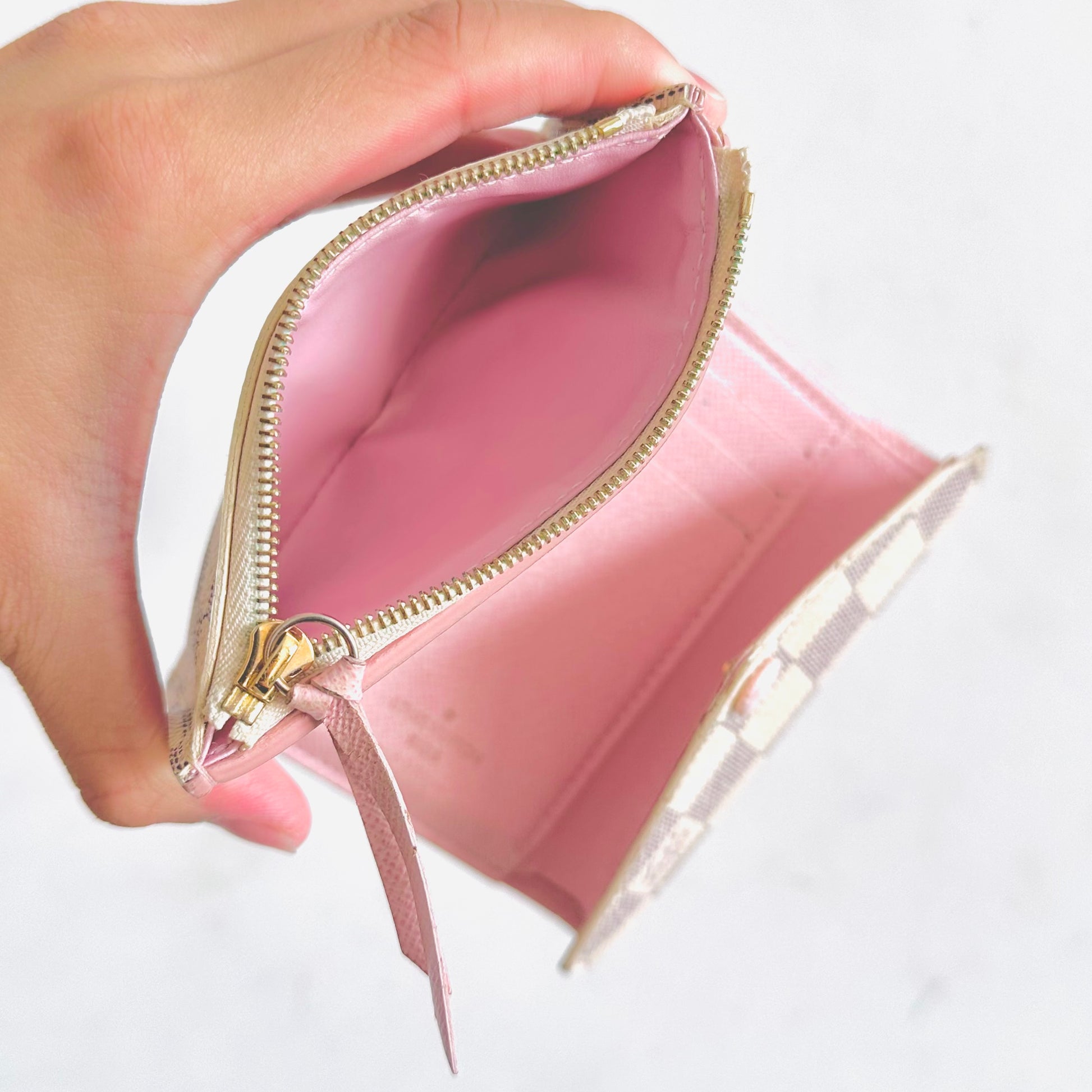 Louis Vuitton LV Victorine Damier Azur DA & Rose Ballerine Pink Monogram Logo GHW Flap Compact Trifold Wallet