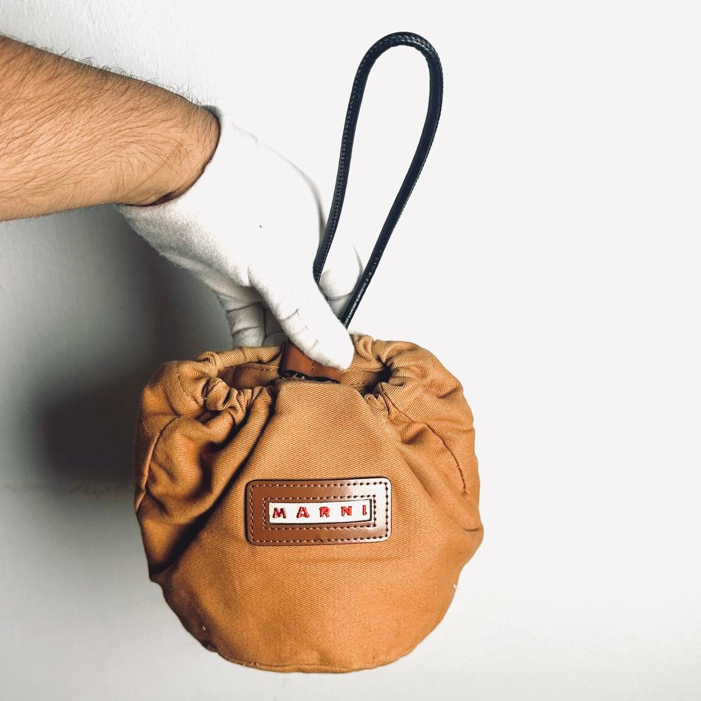 Marni Tropicalia Small Beige / Tan Monogram Logo Interwoven Raffia / Leather Basket Bucket 2-Way Shoulder Sling Tote Bag