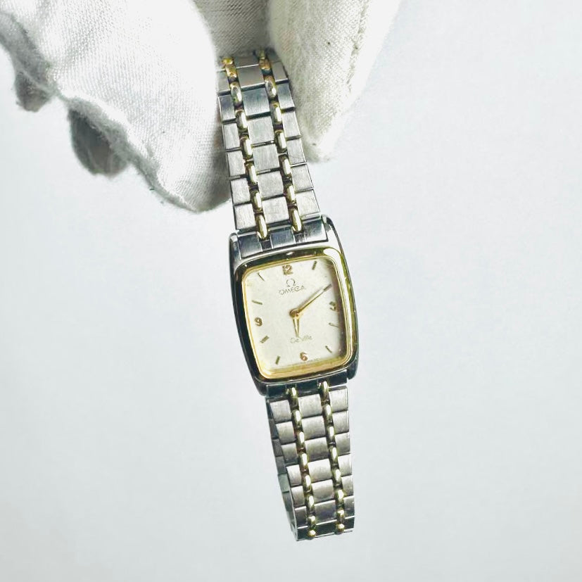 Omega De Ville Rectangular Dial Gold & Stainless Steel Vintage 18MM Quartz Watch