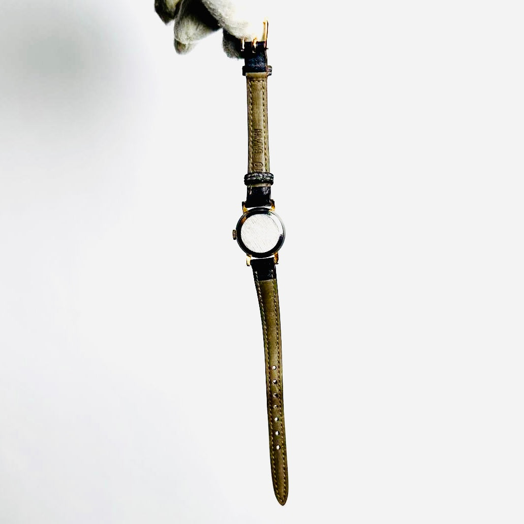 Omega Ladymatic Gold/ White Round Dial Black Leather Strap Automatic 19MM Vintage Watch