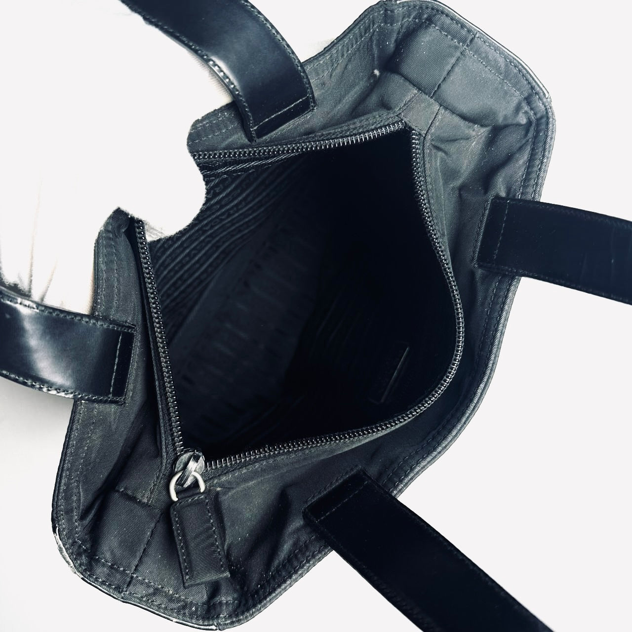 Prada Black Classic Tessuto Nylon & Leather Monogram Logo Shopper Shoulder Tote Bag