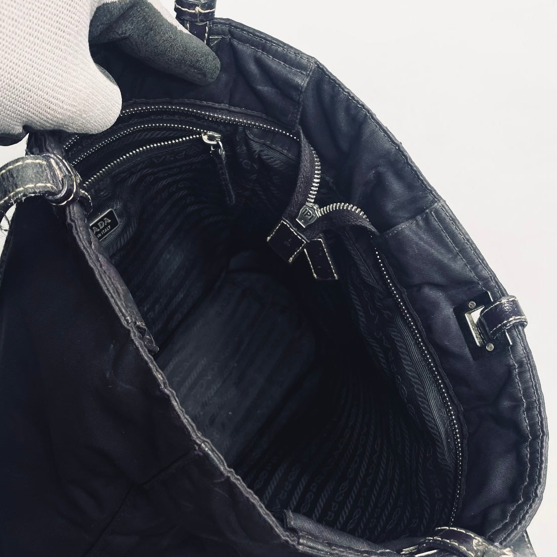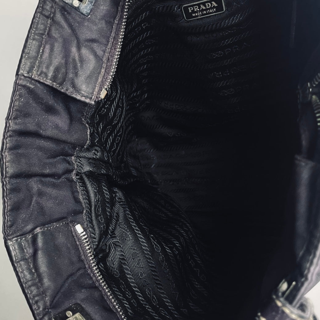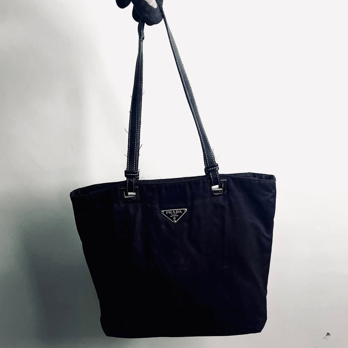 Prada Black Tessuto Acciaio Classic Logo Shopper Zip Shoulder Tote Bag
