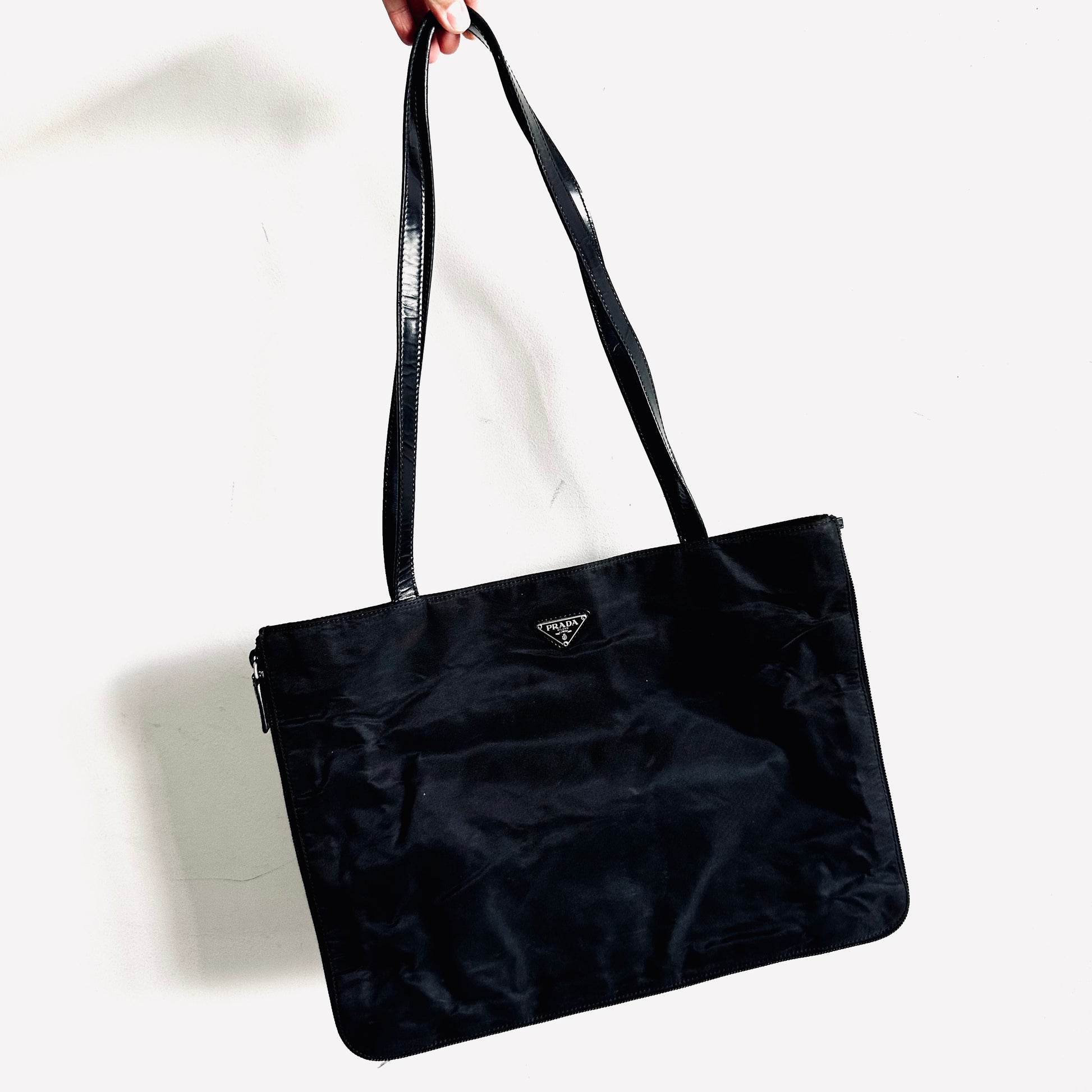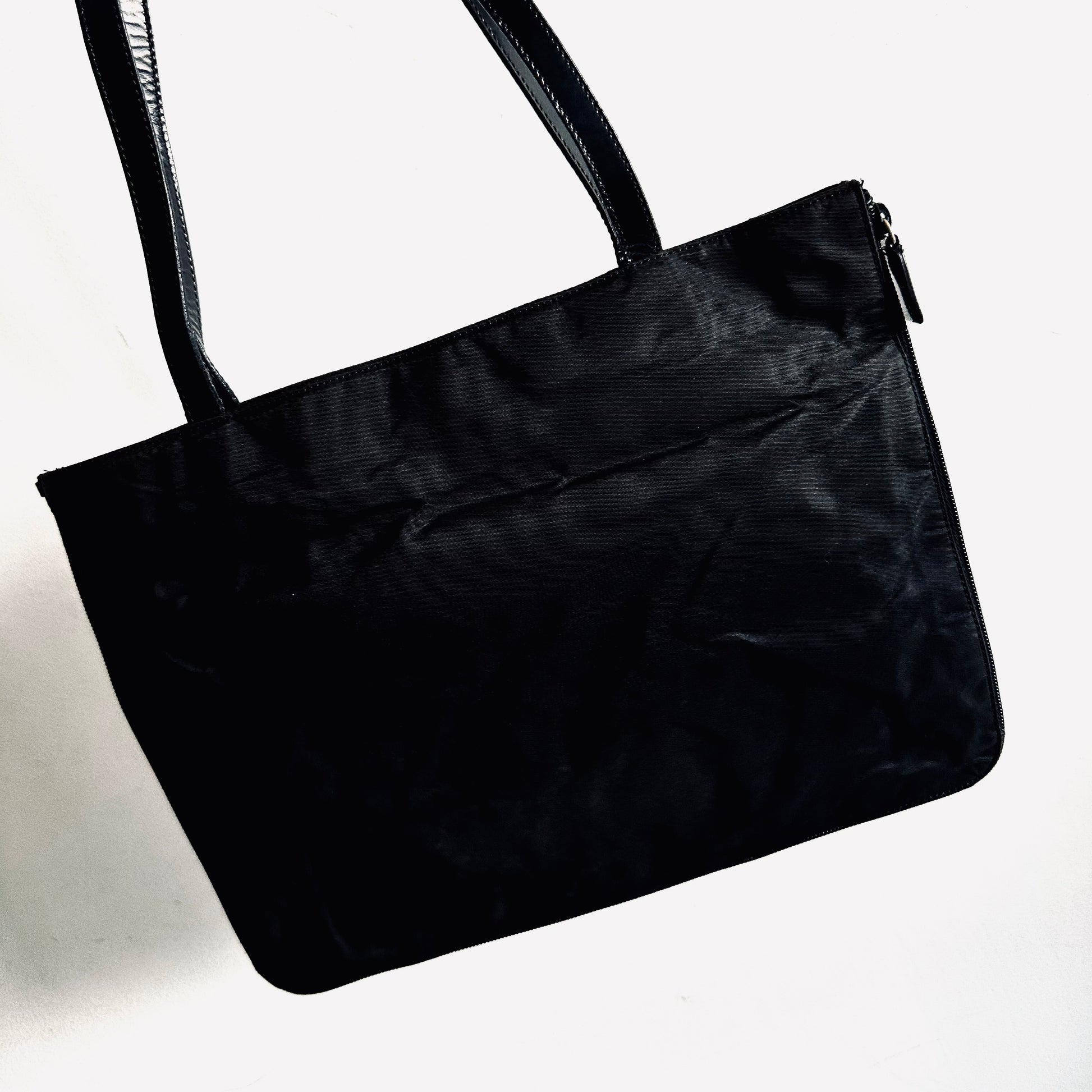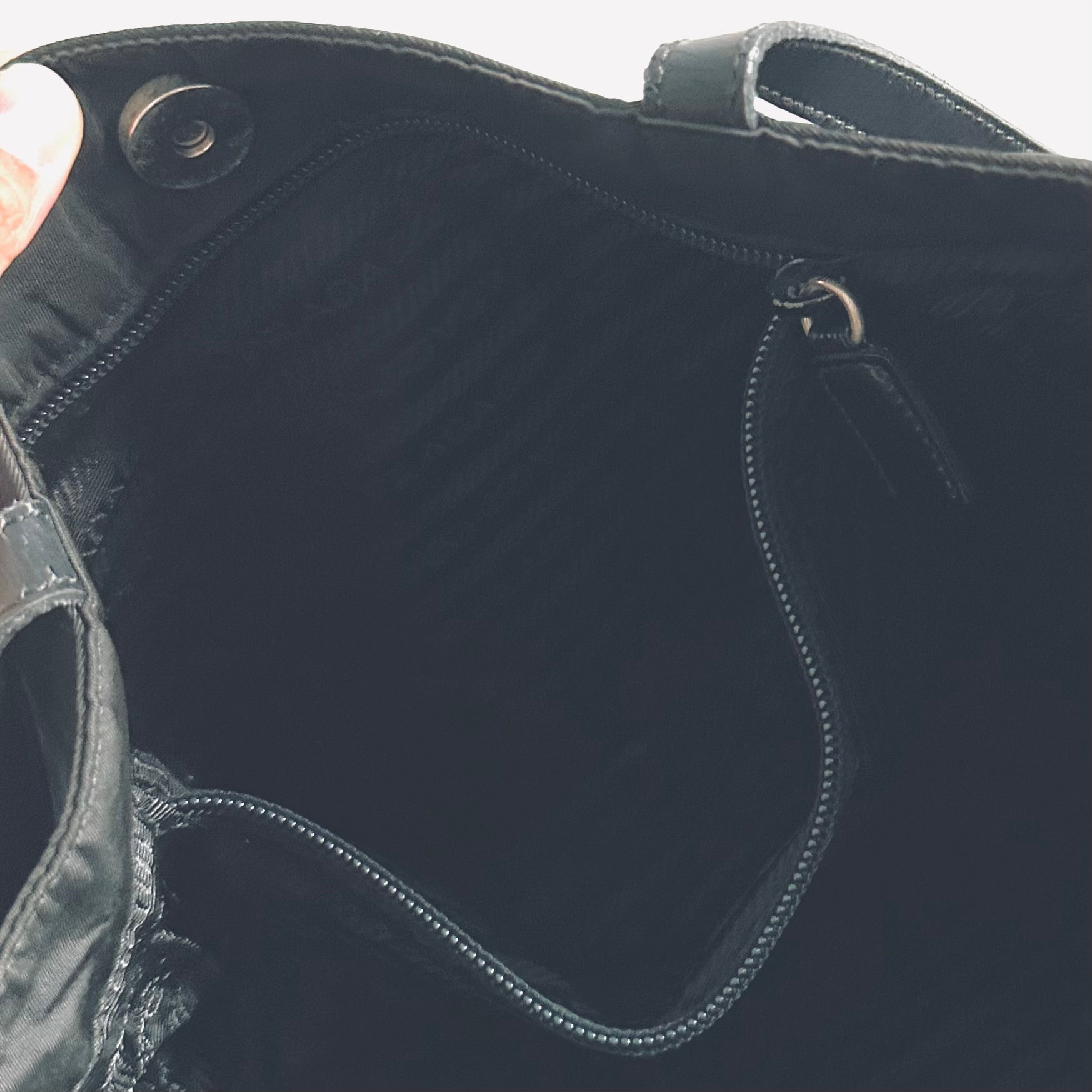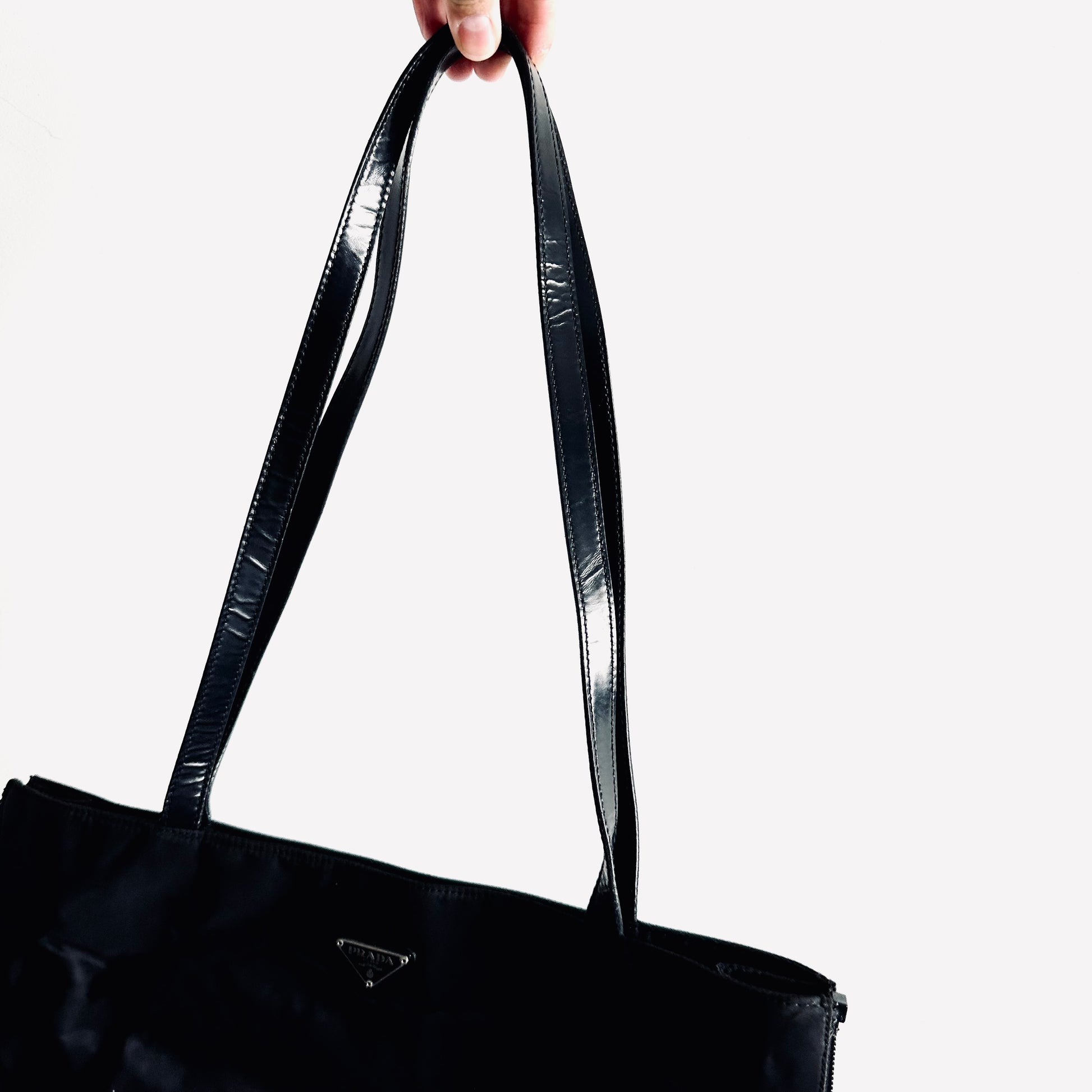 Prada Black Tessuto Classic Logo Nylon Zip Around Shoulder Shopper Tote Bag