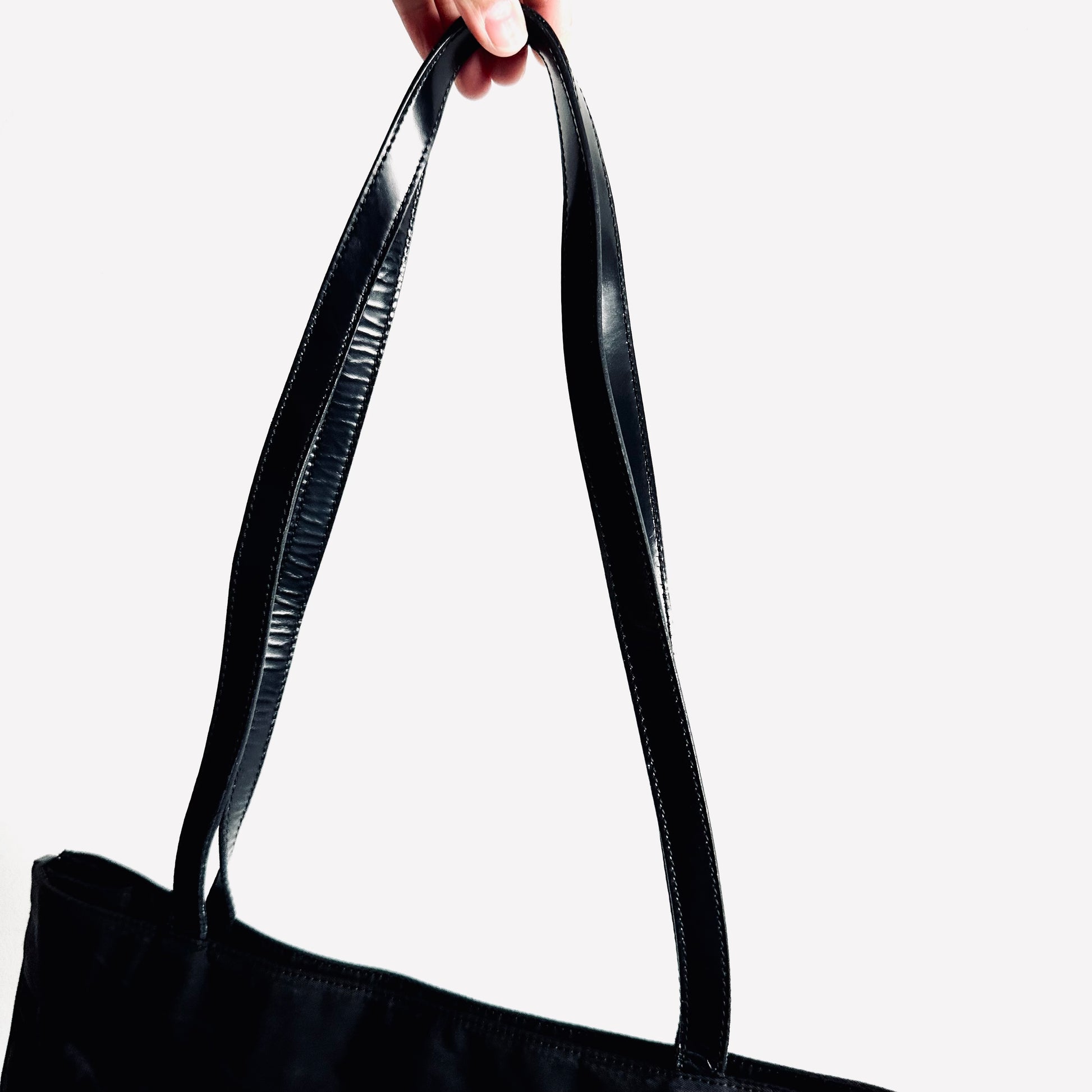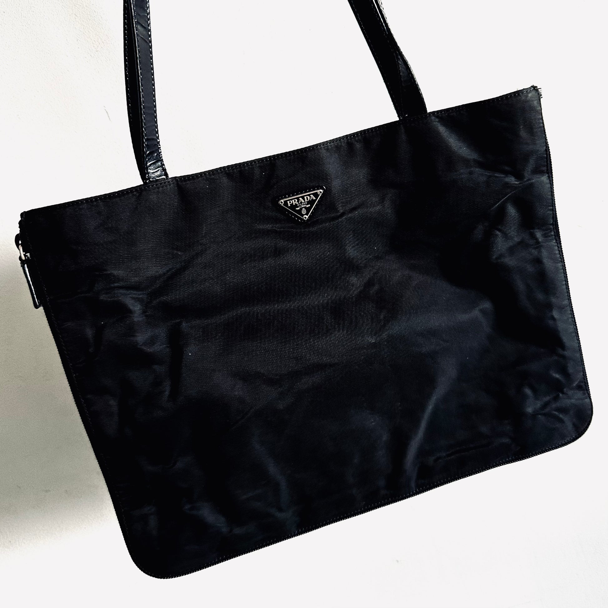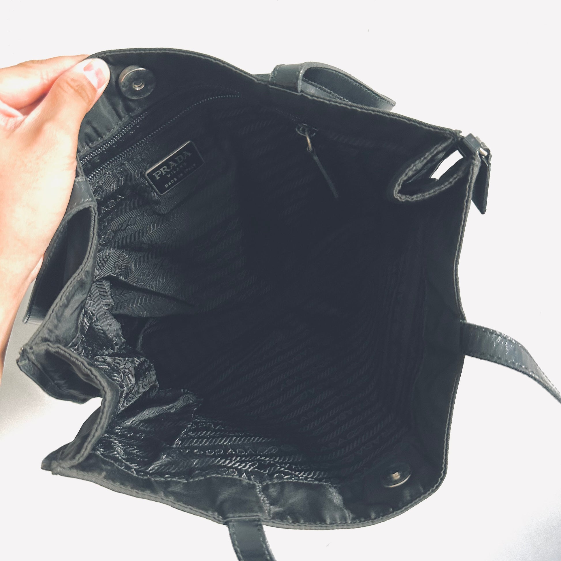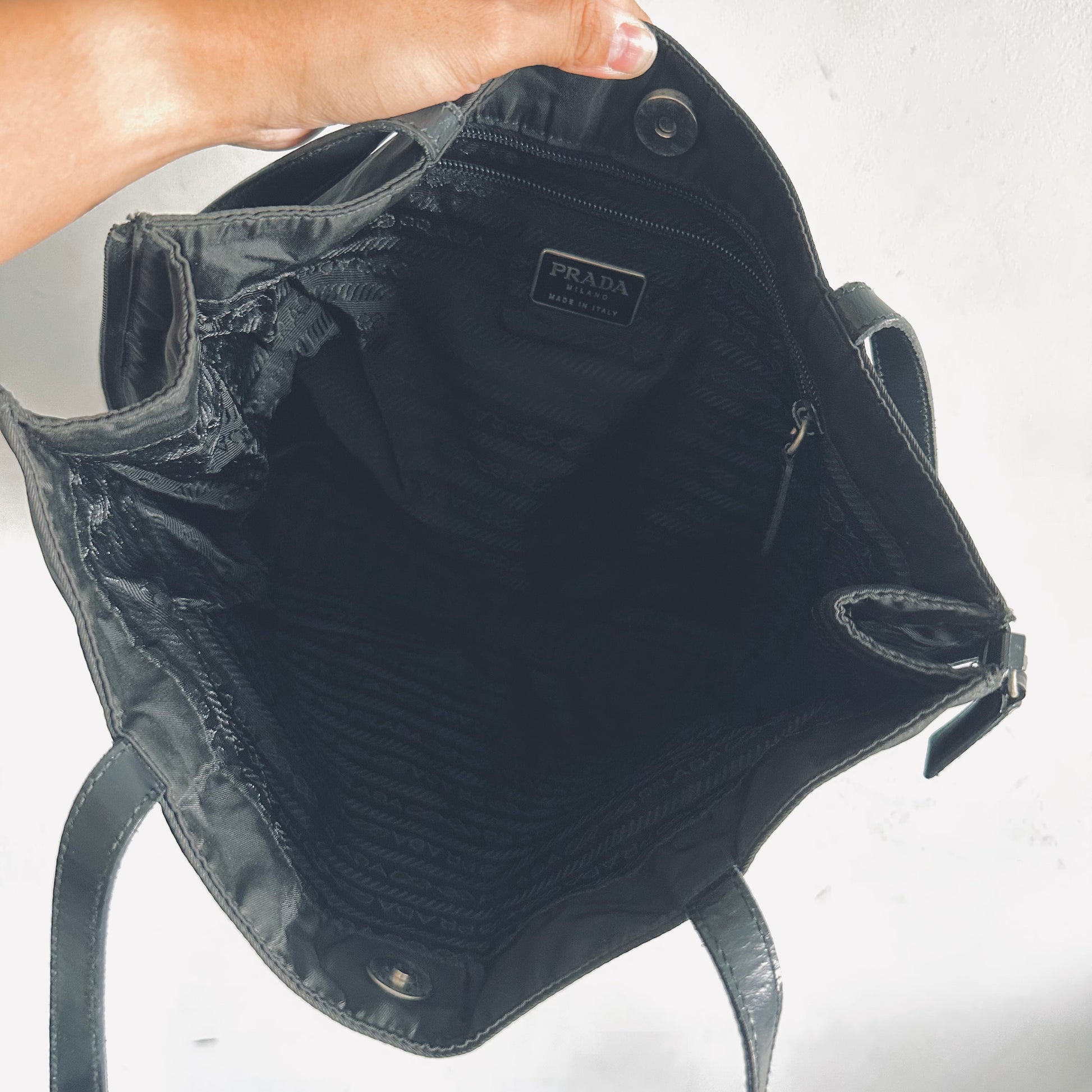 Prada Black Tessuto Classic Logo Nylon Zip Around Shoulder Shopper Tote Bag