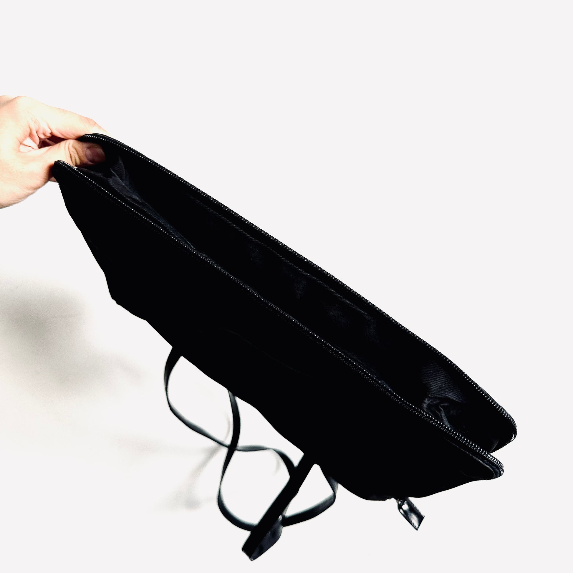 Preloved 9.5/10. This has an optional zip around function to expand the tote, magnetic button closure and interior zip pocket. This measures 34x26x8cm.