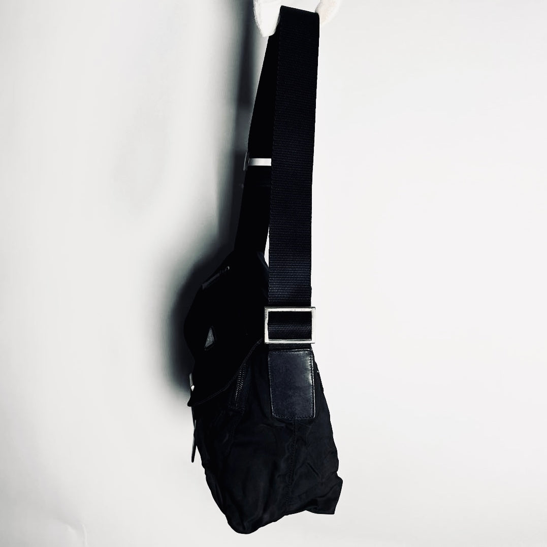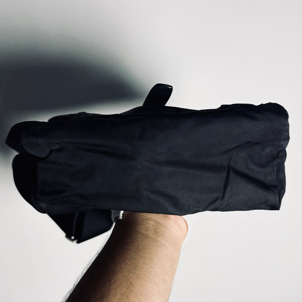 Prada Black Tessuto Logo Classic Nylon & Leather Flap Shoulder Sling Bag