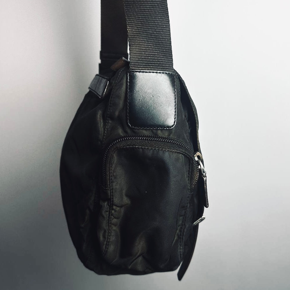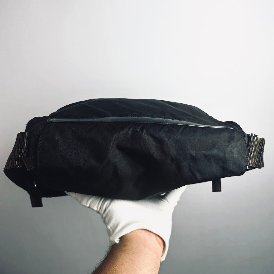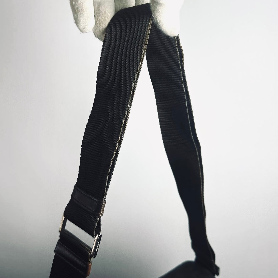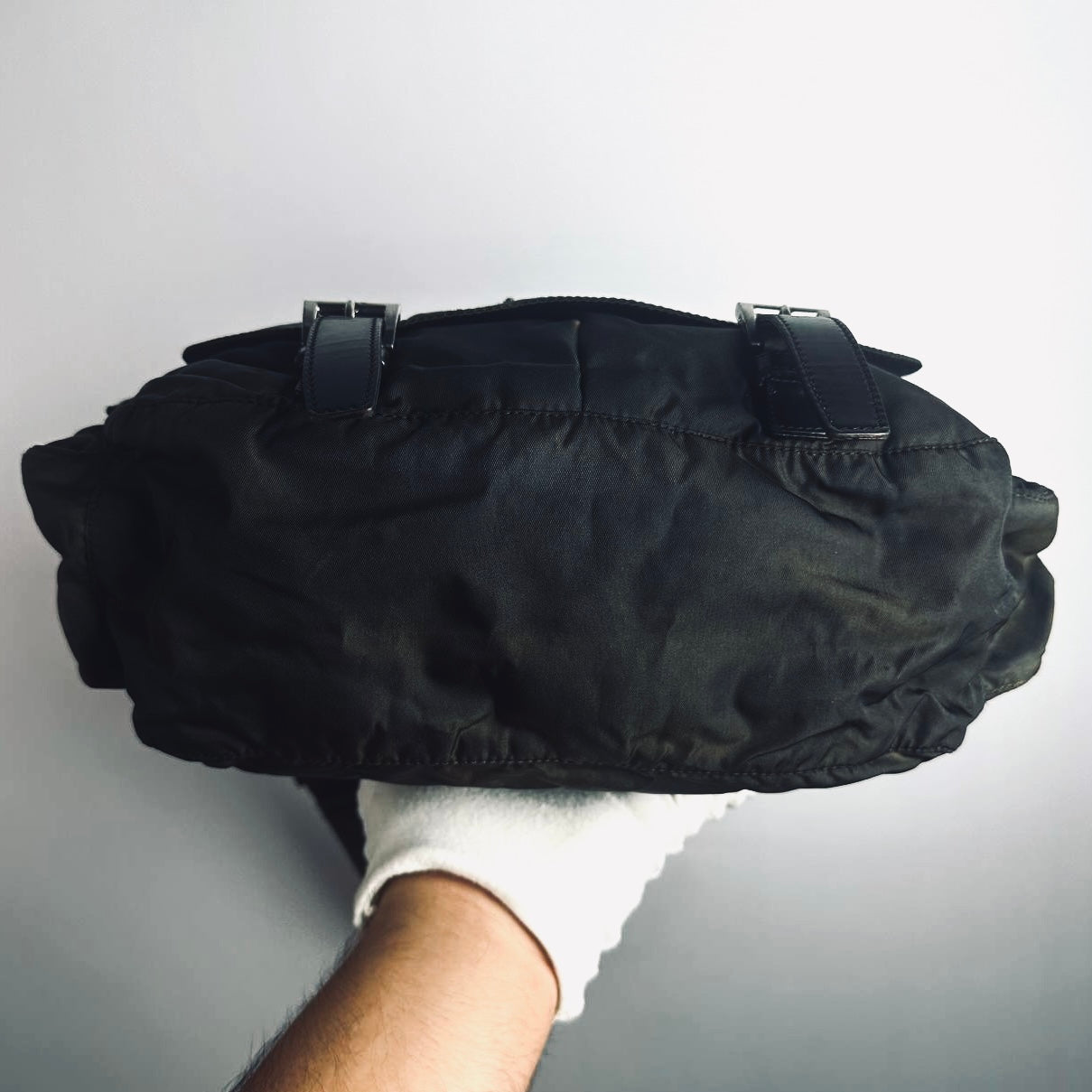 Prada Black Tessuto Monogram Logo Flap Shoulder Sling Bag