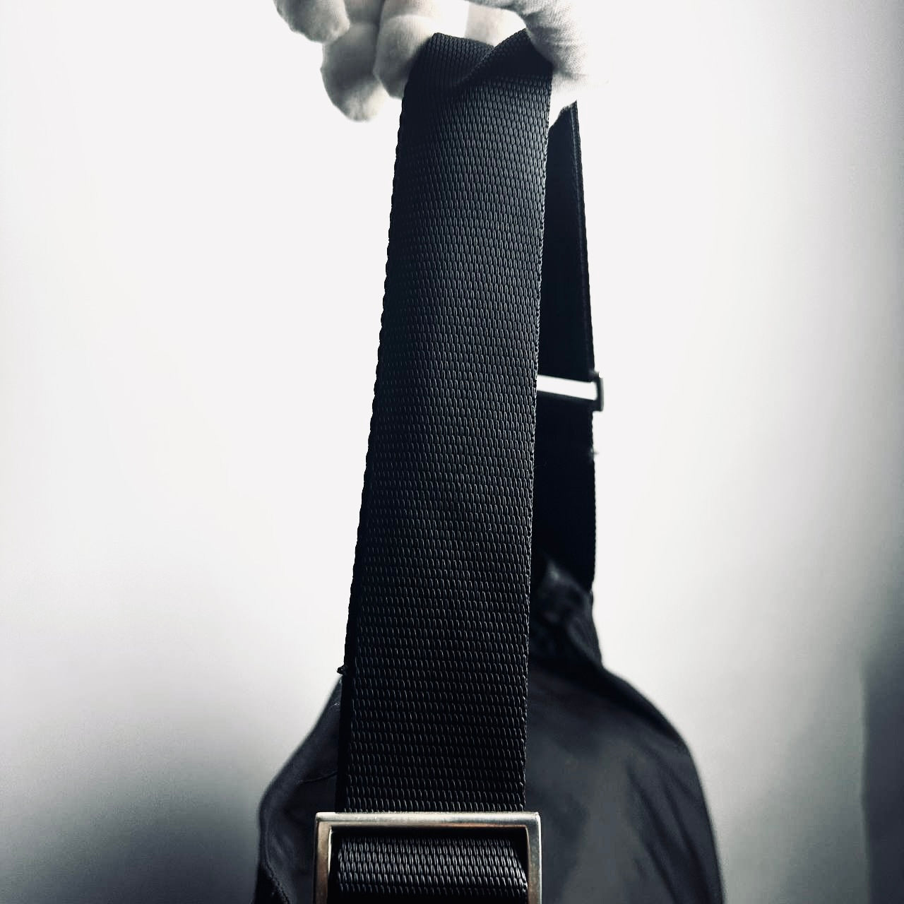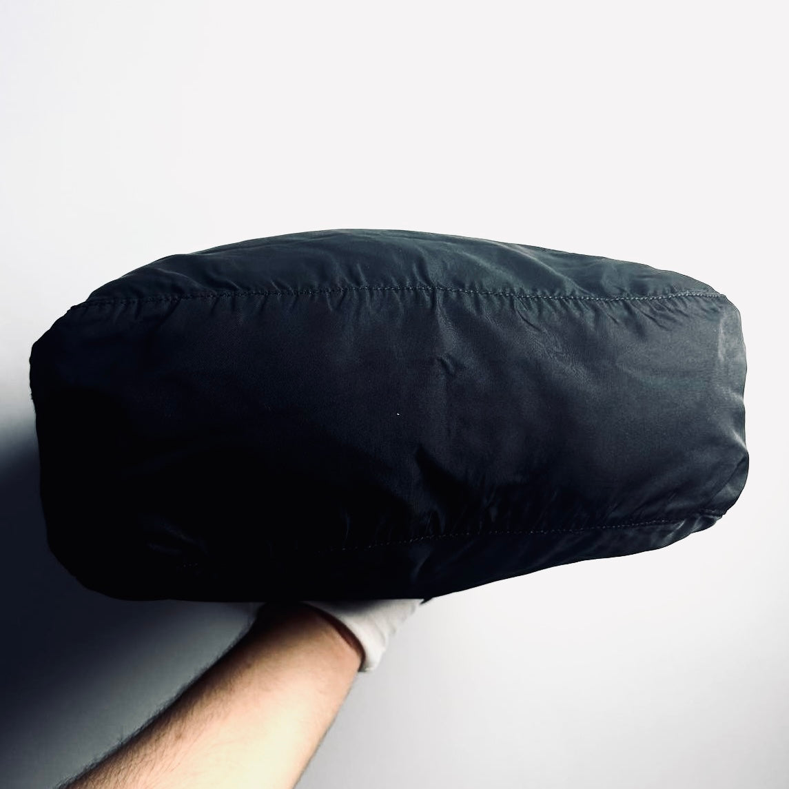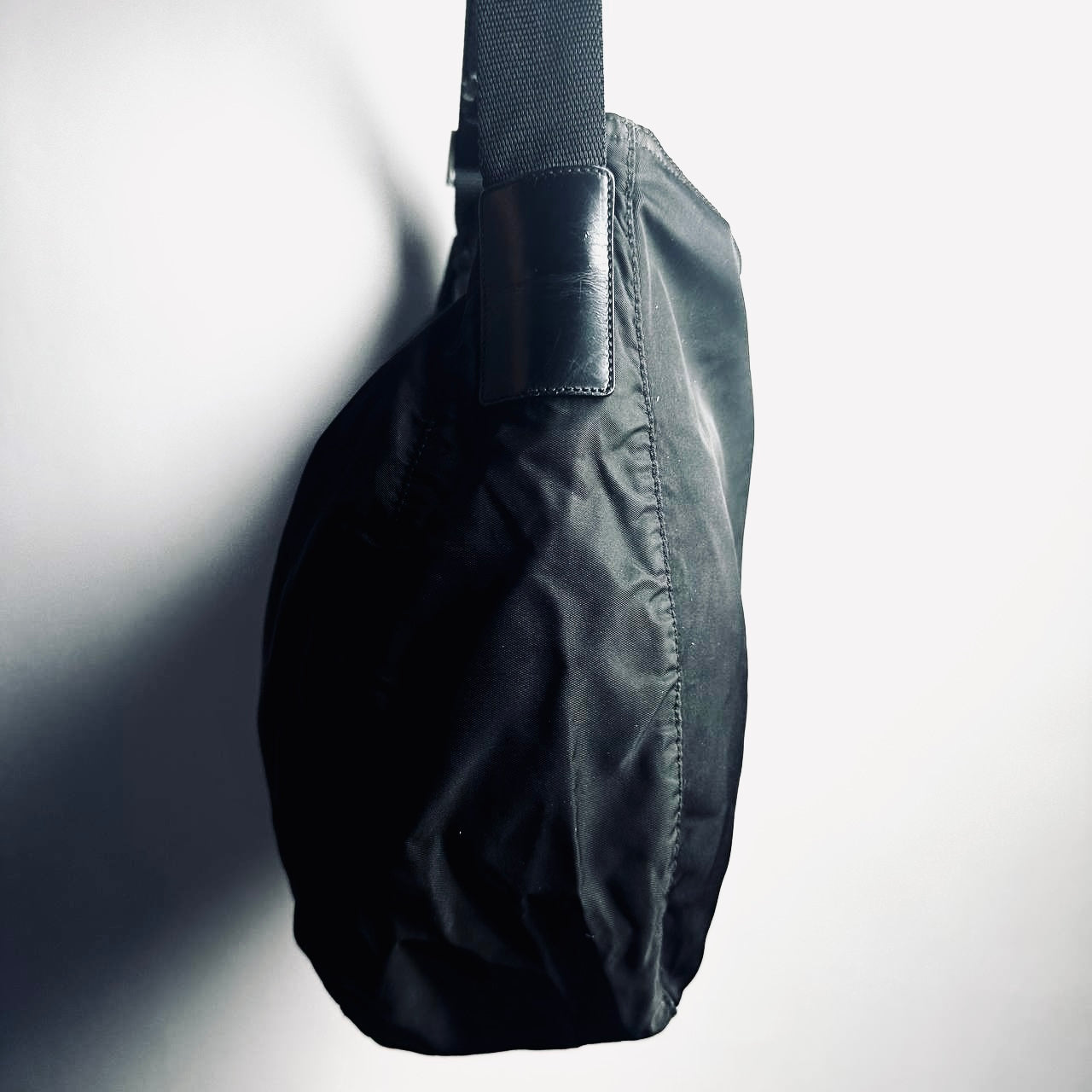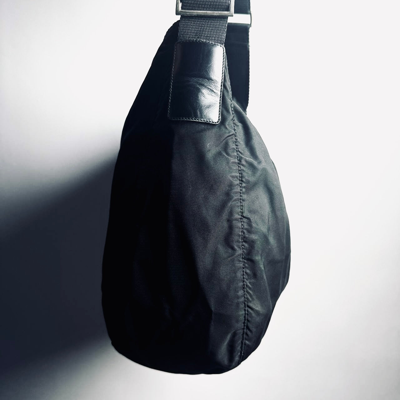 Prada Black Vela Classic Monogram Logo Hobo Baguette Nylon & Leather Shoulder Sling Bag