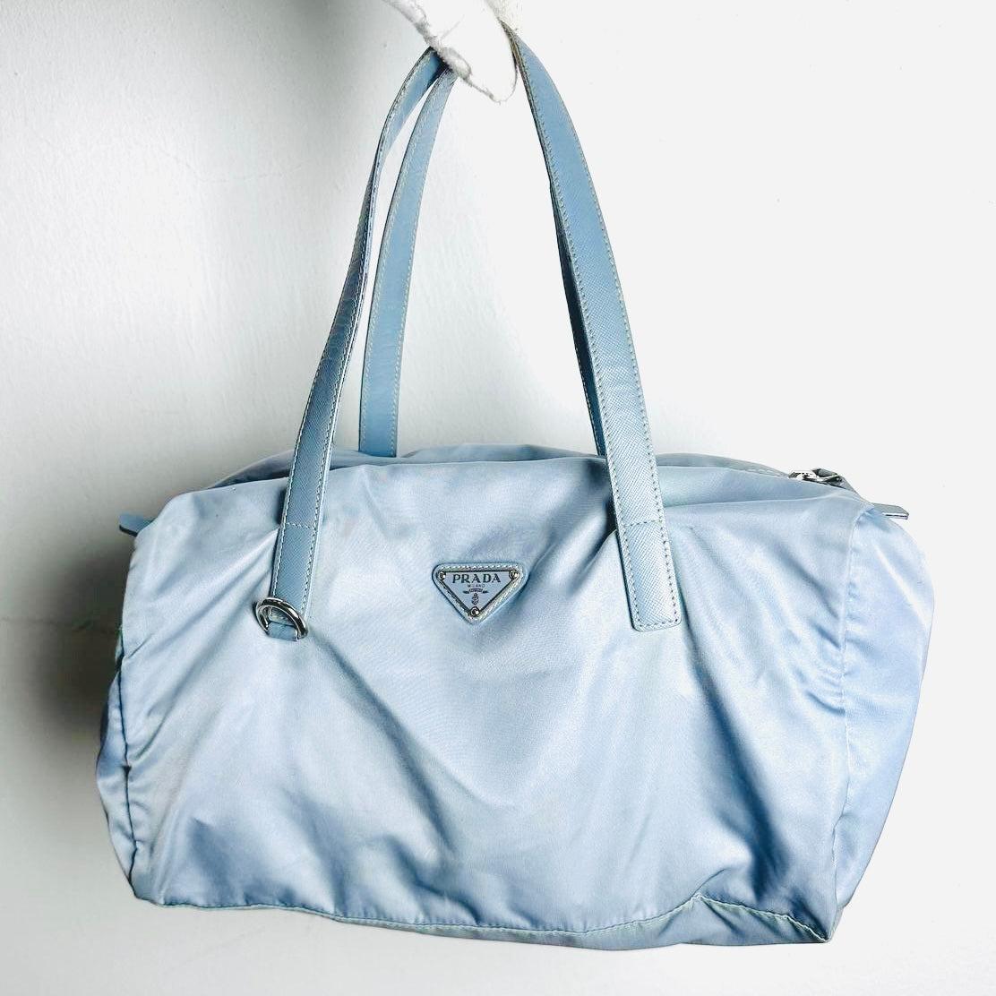 Prada Blue Tessuto / Leather Monogram Logo Nylon Shopper Shoulder Boston Tote Bag