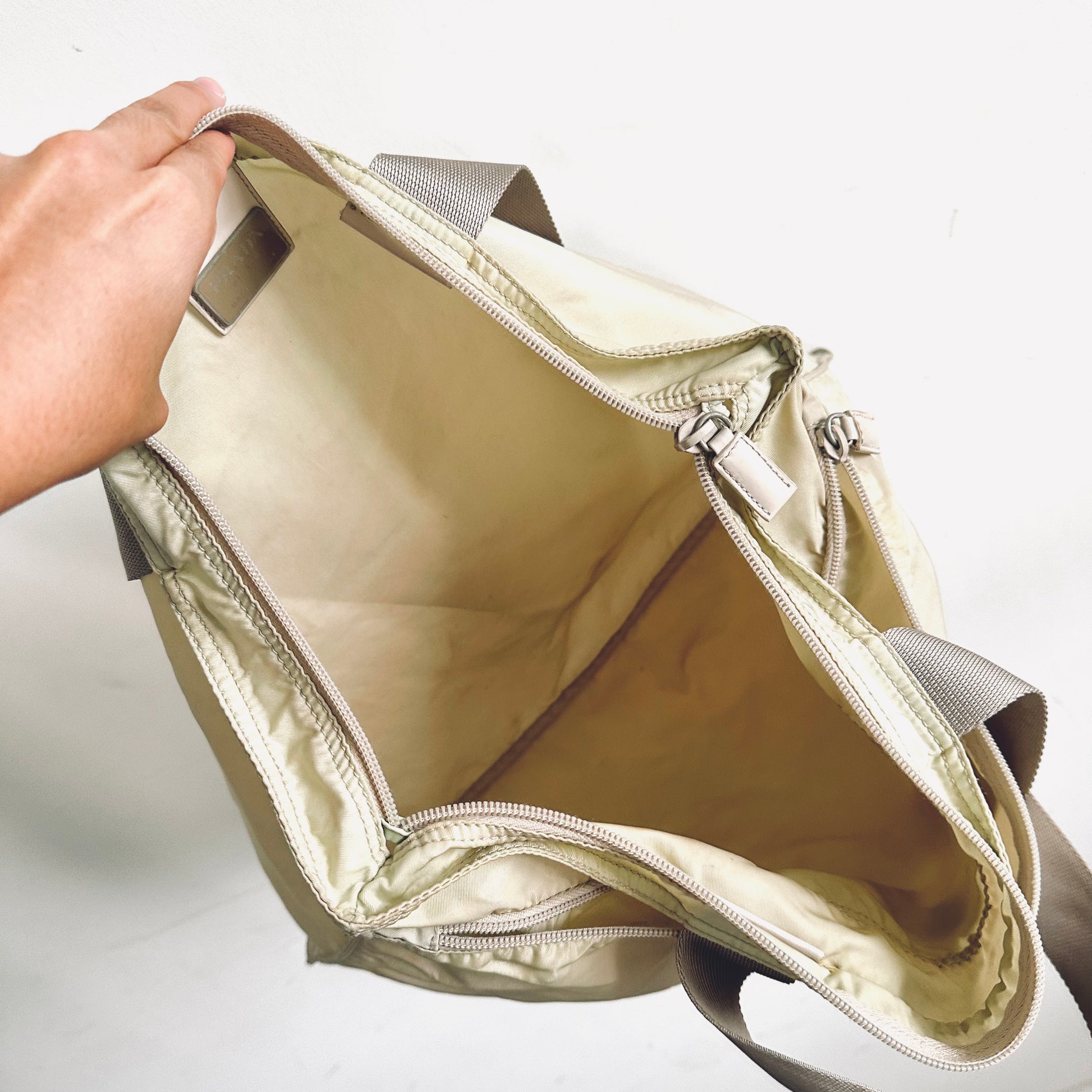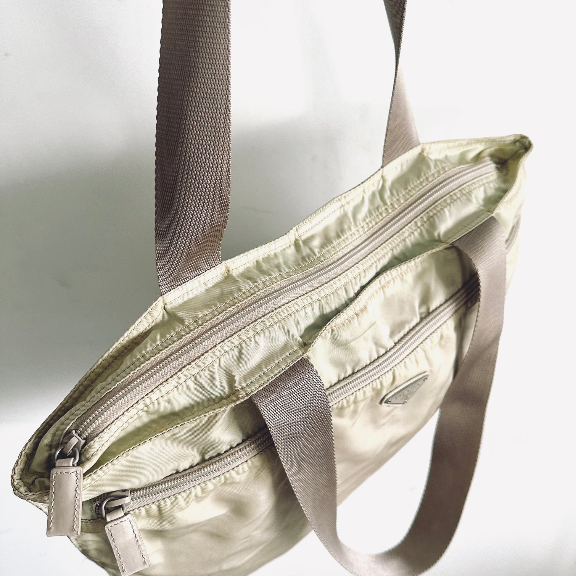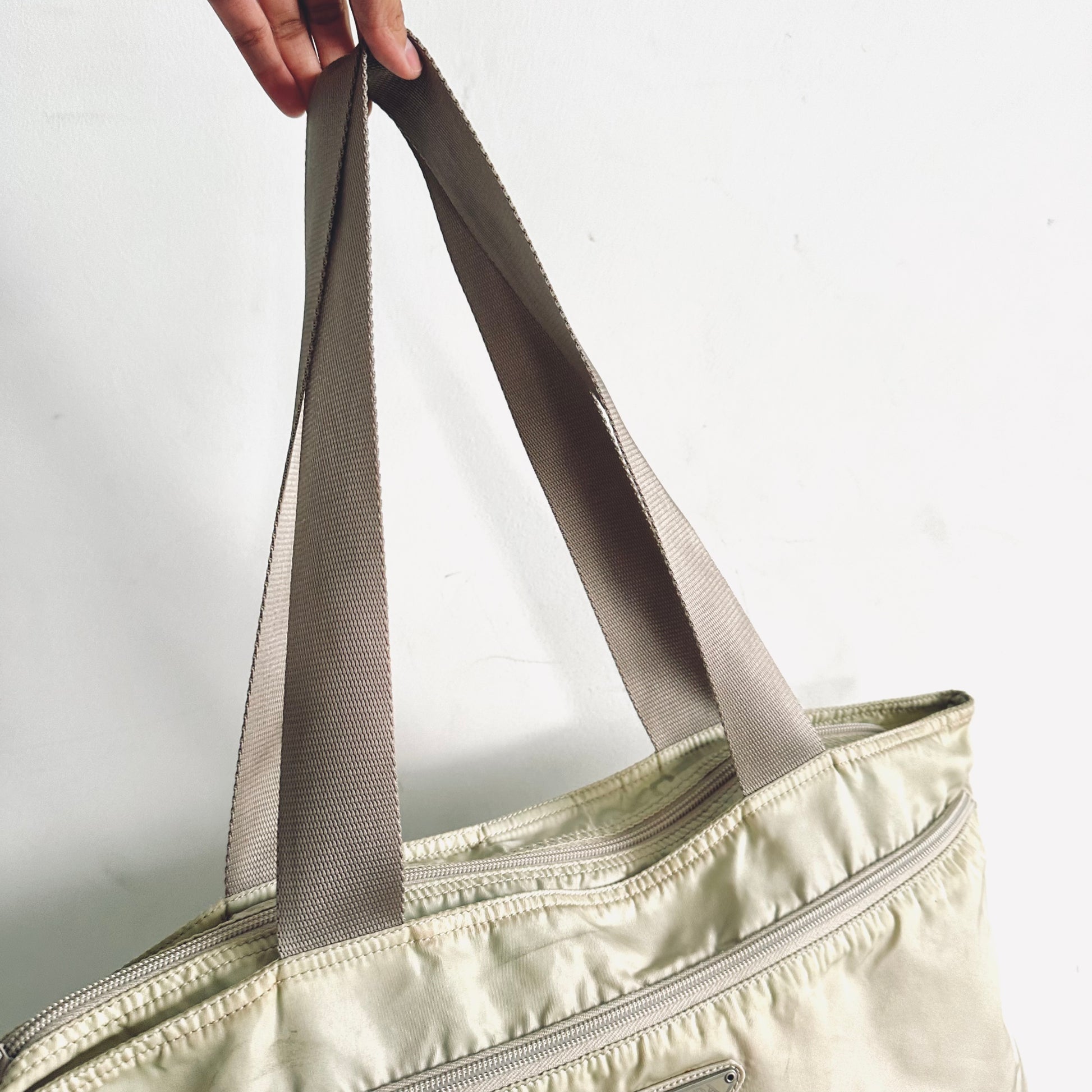 Prada Cream White Vela Classic Logo Wide Shopper Shoulder Tote Bag
